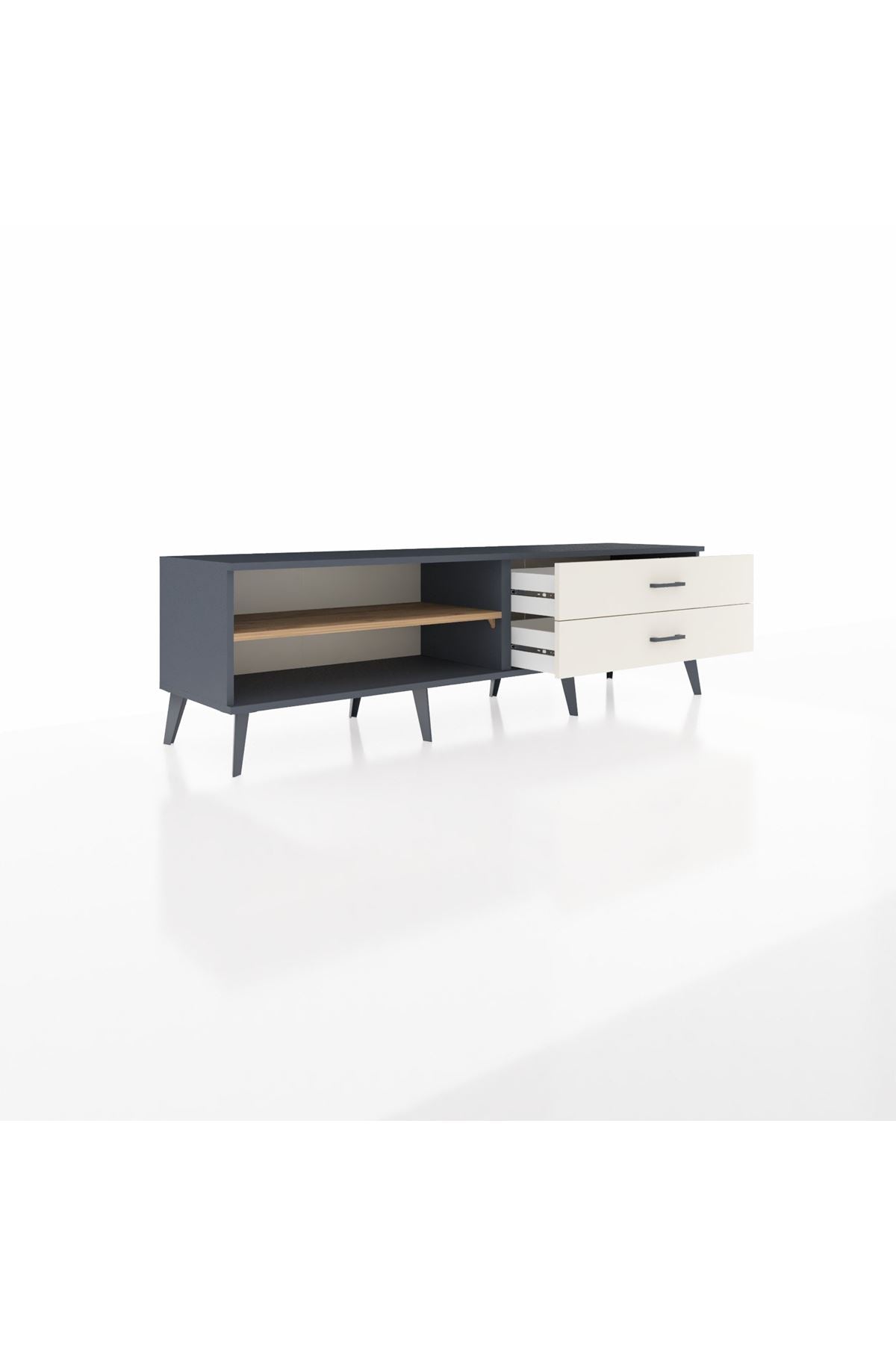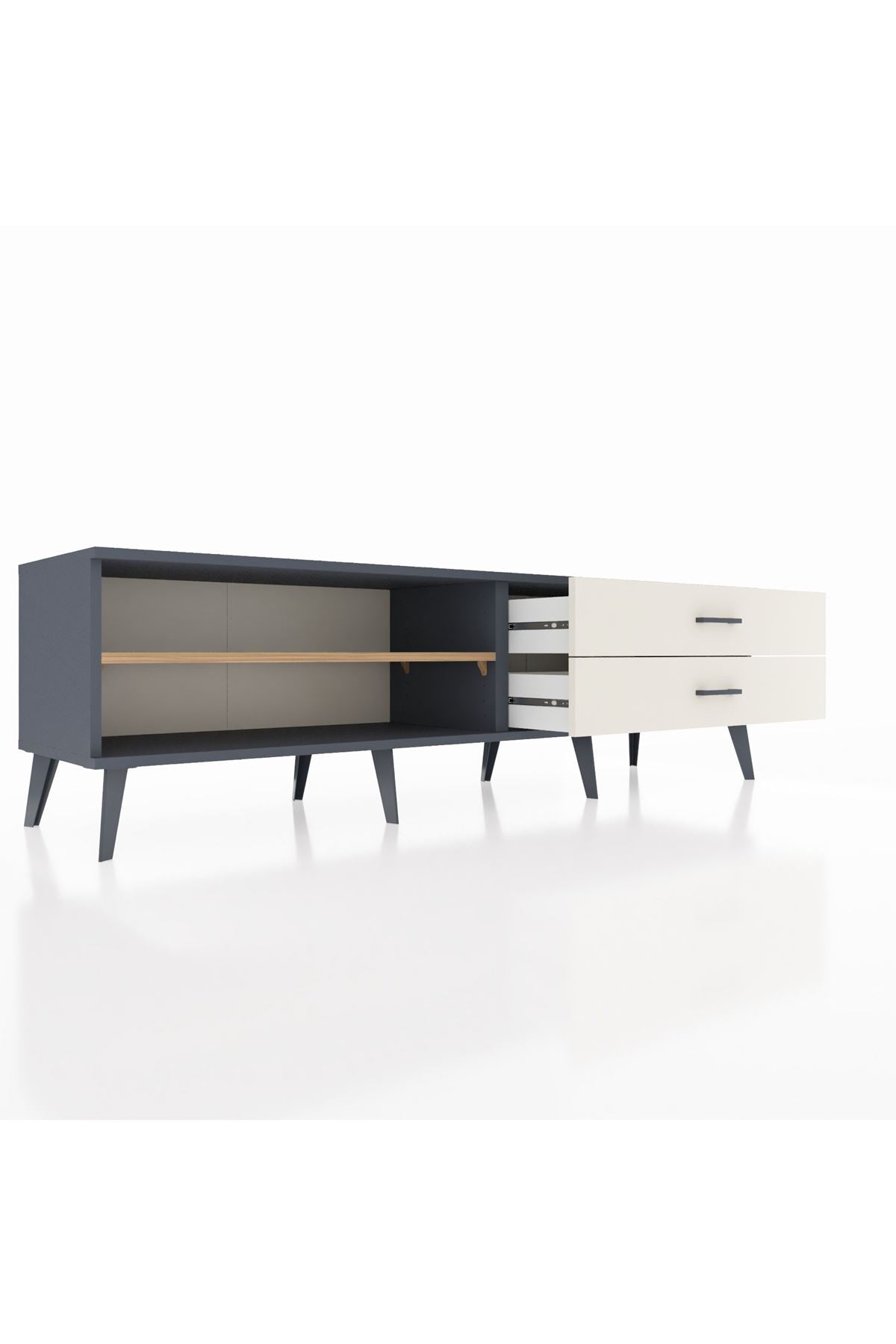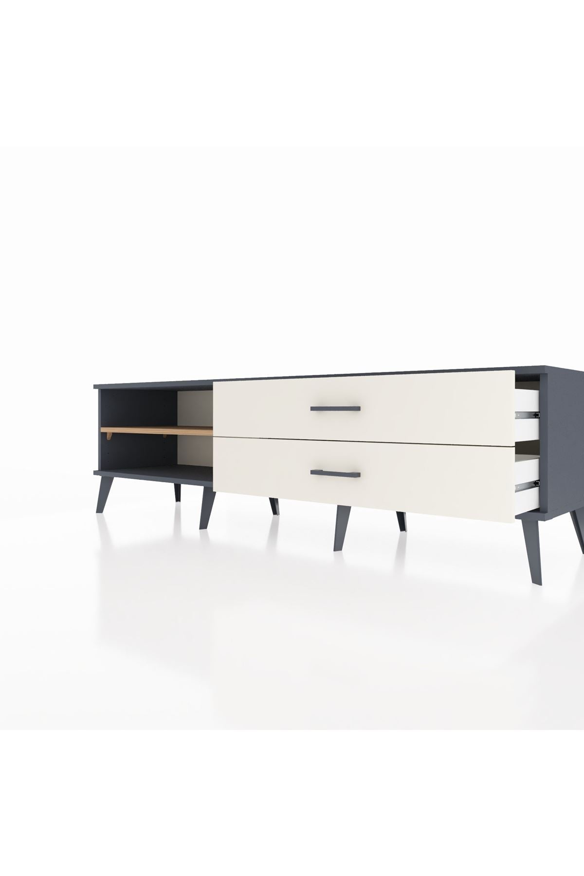 Hyperion TV Ünitesi Tek Raflı 2 Çekmeceli 176x44x51 Antrasit-Çam/Aytaşı