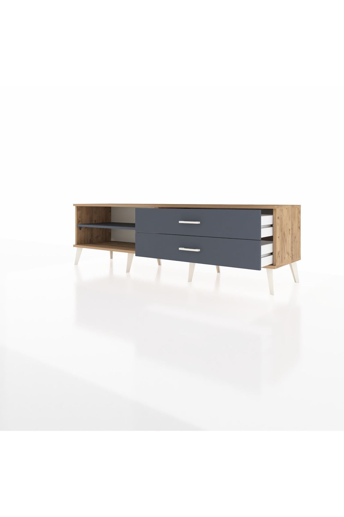 Hyperion TV Ünitesi Tek Raflı 2 Çekmeceli 176x44x51 Çam-Antrasit/Antrasit