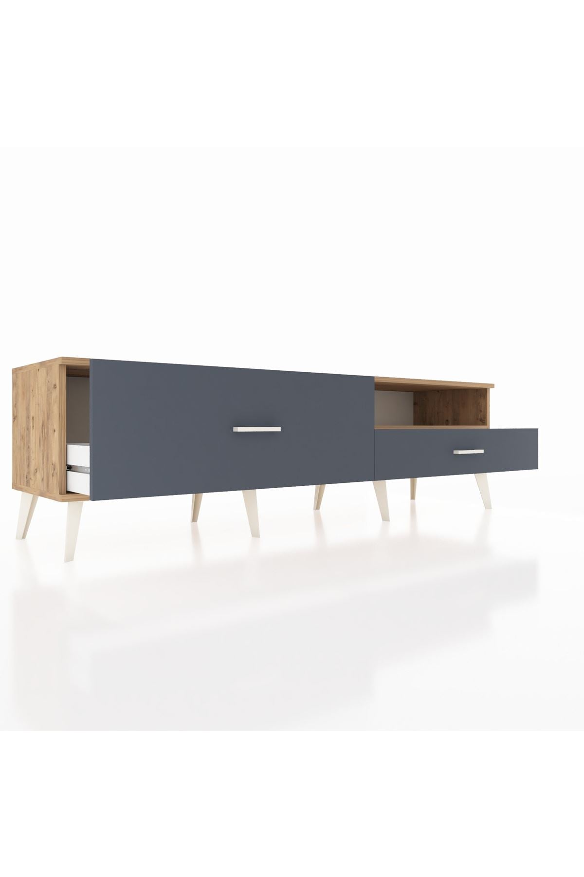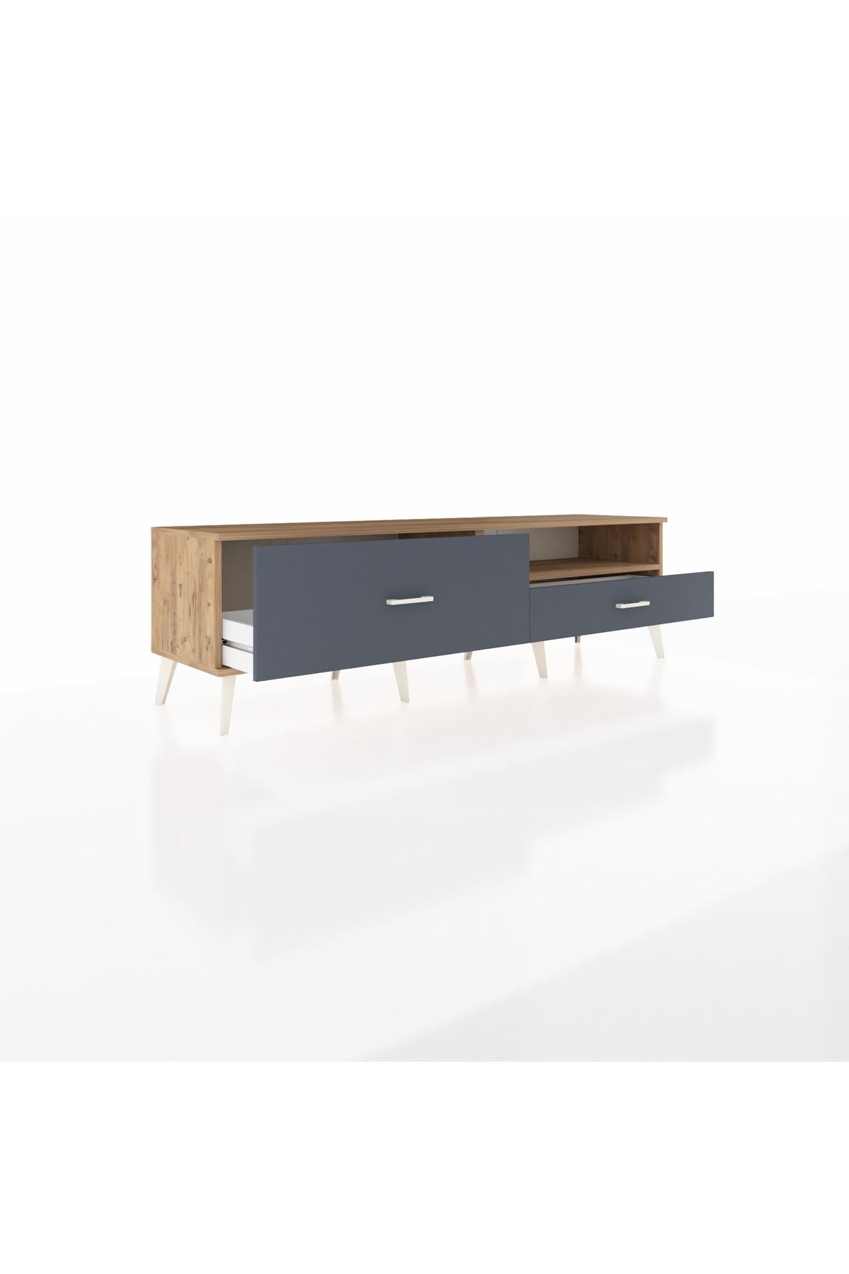 Hyperion TV Ünitesi Tek Raflı 2 Çekmeceli 176x44x51 Çam-Çam/Antrasit