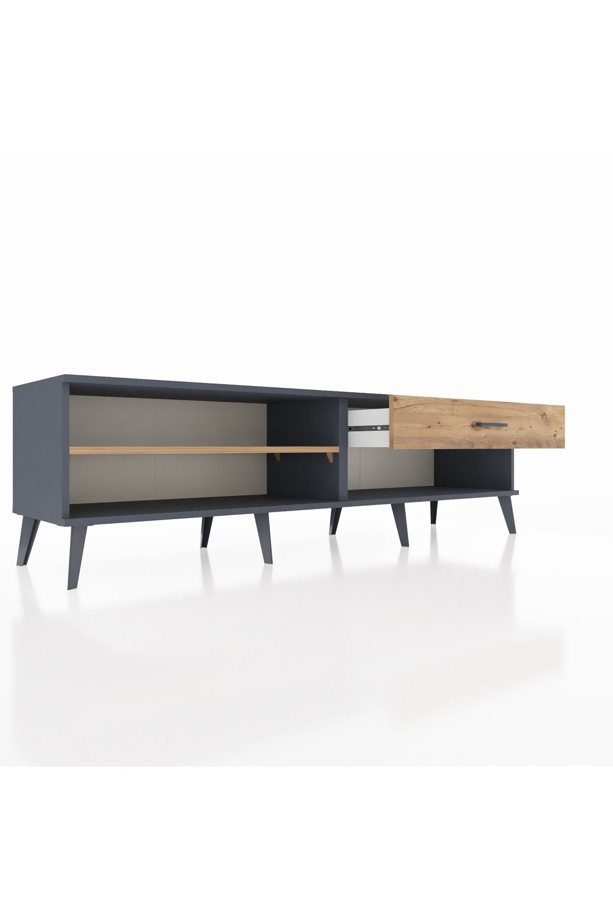 Hyperion TV Ünitesi Tek Raflı Tek Çekmeceli 176x44x51 Antrasit-Çam/Çam