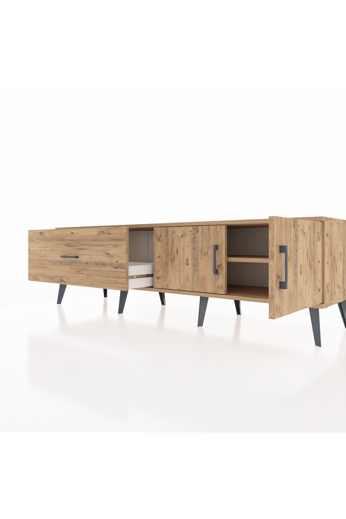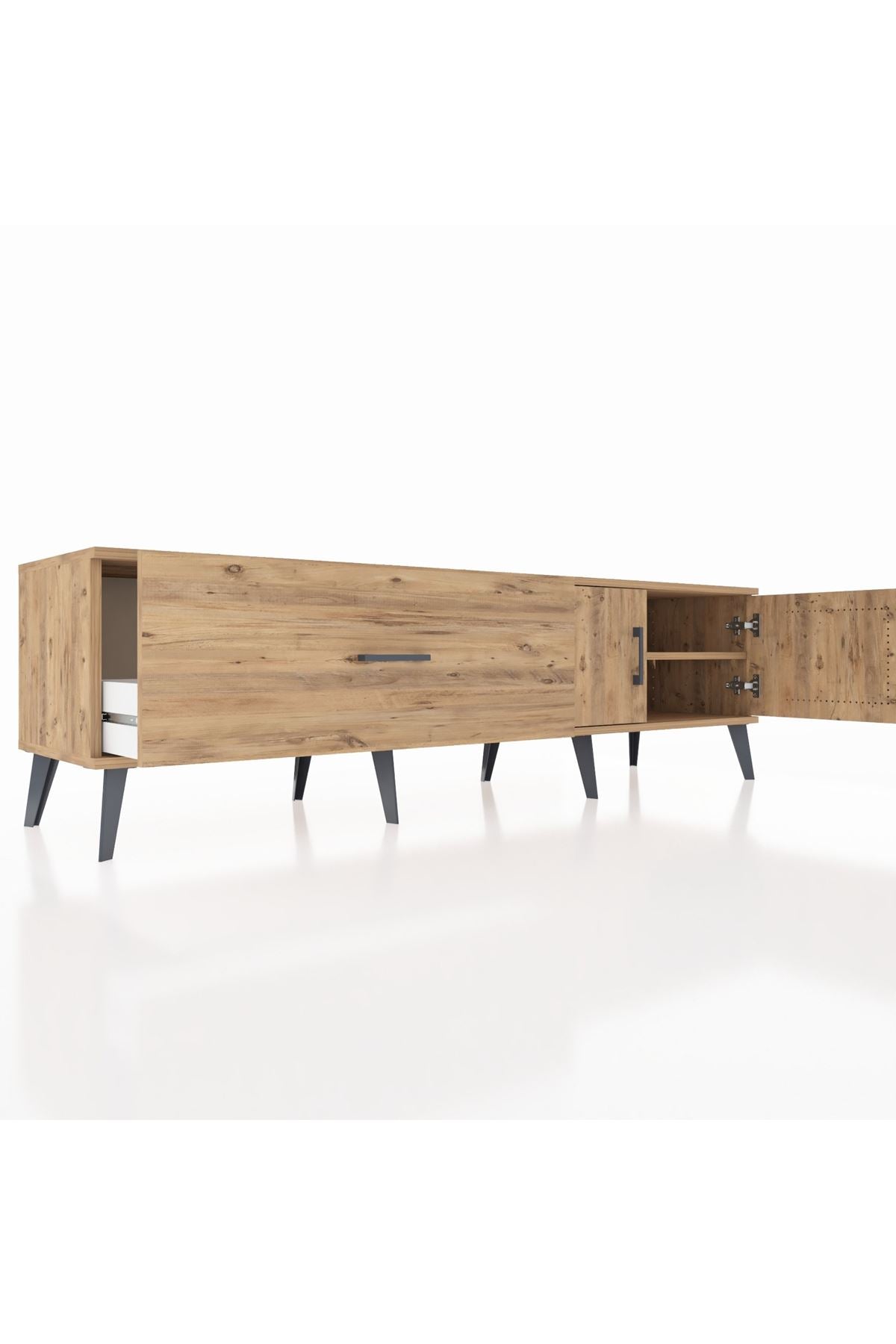 Hyperion TV Ünitesi Tek Raflı Tek Çekmeceli 2 Kapaklı 176x44x51 Çam-Çam/Çam
