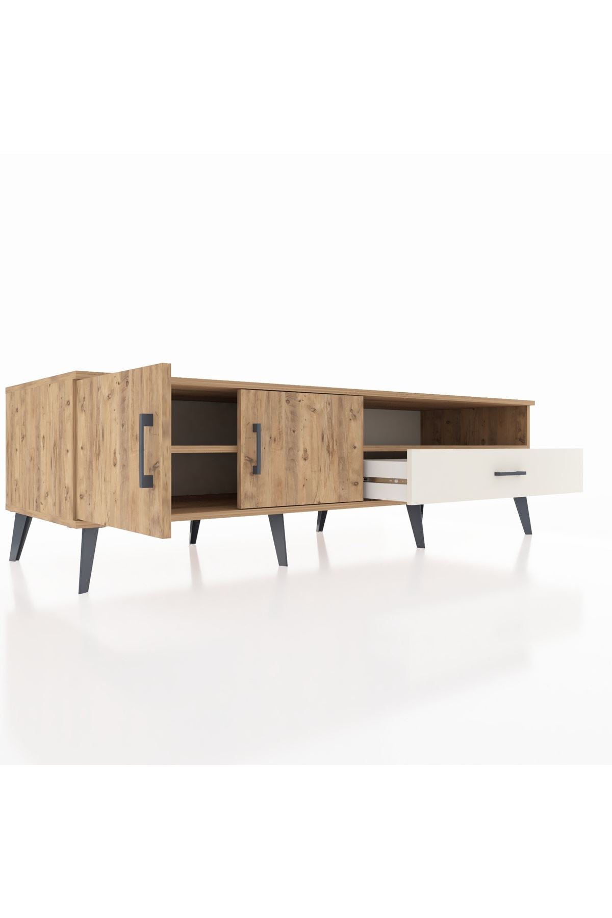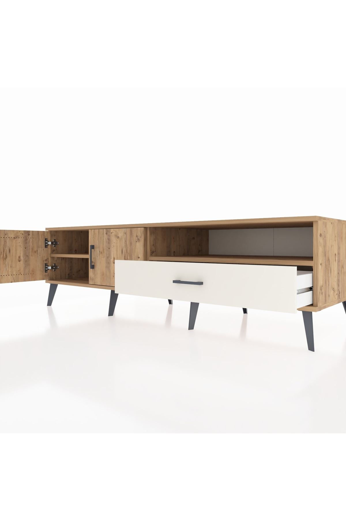 Kronos TV Ünitesi 2 Raflı Tek Çekmeceli 2 Kapaklı 176x59x51 Çam-Çam/Aytaşı