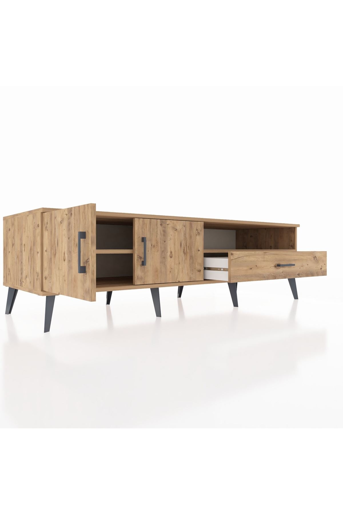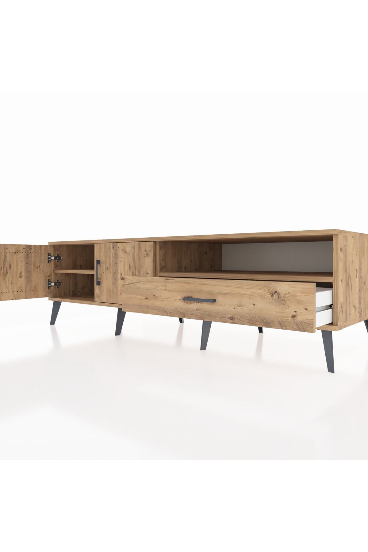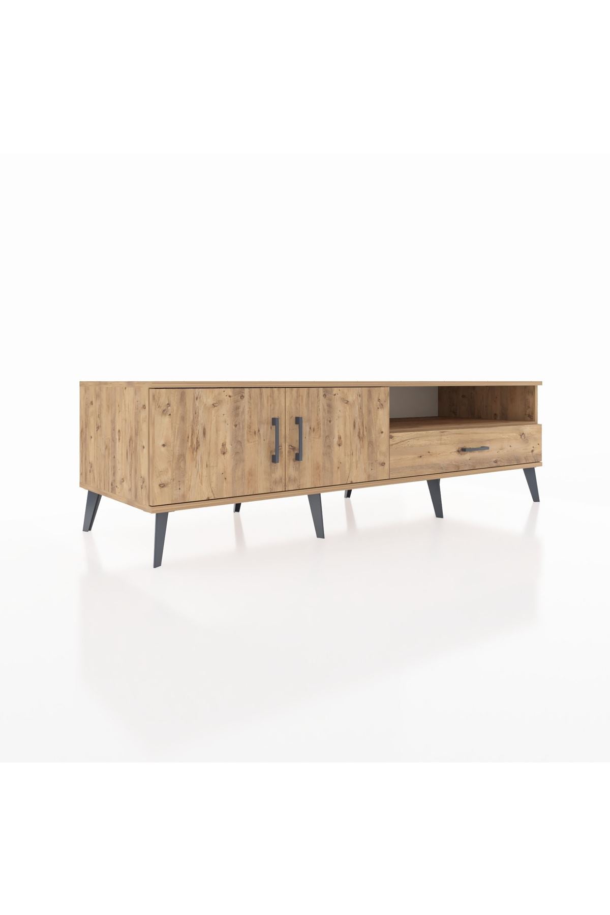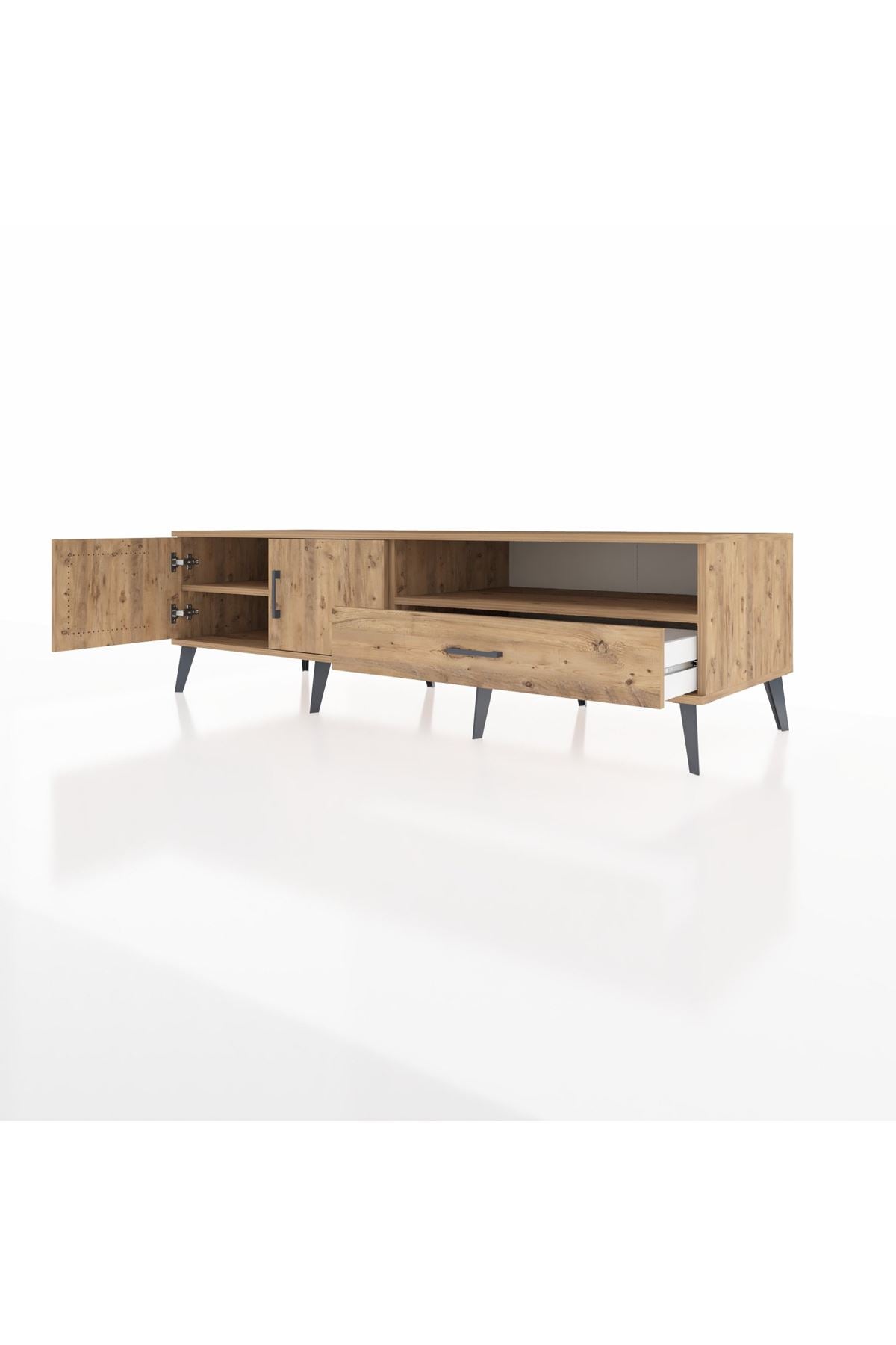 Kronos TV Ünitesi 2 Raflı Tek Çekmeceli 2 Kapaklı 176x59x51 Çam-Çam/Çam