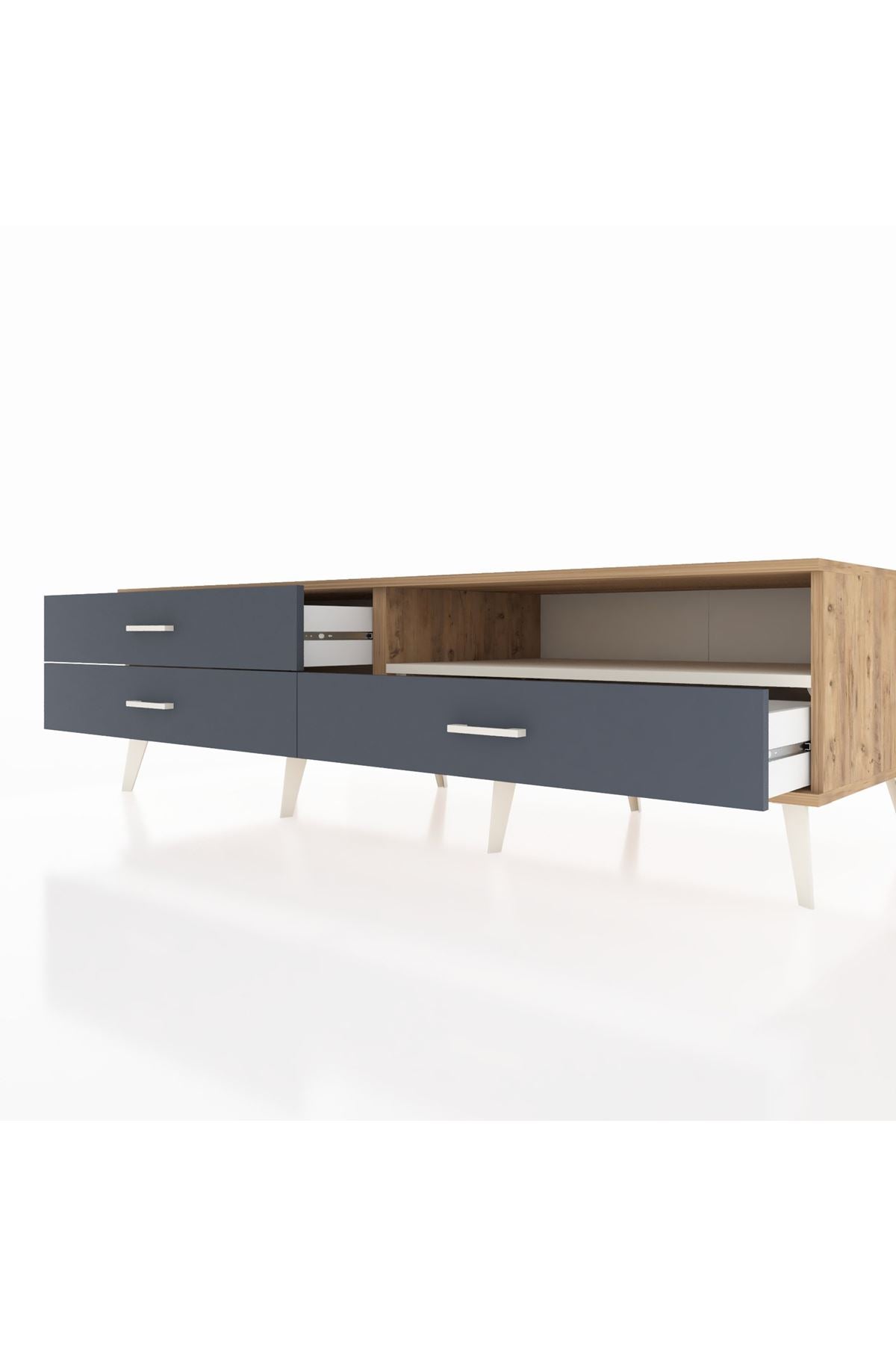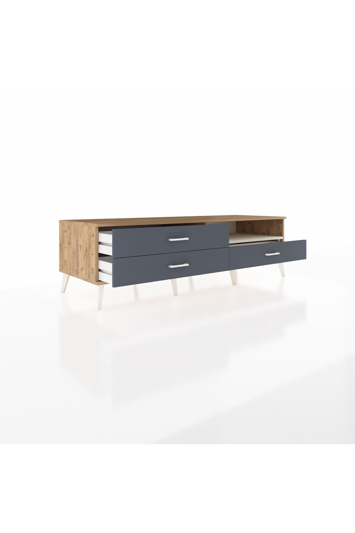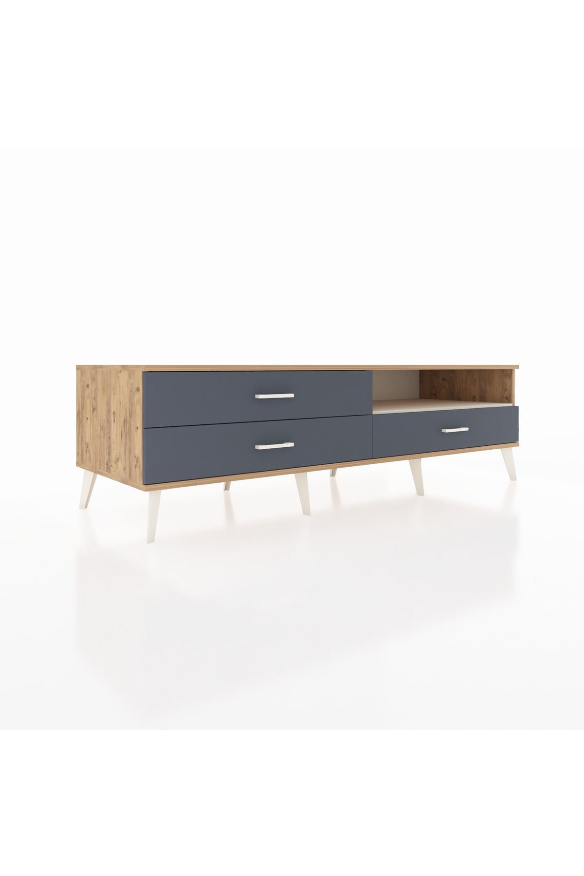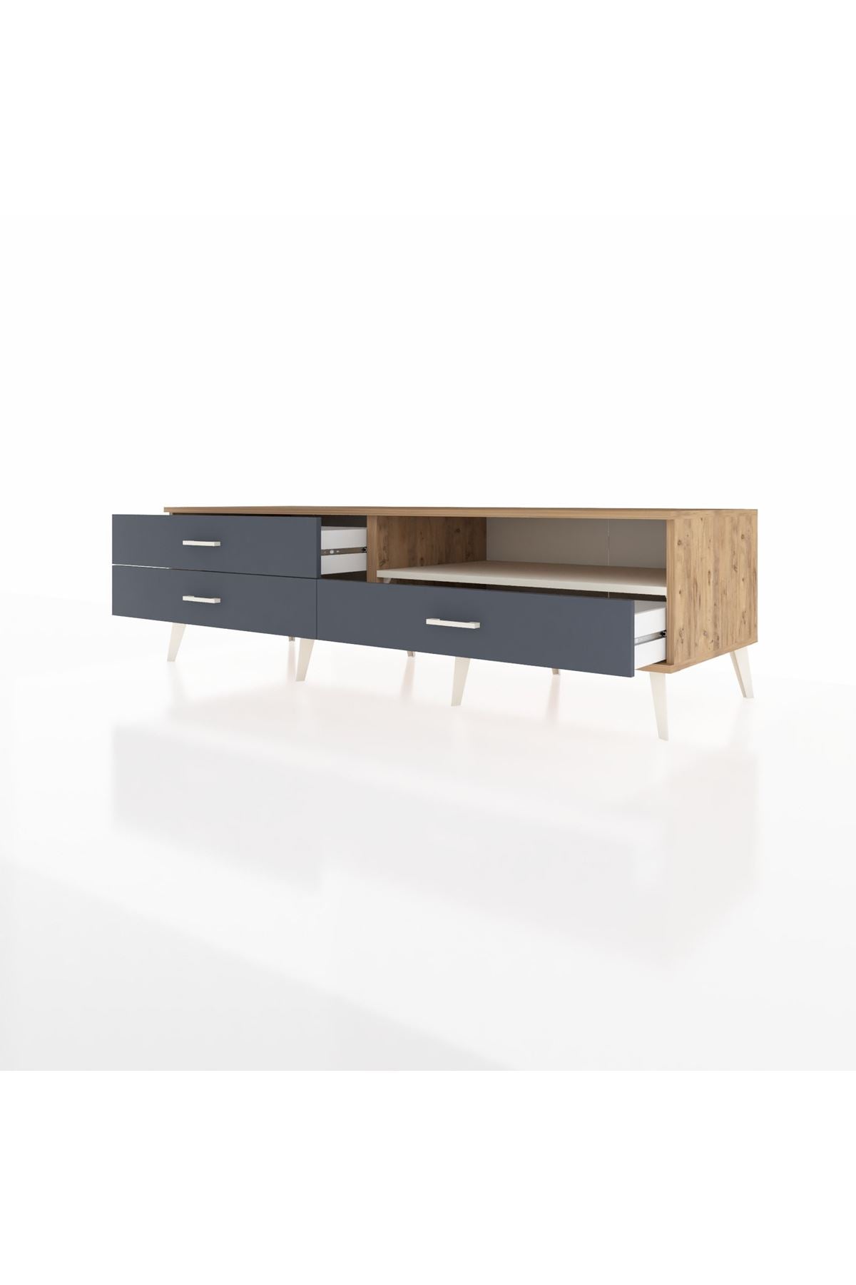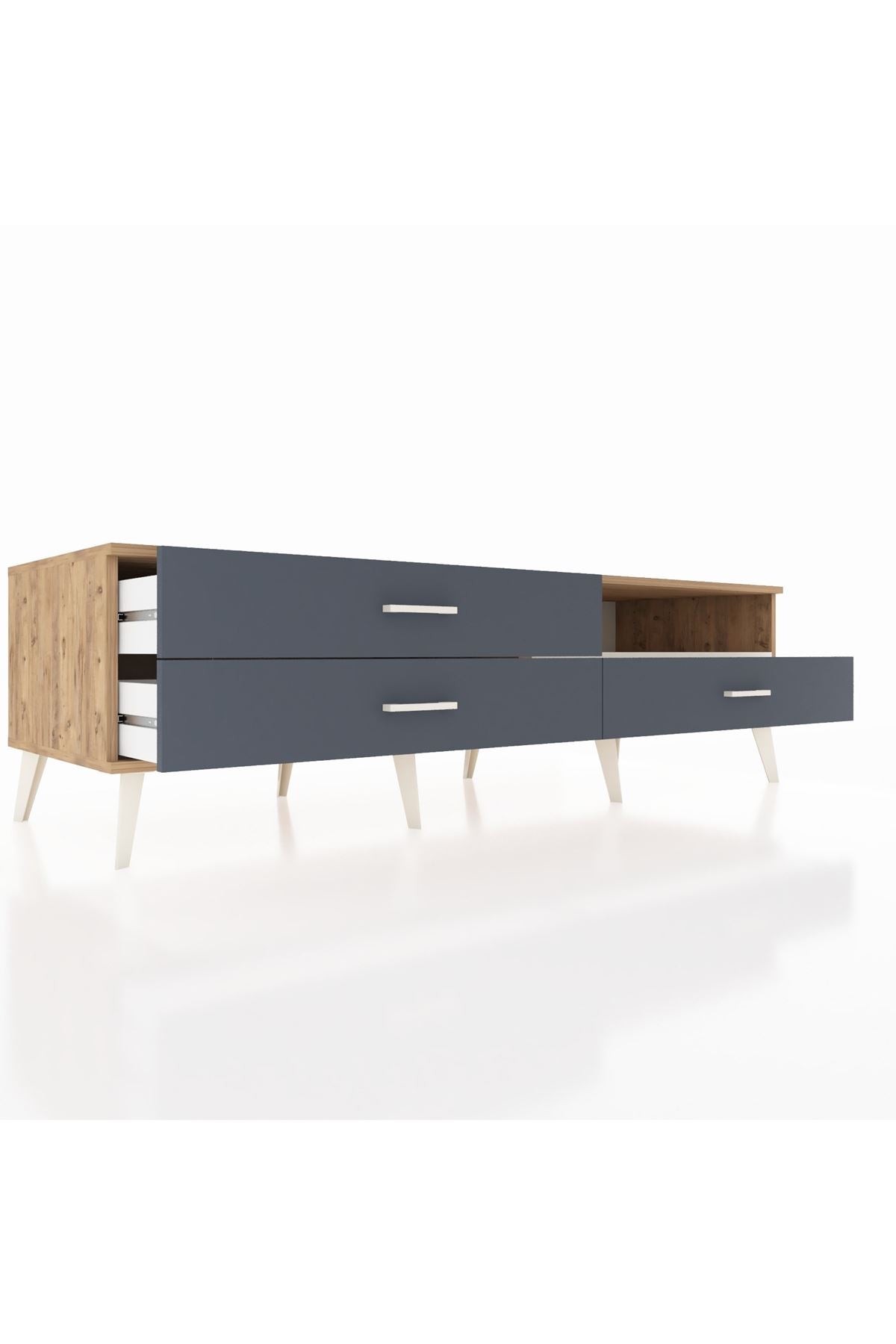Kronos TV Ünitesi Tek Raflı 3 Çekmeceli 176x59x51 Çam-Aytaşı/Antrasit