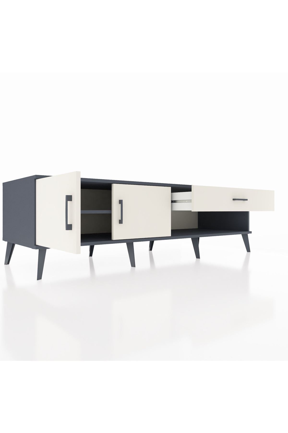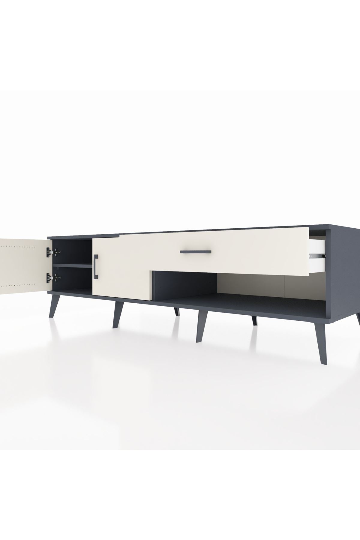 Kronos TV Ünitesi Tek Raflı Tek Çekmeceli 2 Kapaklı 176x59x51 Antrasit-Aytaşı/Aytaşı