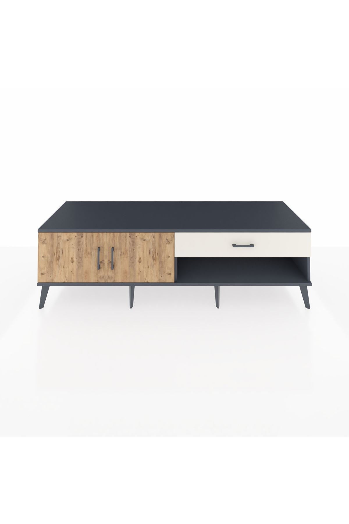 Kronos TV Ünitesi Tek Raflı Tek Çekmeceli 2 Kapaklı Antrasit-Çam/Aytaşı