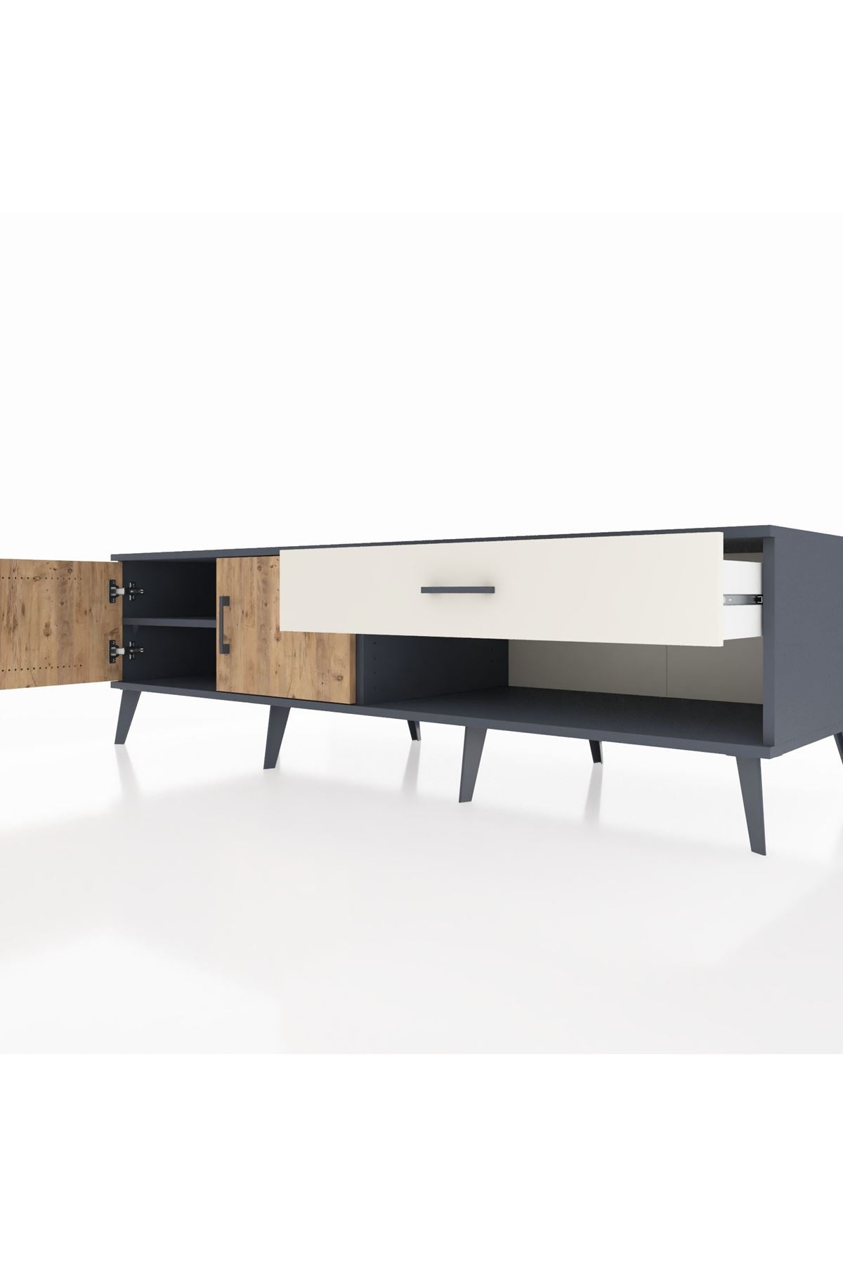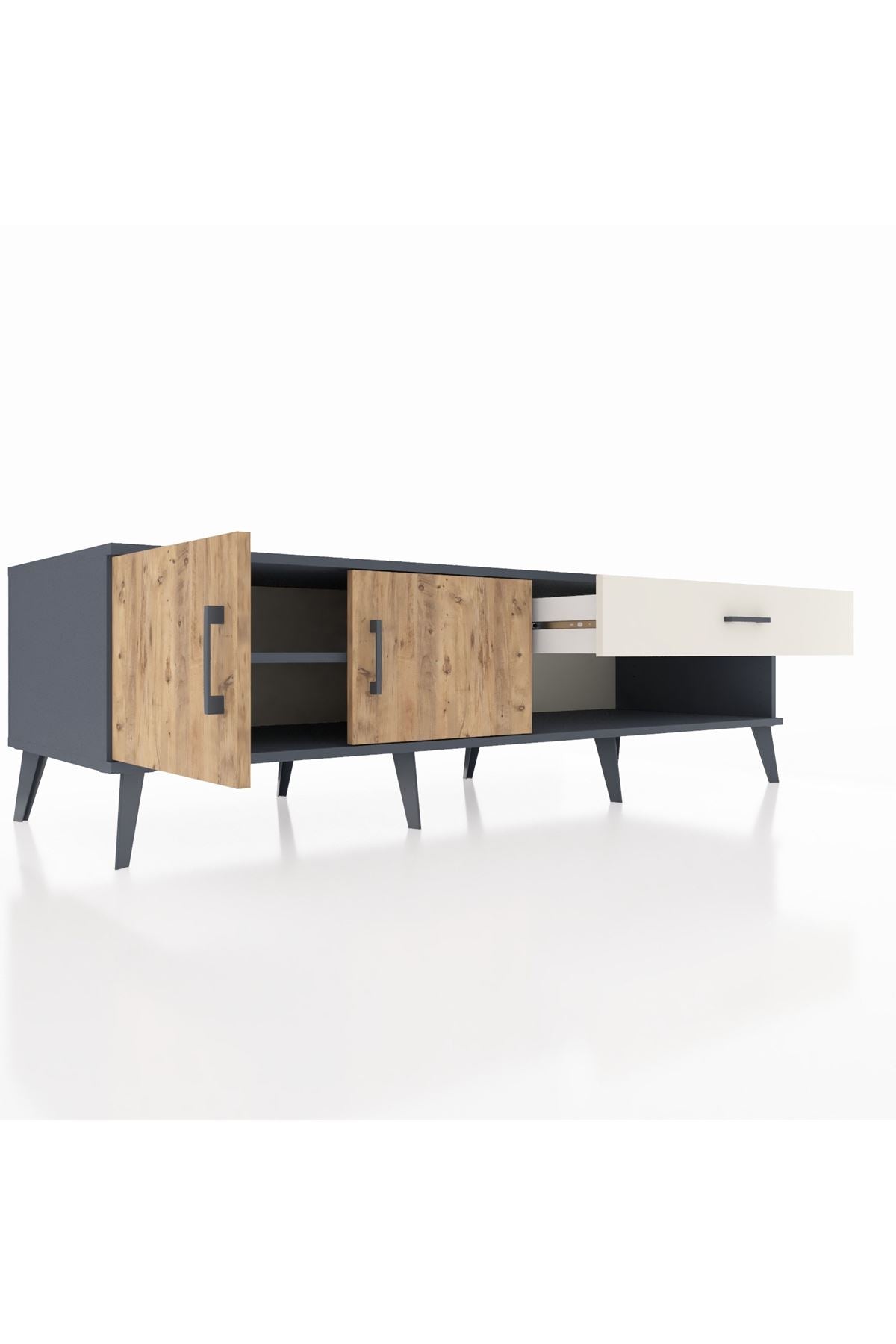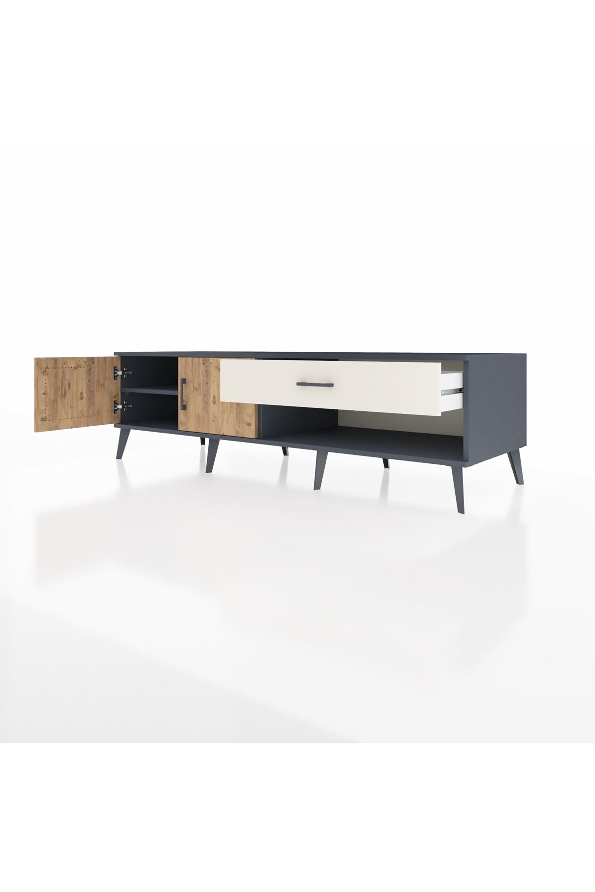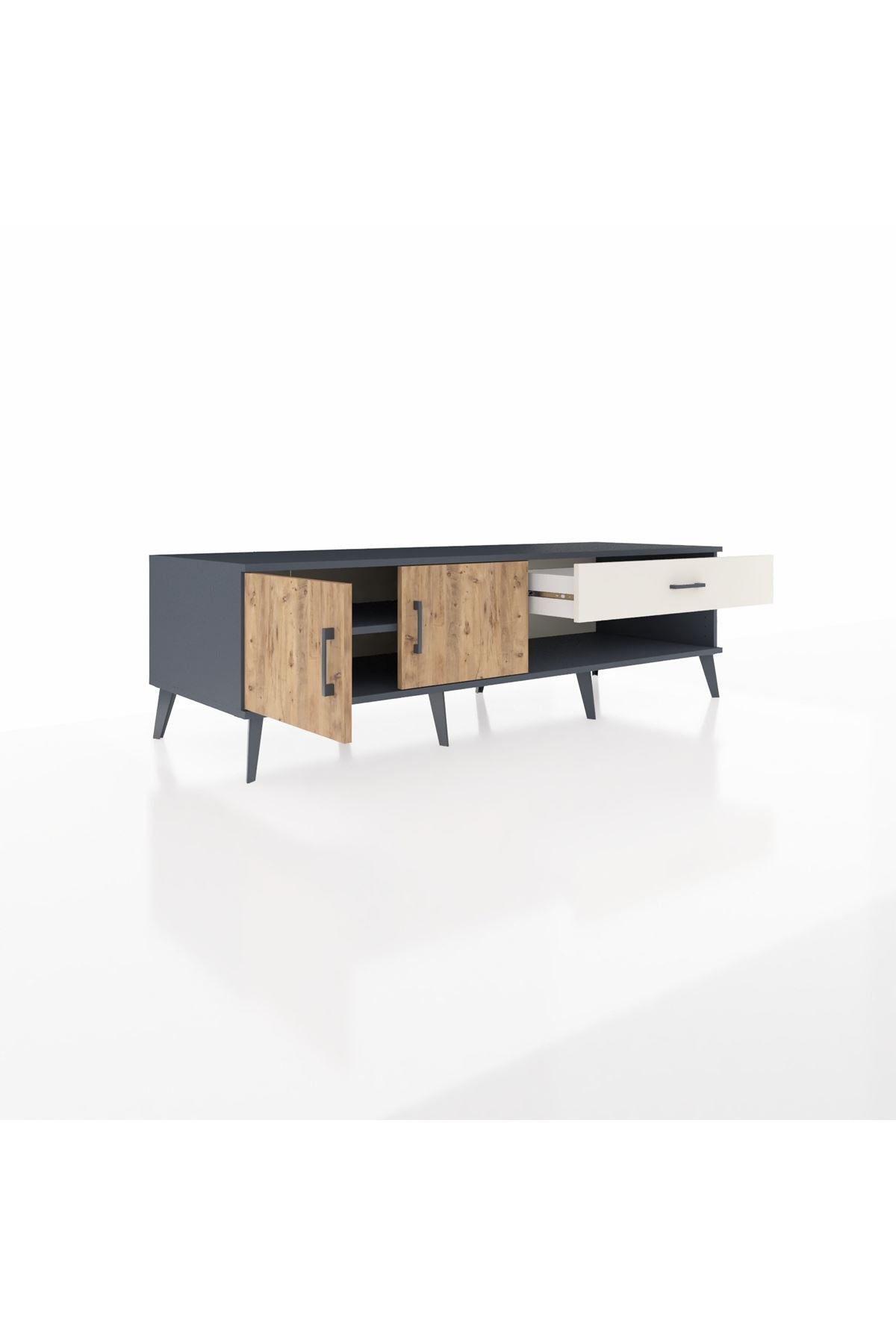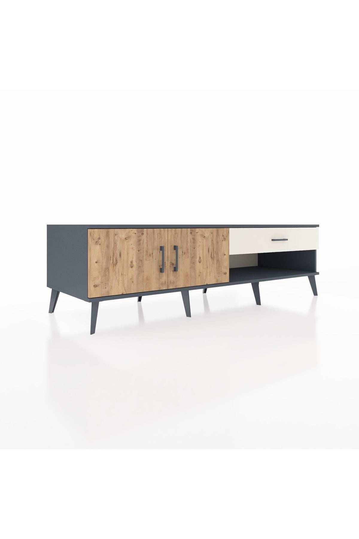 Kronos TV Ünitesi Tek Raflı Tek Çekmeceli 2 Kapaklı 176x59x51 Antrasit-Çam/Aytaşı