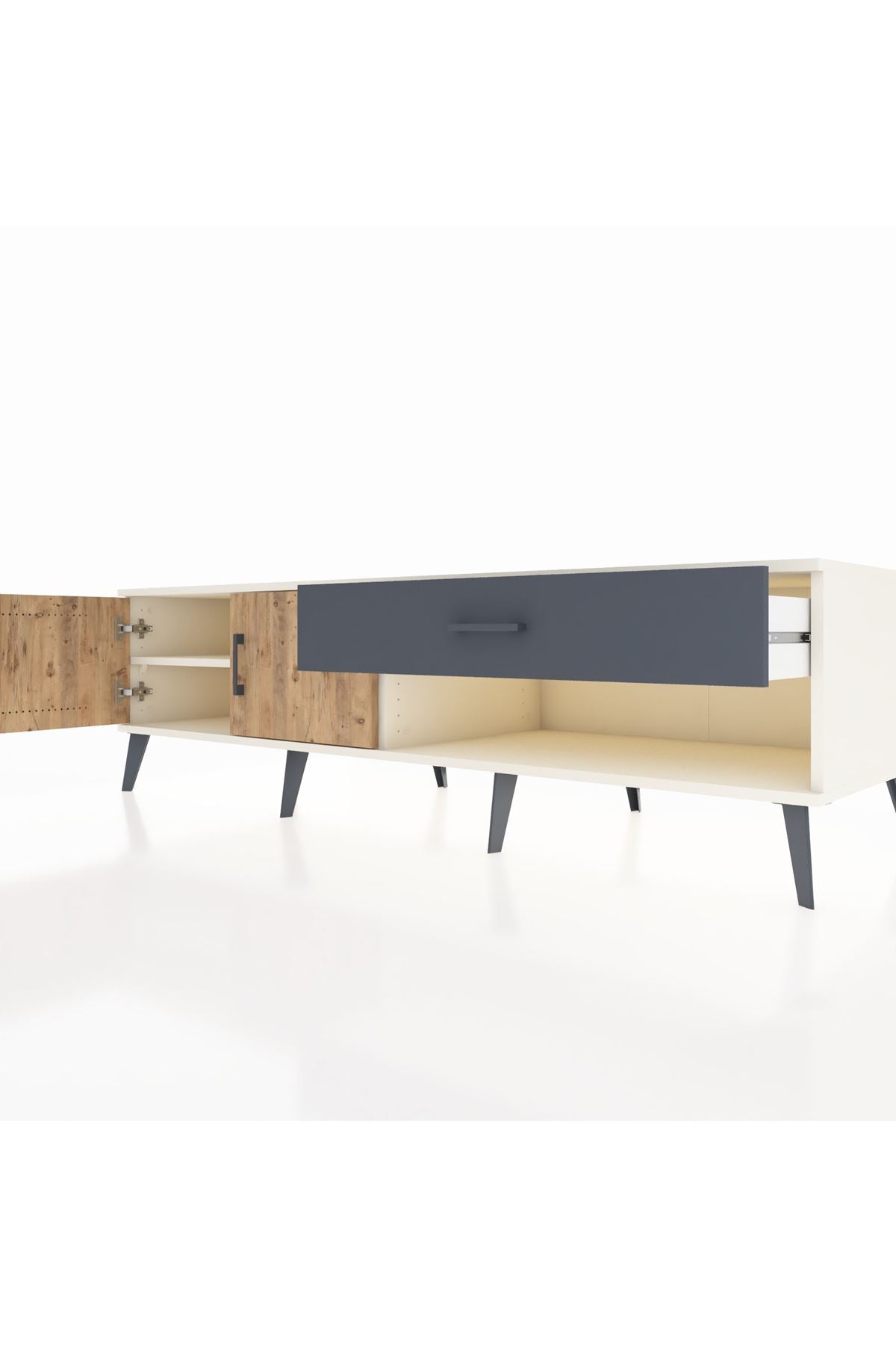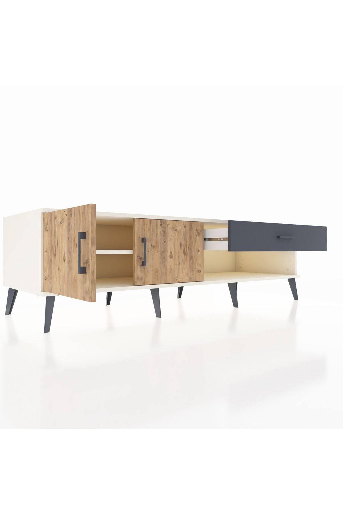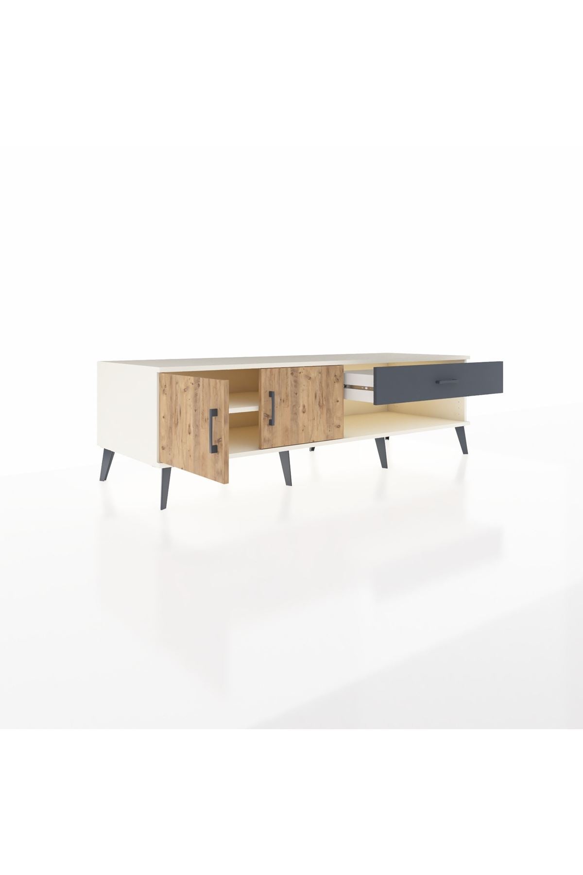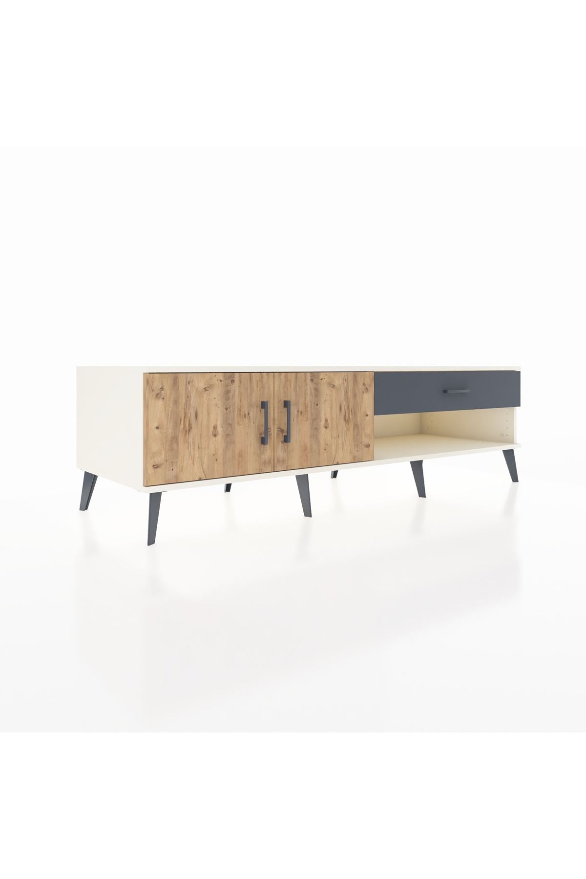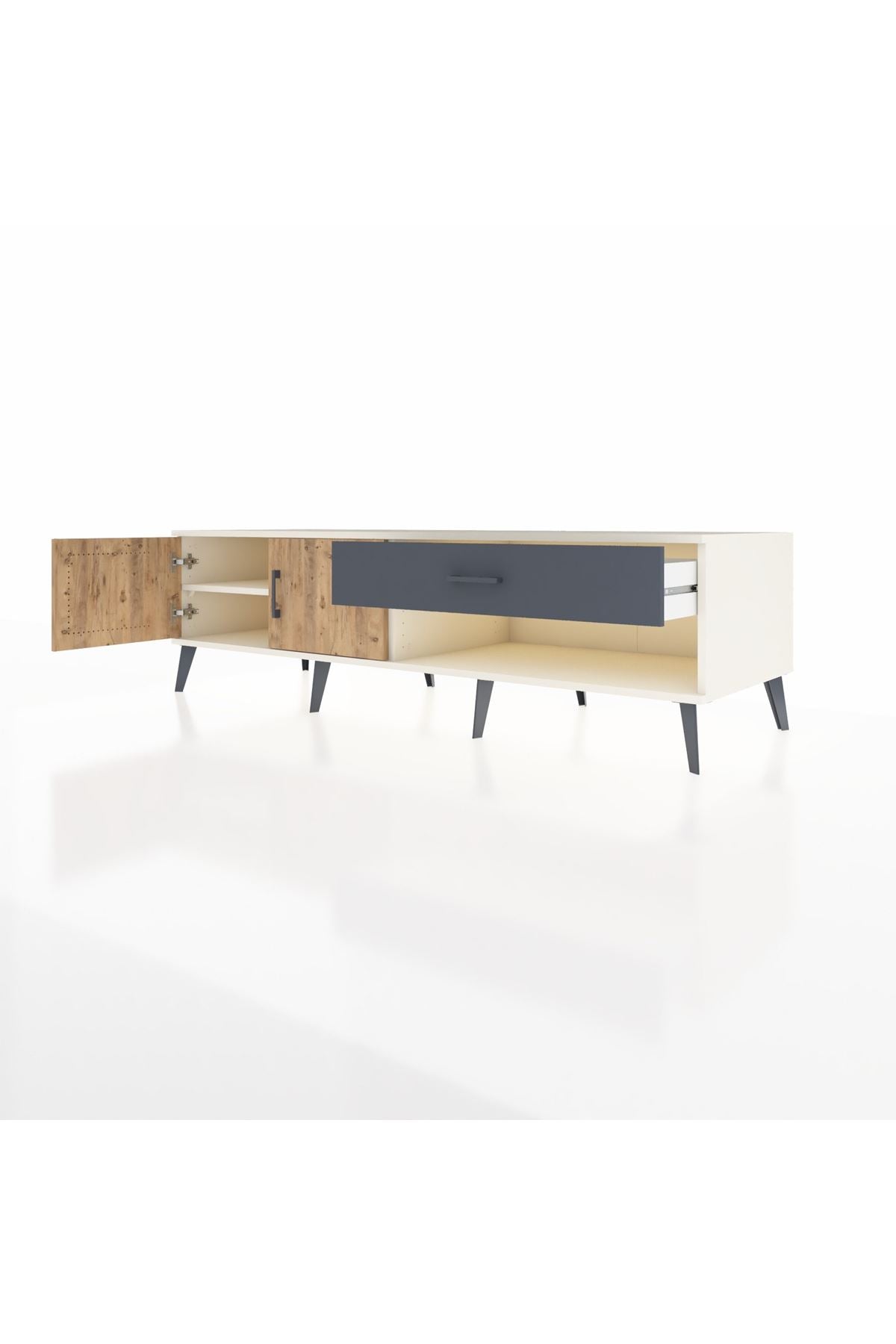 Kronos TV Ünitesi Tek Raflı Tek Çekmeceli 2 Kapaklı 176x59x51 Aytaşı-Çam/Antrasit