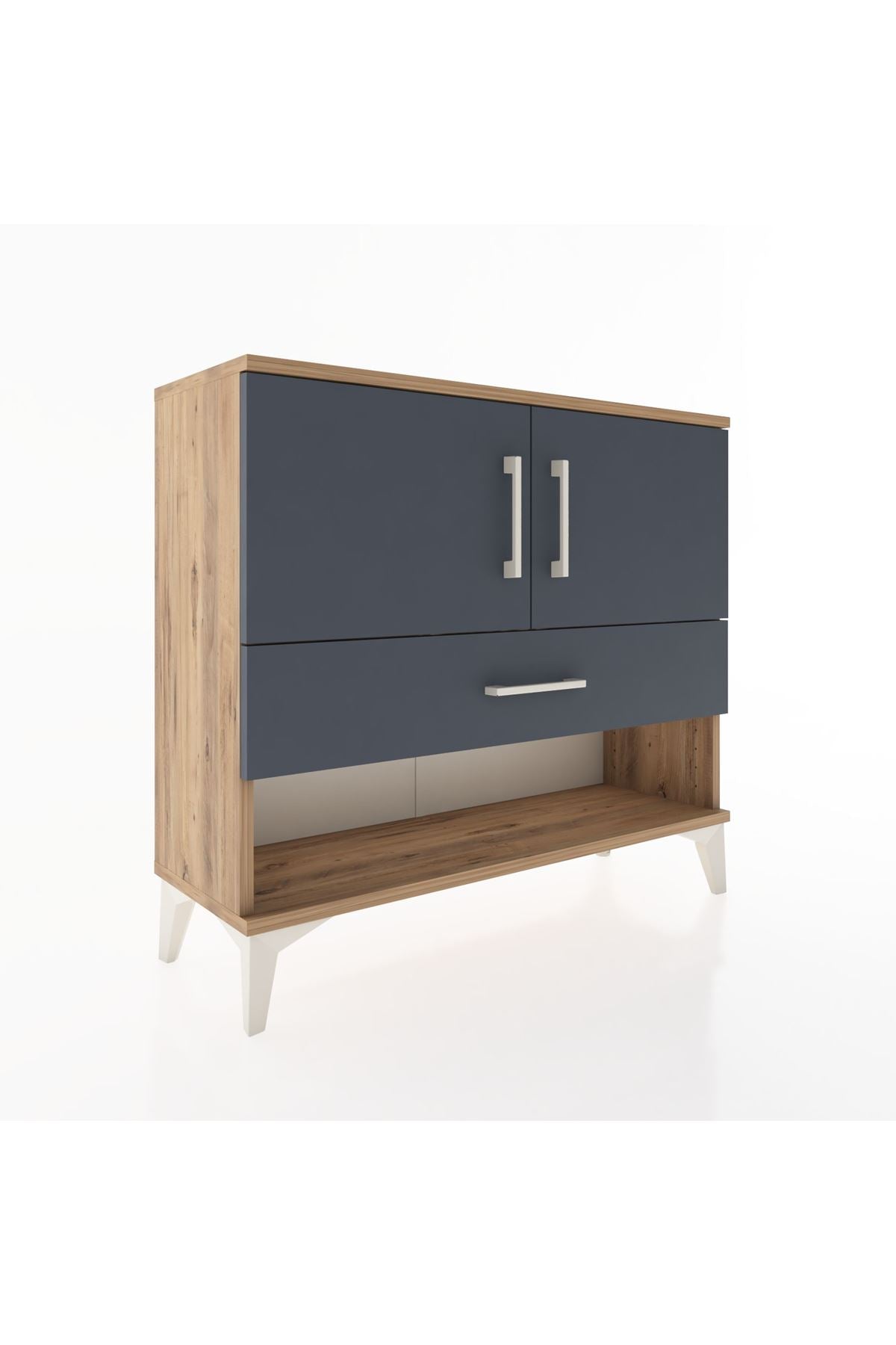 Arges Şifonyer 2 Raflı Tek Çekmeceli 2 Kapaklı 88x30x80 Çam-Antrasit
