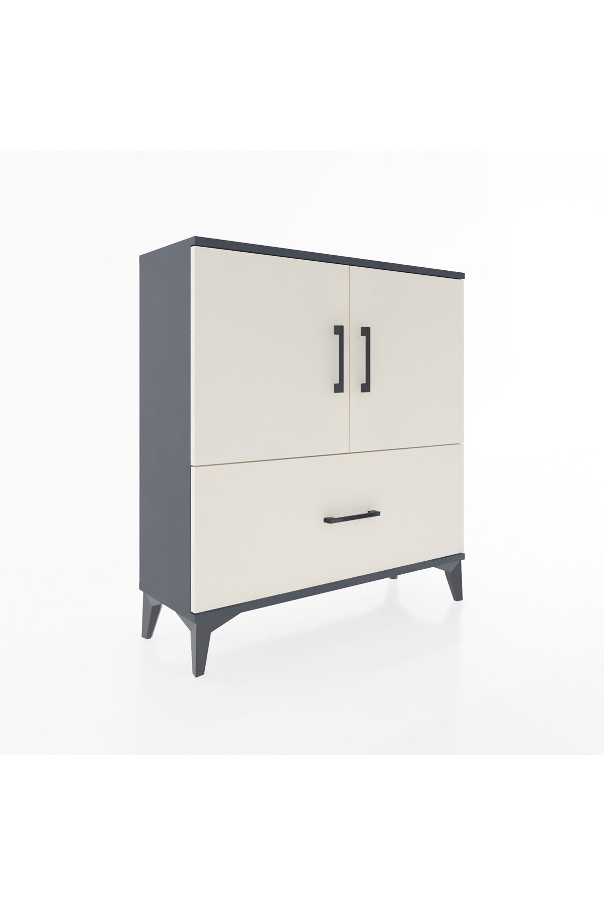 Arges Şifonyer 2 Raflı Tek Çekmeceli 2 Kapaklı 88x30x96 Antrasit-Aytaşı