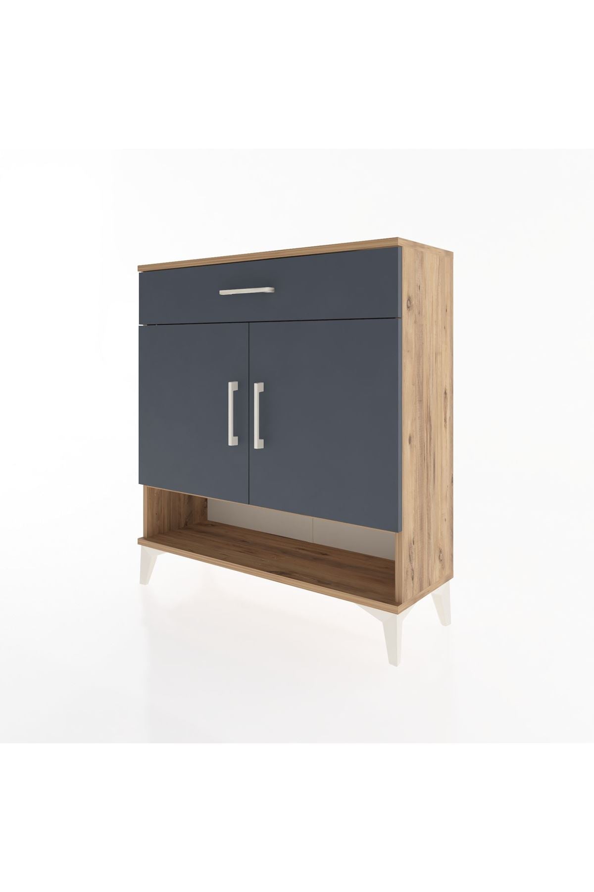 Arges Şifonyer 2 Raflı Tek Çekmeceli 2 Kapaklı 88x30x96 Çam-Antrasit