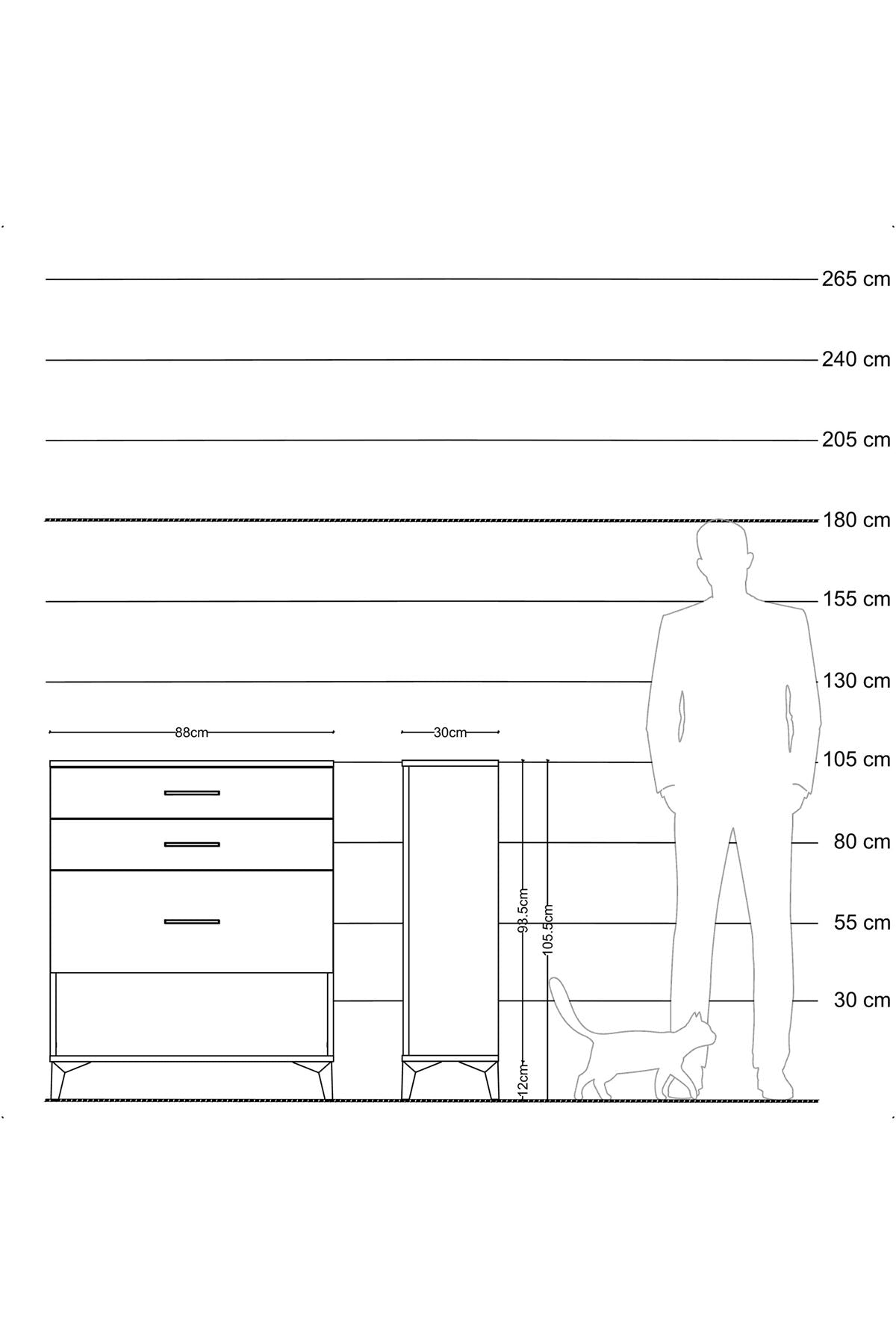 Arges Şifonyer 3 Çekmeceli 88x30x106 Antrasit-Çam