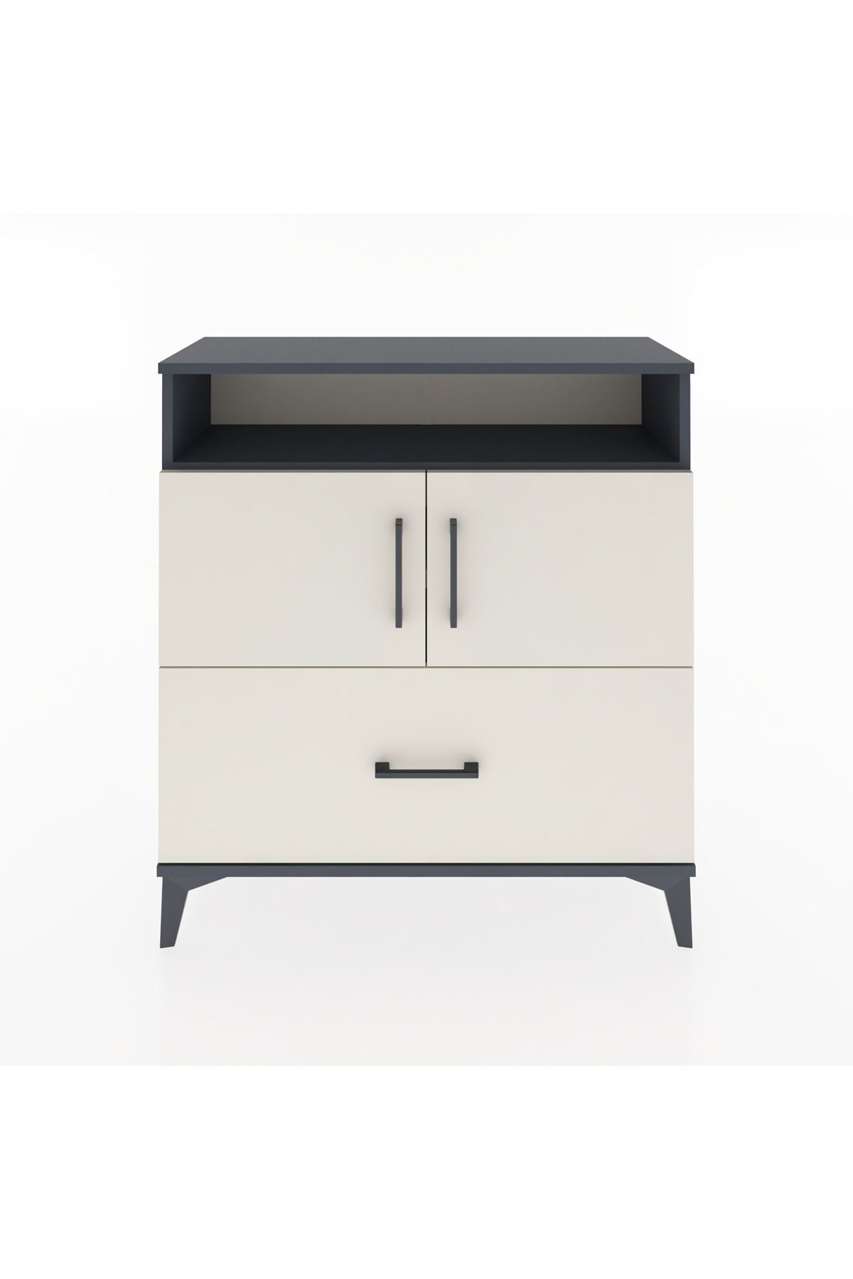 Arges Şifonyer 3 Raflı Tek Çekmeceli 2 Kapaklı 88x30x96 Antrasit-Aytaşı