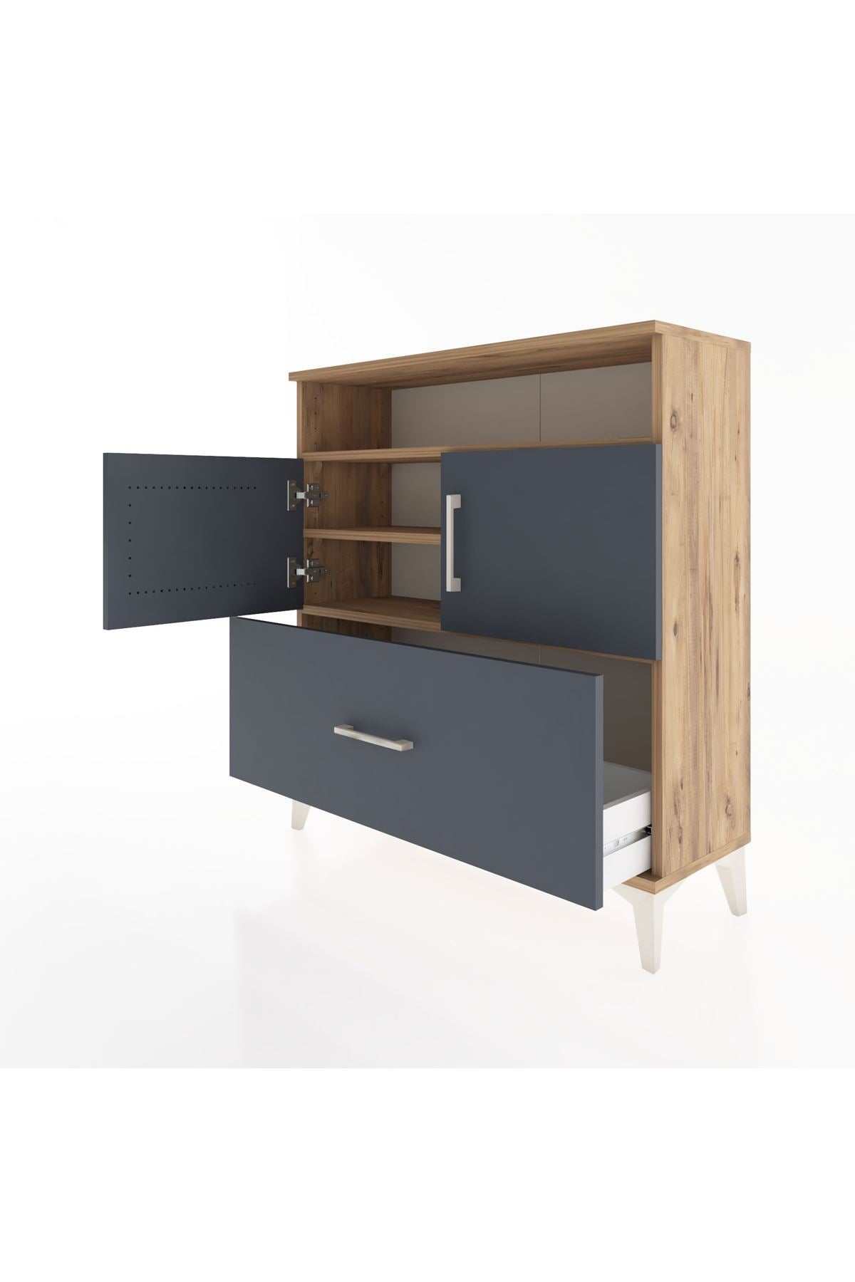 Arges Şifonyer 3 Raflı Tek Çekmeceli 2 Kapaklı 88x30x96 Çam-Antrasit