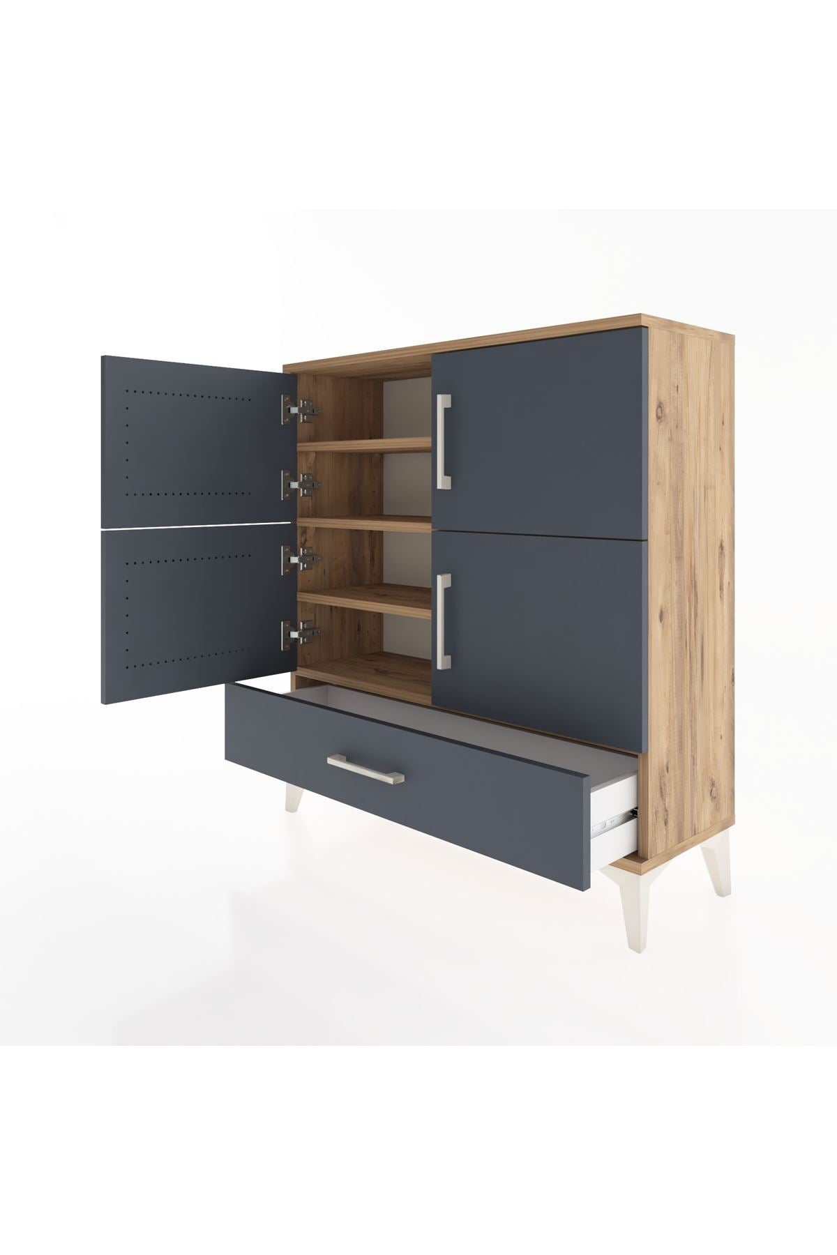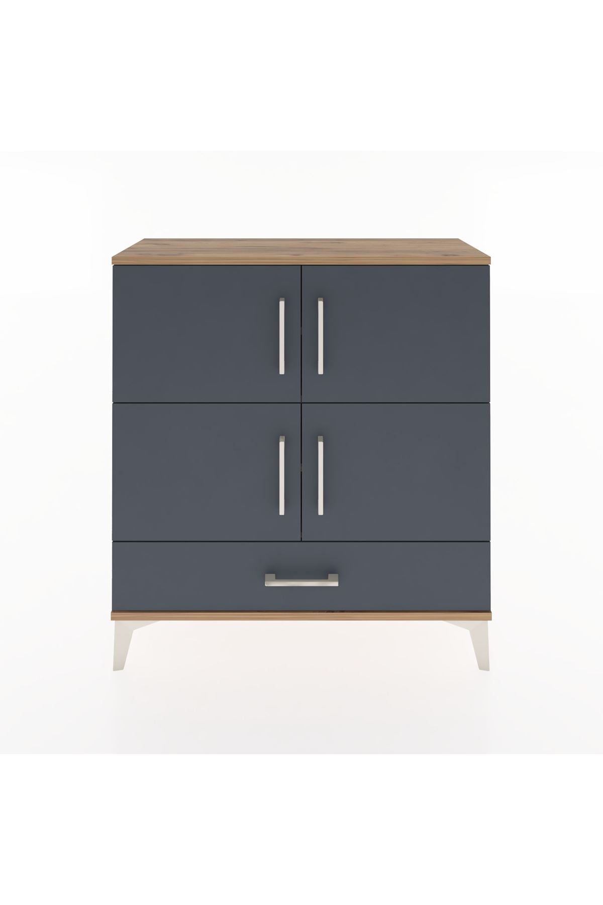 Arges Şifonyer 4 Raflı Tek Çekmeceli 4 Kapaklı 88x30x96 Çam-Antrasit