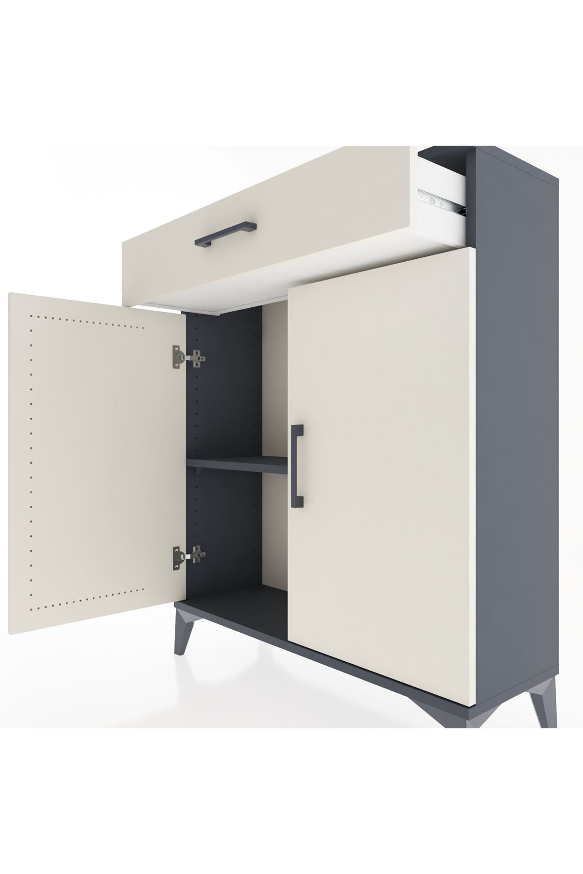 Arges Şifonyer Tek Raflı Tek Çekmeceli 2 Kapaklı 88x30x106 Antrasit-Aytaşı