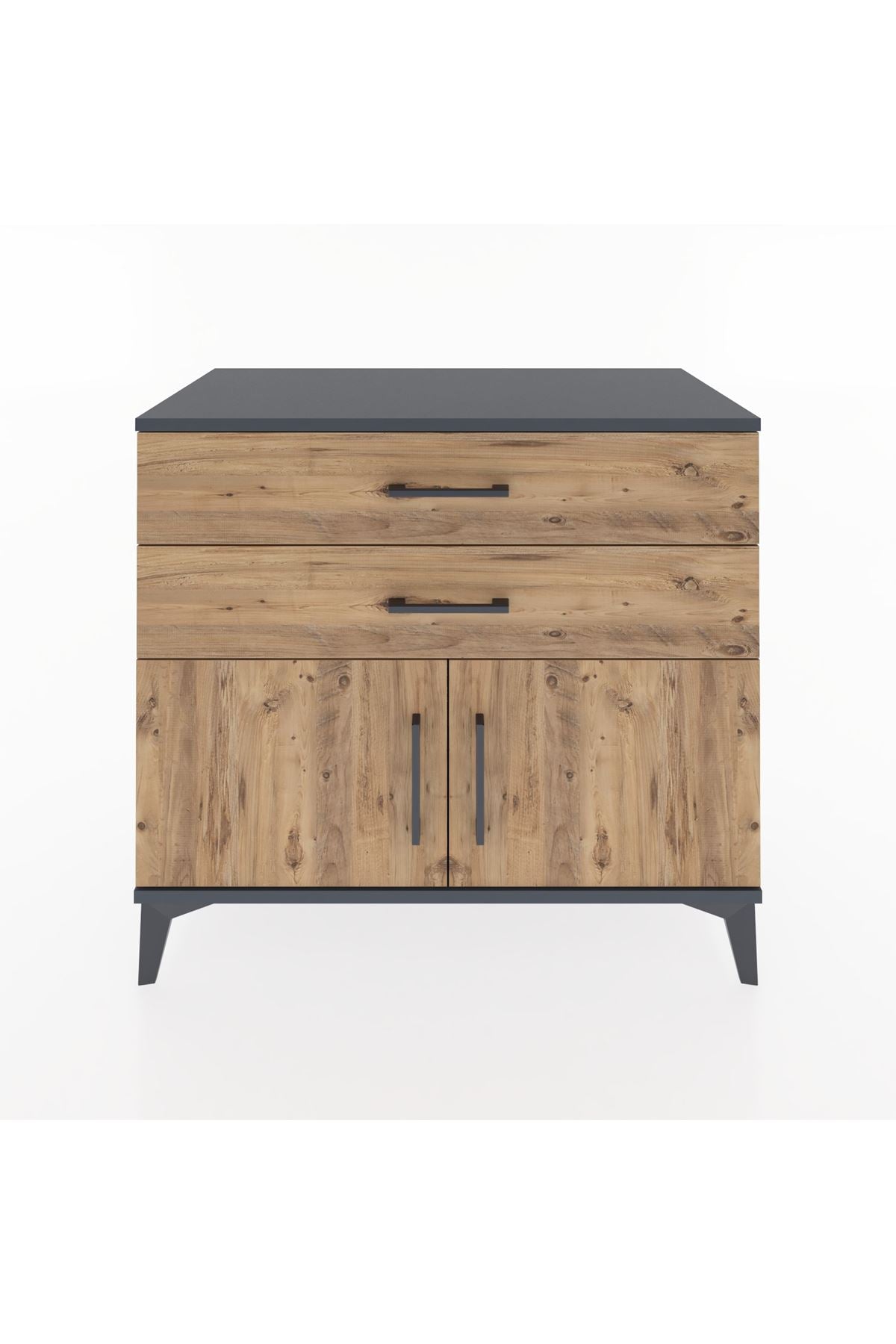 Hyperion Şifonyer 2 Çekmeceli 2 Kapaklı 88x44x80 Antrasit-Çam – Fonksiyonel ve Şık Depolama