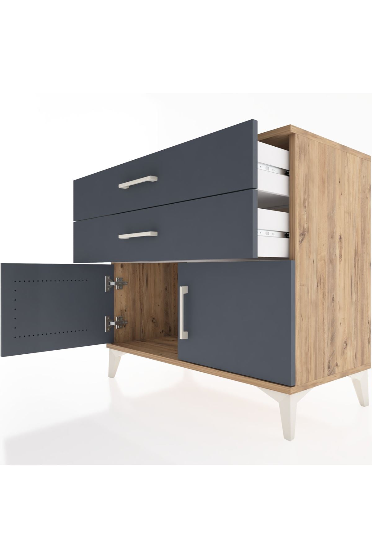 Hyperion Şifonyer 2 Çekmeceli 2 Kapaklı 88x44x80 Çam-Antrasit