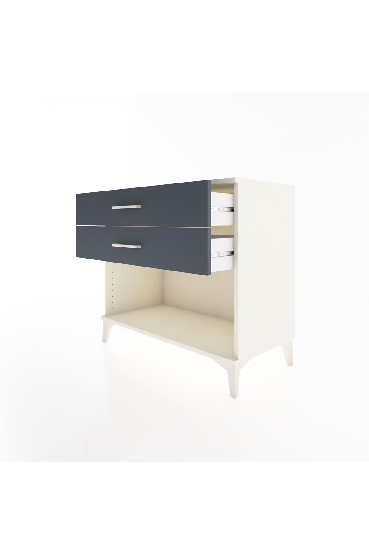 İki çekmeceli tasarım, sık kullanılan malzemeleri kolayca ulaşılabilir kılar; üst yüzey dekoratif objeler veya çalışma ekipmanları için ideal alan sağlar. Kompakt ebatları ile dar koridorlarda, soyunma odalarında veya stüdyo arka alanlarında yer tasarrufu sağlar. Suntalam yüzey, leke ve çiziklere karşı dayanıklı olup rutubete dayanımı artırılmıştır. Metal donanımlar, sık kullanım koşullarında bile sabitliği korur. Şarjlı vidalama seti hediye edilerek kurulum süreci hızlandırılır ve montaj konforu sağlanır.