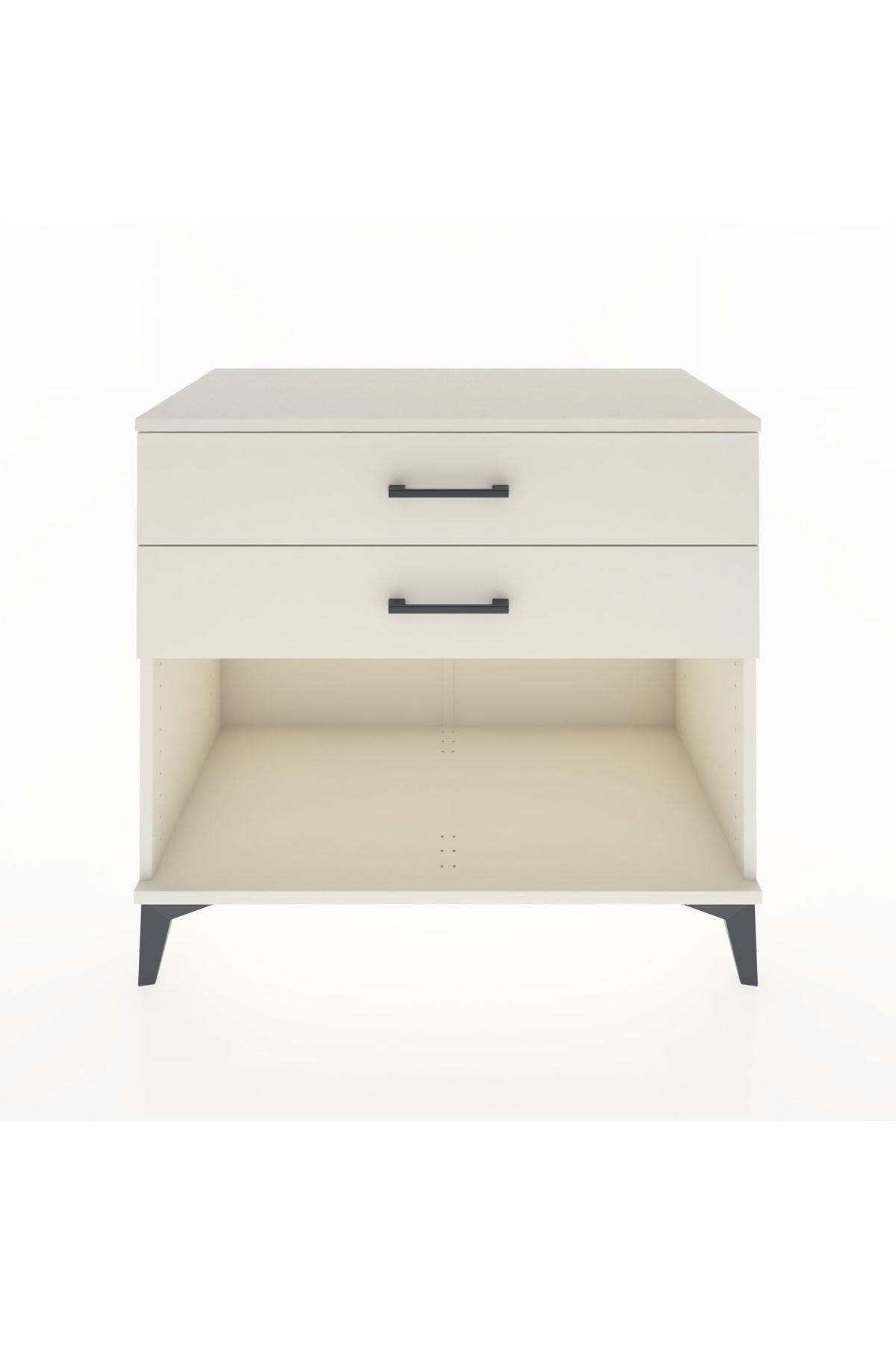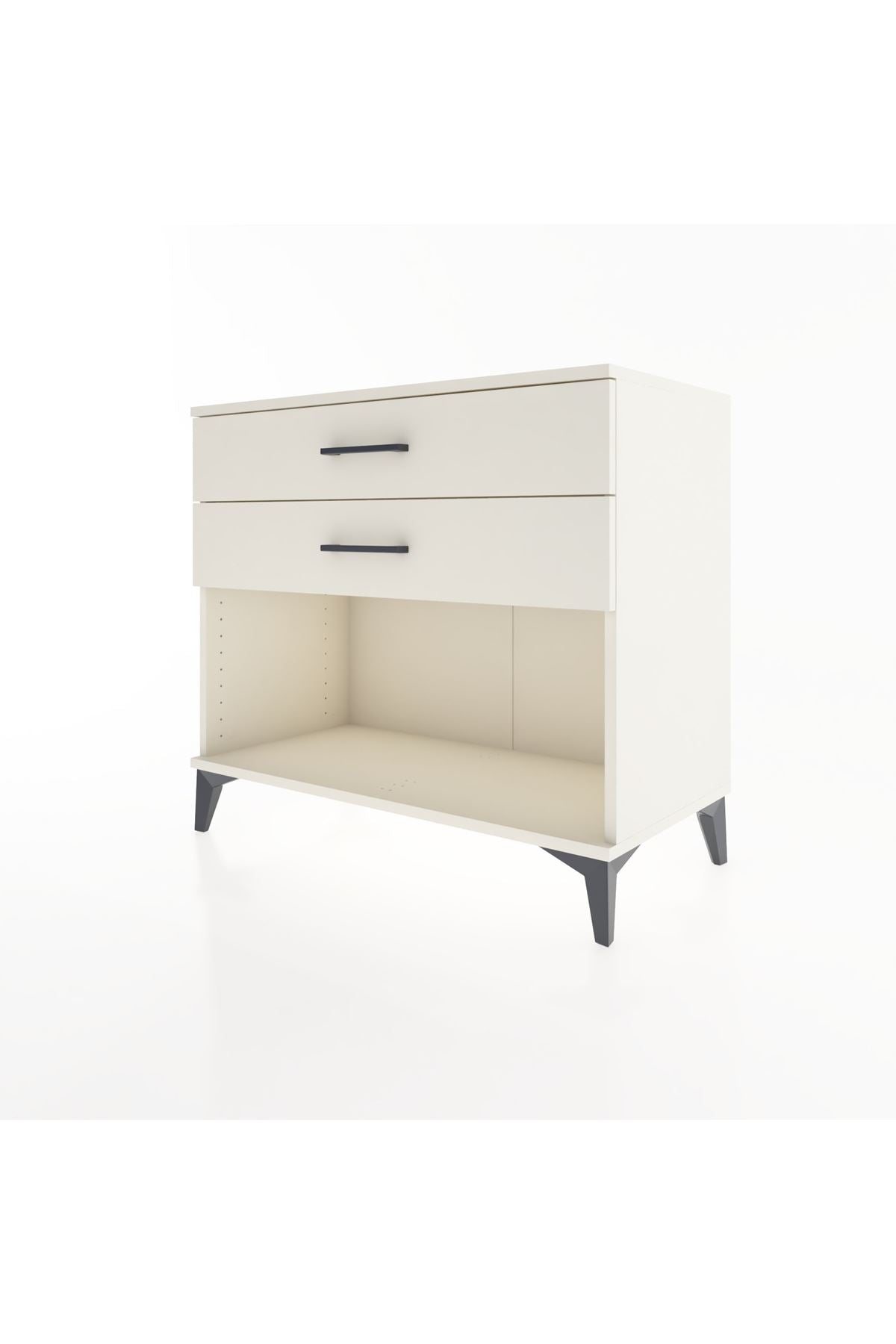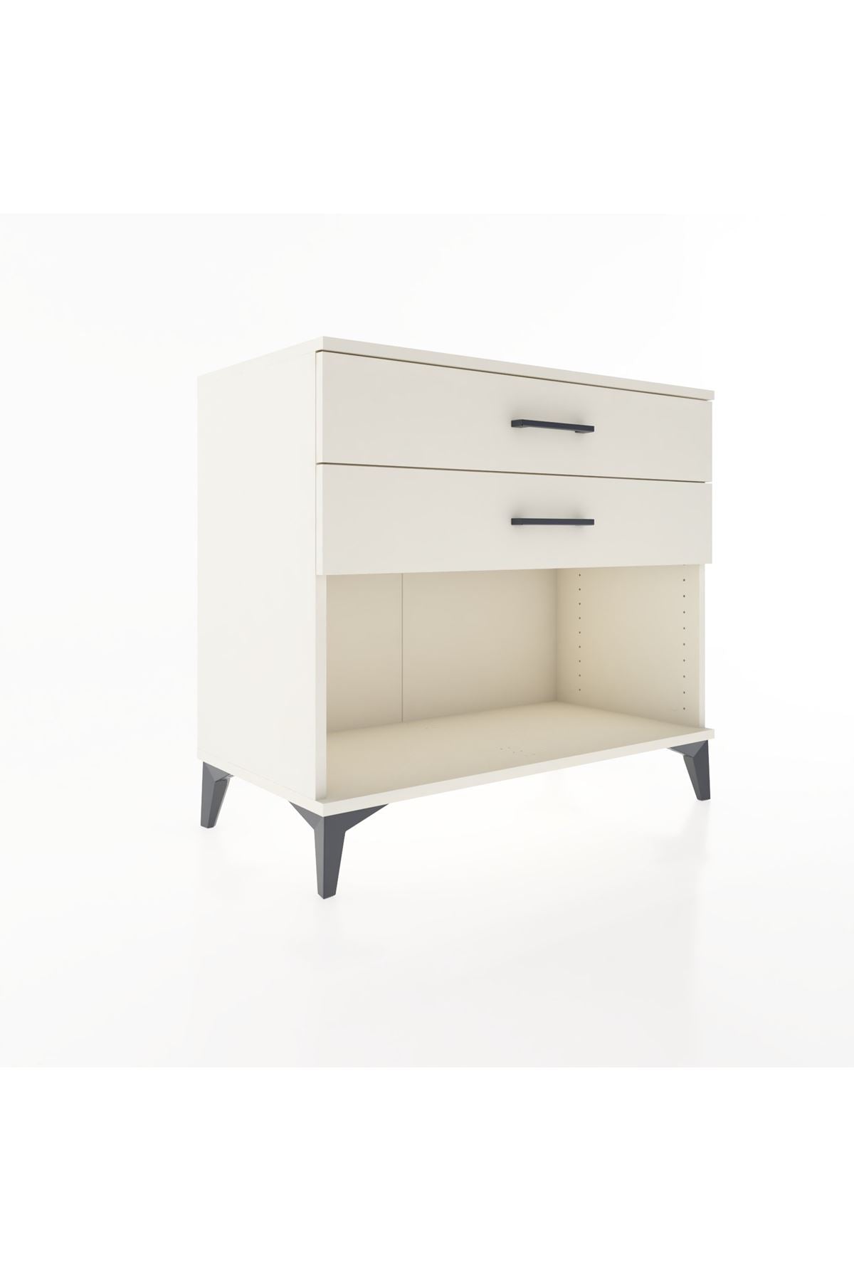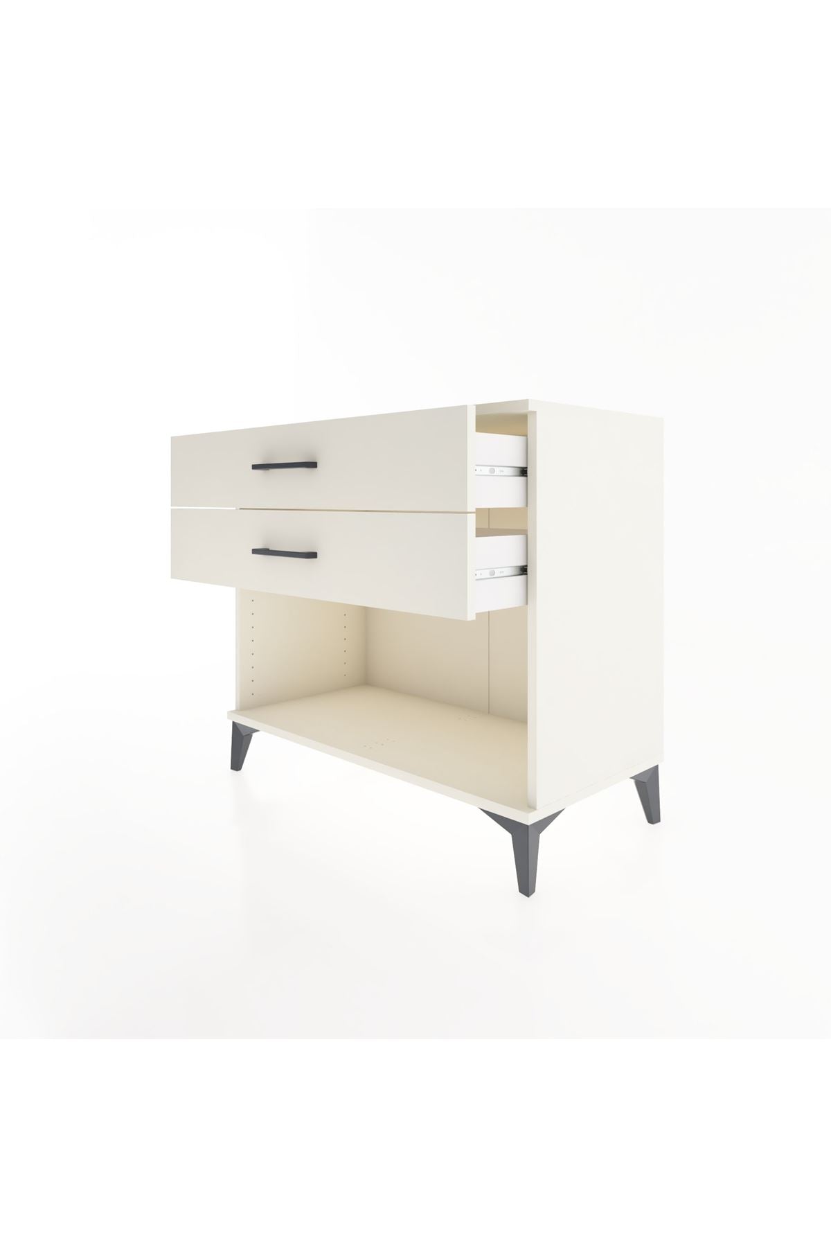 İç mekân düzenini kolaylaştırır; üst yüzeyi dekoratif objeler veya çalışma gereçleri için ideal kullanım alanı sunar. İki çekmeceyle sık kullanılan eşyalar hızlı erişime hazır olurken, alt bölmedeki ayarlanabilir raf sayesinde dosya, kutu veya ofis ekipmanı gibi farklı boyutlardaki eşyalar düzenli bir şekilde saklanabilir. Çekmece sayısı konfigüre edilebilir; ihtiyaca göre ekstra çekmece eklenebilir veya çekmeceler farklı bölümlere dönüştürülebilir. Metal donanımlar ve sağlam ayak yapısı hareketli kullanımda stabilite sağlar.