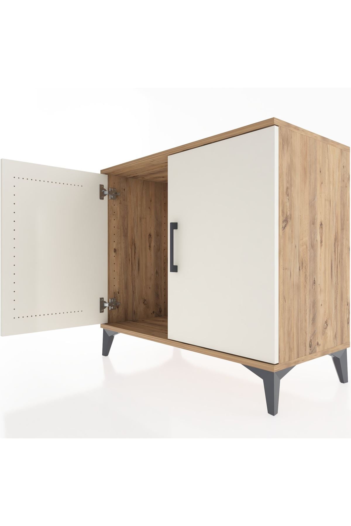 Kompakt ebatlarıyla dar alanlarda bile geniş depolama sunar. 1. sınıf suntalam yüzeyler çizilmelere ve nem dalgalanmalarına karşı dayanıklı bir kullanım sağlar. Metal ayak yapısı zeminden yüksekte konumlandırma imkanı vererek temizlik ve hava sirkülasyonu kolaylığı sağlar. Ayarlanabilir raflarla farklı boyutlardaki eşyalar düzenlenebilir; çekmece konfigürasyonu ile iç düzen kişiselleştirilebilir. Şarjlı vidalama seti hediye olarak kutuda gönderilir, montaj sürecini hızlandırır. 14:00'a kadar aynı gün kargo ve genişletilmiş müşteri desteği sayesinde alım sonrası süreçler hızlı ve güvenli ilerler.