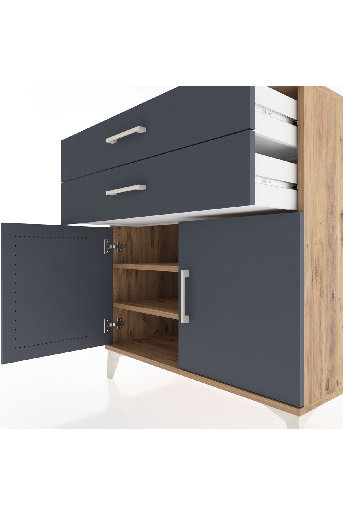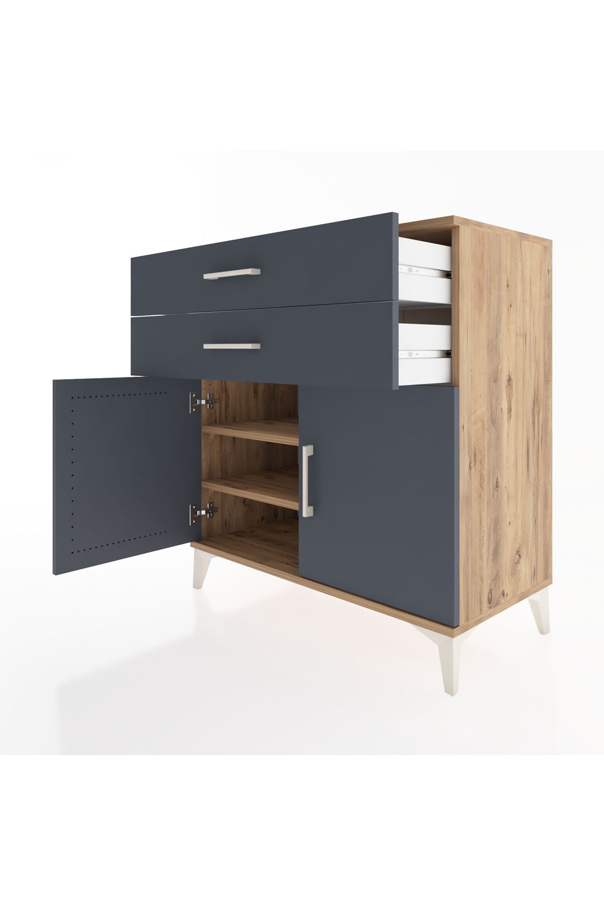 Hyperion Şifonyer 2 Raflı 2 Çekmeceli 2 Kapaklı 88x44x96 Çam-Antrasit
