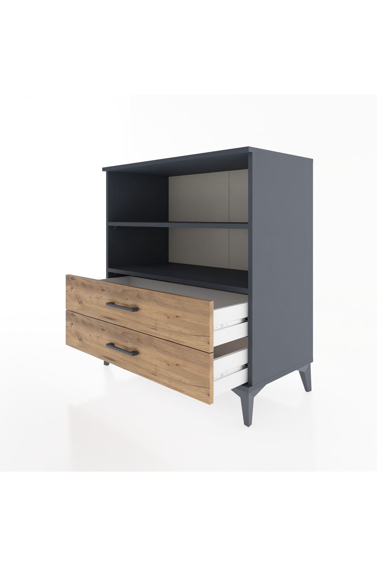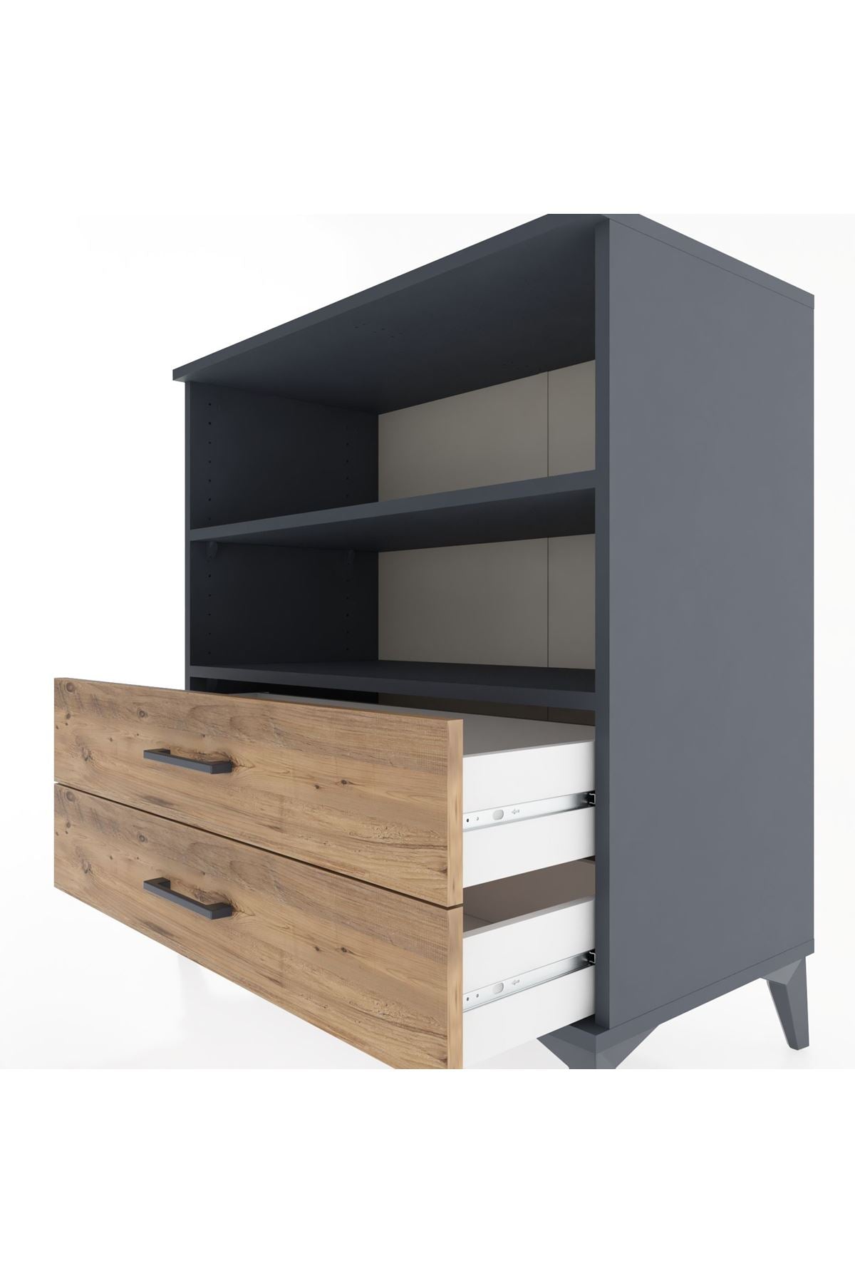 Hyperion Şifonyer 2 Raflı 2 Çekmeceli 88x44x96 Antrasit-Çam