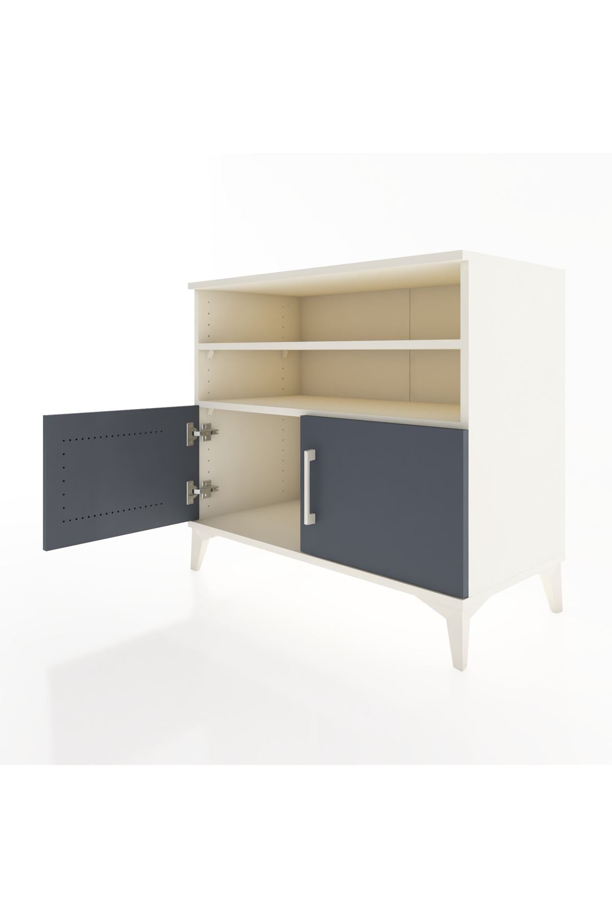 Oyuncaklar, kitaplar ve okul malzemeleri için güvenli saklama sağlar. Raf yüksekliği ayarlanarak farklı yaş gruplarına uygun depolama oluşturulabilir; kapaklı bölmeler dağınıklığı gizleyip odanın düzenini korur. Sağlam metal ayaklar dayanıklılığı artırırken temizlik ve taşınma kolaylığı sunar.