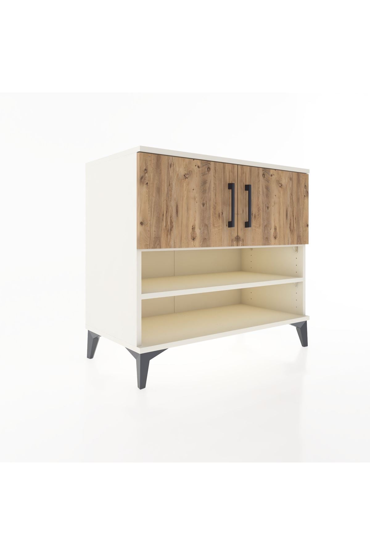Geniş iç hacim ve iki ayarlanabilir raf sayesinde farklı boyutlardaki eşyalarınızı rahatça yerleştirebilirsiniz. Kapaklı bölme, göz önünde istemediğiniz eşyaları gizlerken açık raflar dekoratif objeler veya sık kullanılan eşyalar için pratik erişim sunar. Çekmece sayısı konfigüre edilebilir özelliği ile depolama ihtiyacınıza göre düzenleme yapabilirsiniz. Metal ayaklar sayesinde mobilya zeminden yükselir; nem ve tozun etkileri azalır, temizlik daha hızlı hale gelir. Kaliteli bağlantı elemanları ve dengeli tasarım günlük kullanımdaki sarsıntılara karşı dayanıklıdır.
