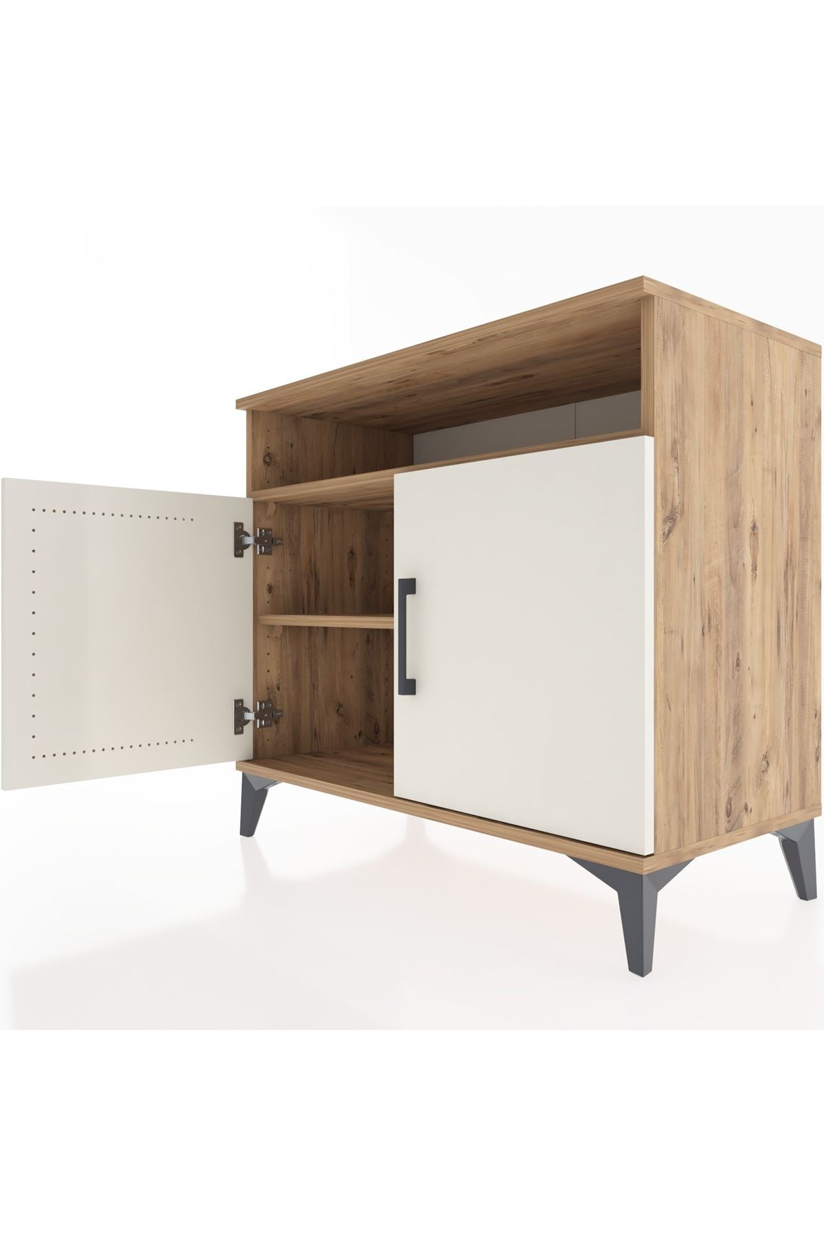 Komodin, antre veya ofis gibi dar alanlarda yerden tasarruf sağlar. Üst yüzey dekoratif objeler, aydınlatma veya çalışma ekipmanları için ideal alan sunar. Kapaklı bölümler kablo düzeni, kıyafet, aksesuar veya evrak saklama için güvenli saklama imkânı verir. Ayarlanabilir raflar sayesinde farklı yükseklikteki eşyalar için esnek kullanım sağlar. Metal ayaklar temizlik kolaylığı sağlar; altı açık olduğu için süpürme ve mop işlemleri pratikleşir.