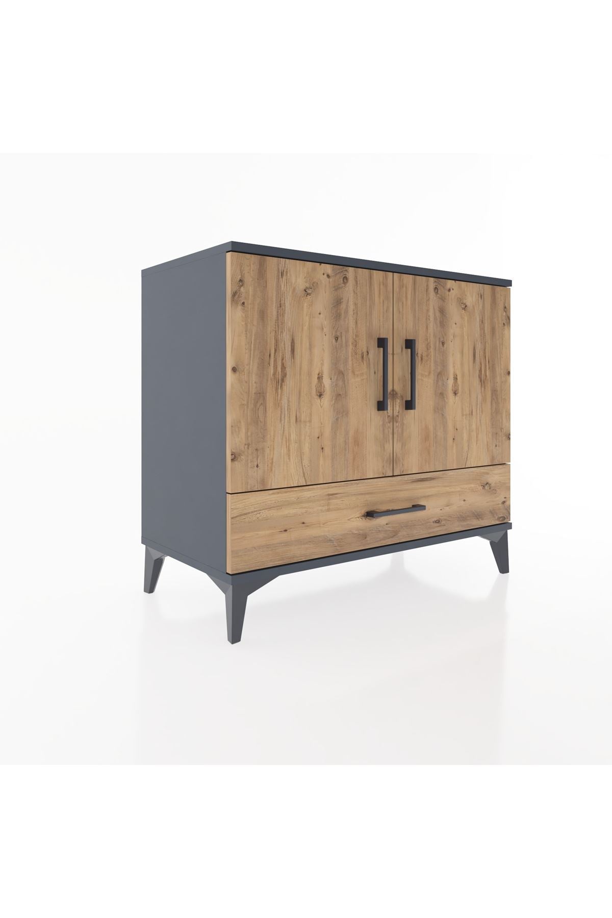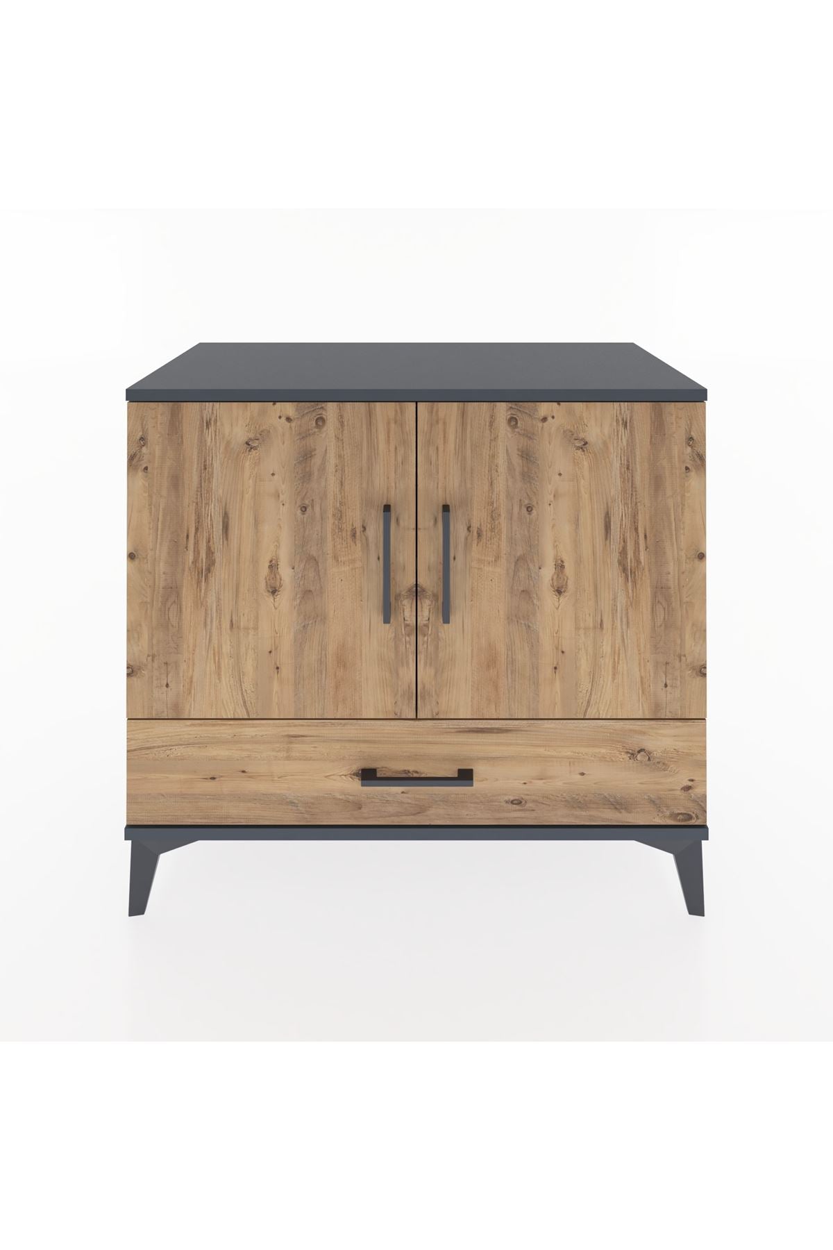 Hyperion Şifonyer 2 Raflı Tek Çekmeceli 2 Kapaklı 88x44x80 Antrasit-Çam