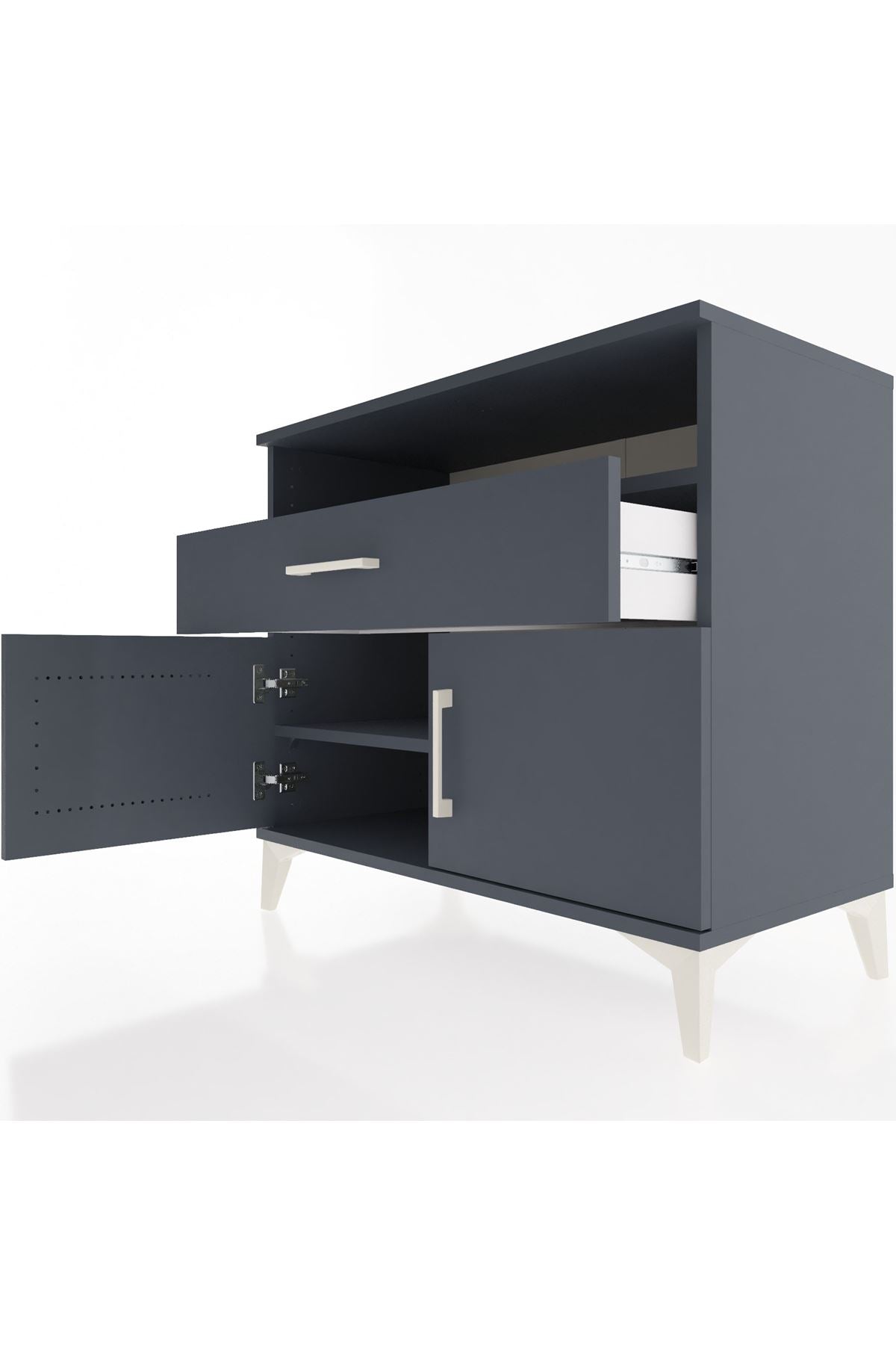 Hyperion Şifonyer 2 Raflı Tek Çekmeceli 2 Kapaklı 88x44x80 Antrasit-Antrasit