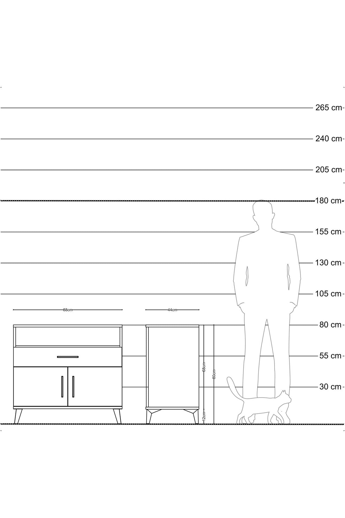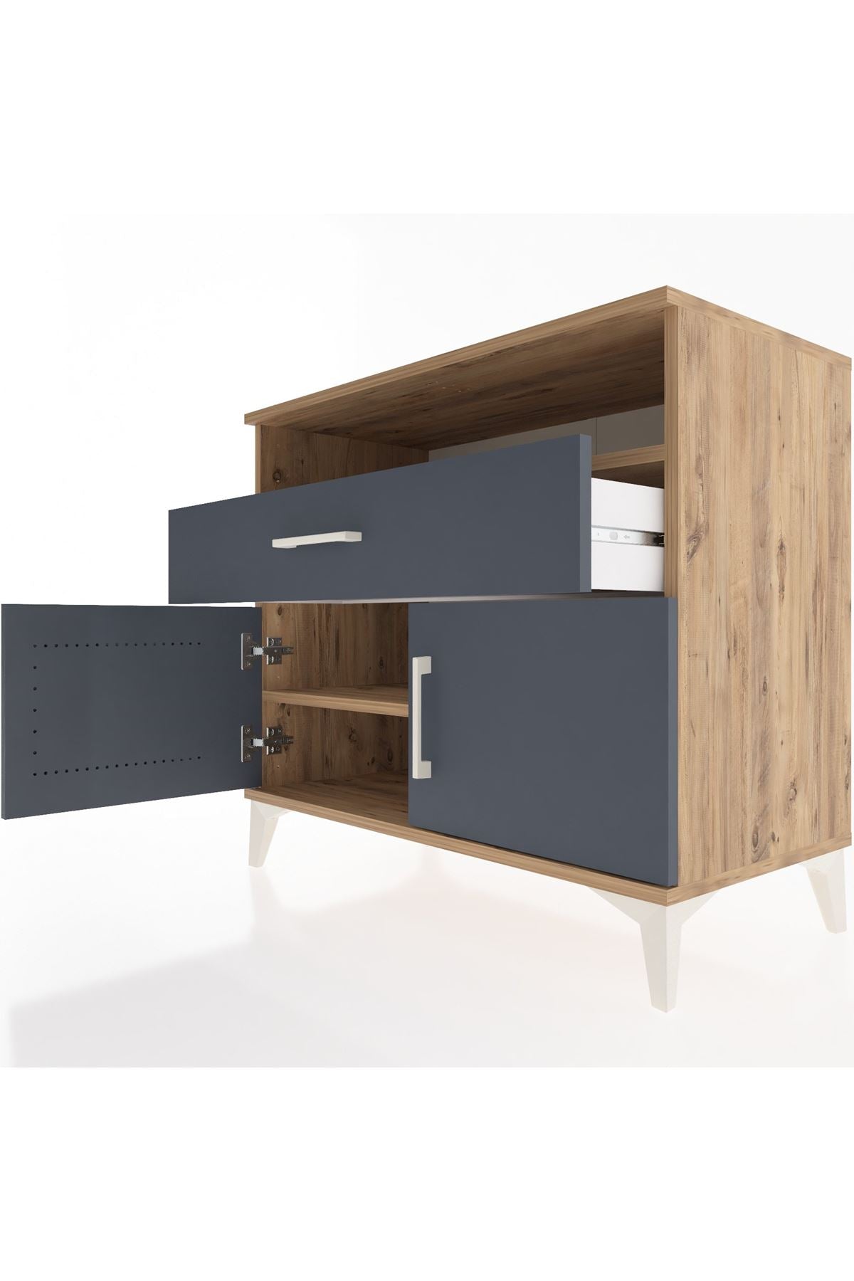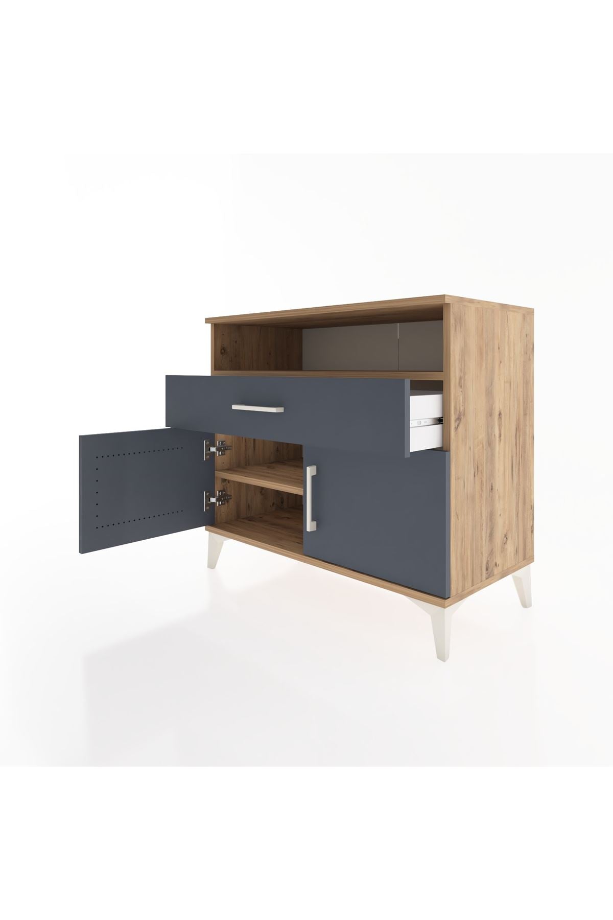 Hyperion Şifonyer 2 Raflı Tek Çekmeceli 2 Kapaklı 88x44x80 Çam-Antrasit