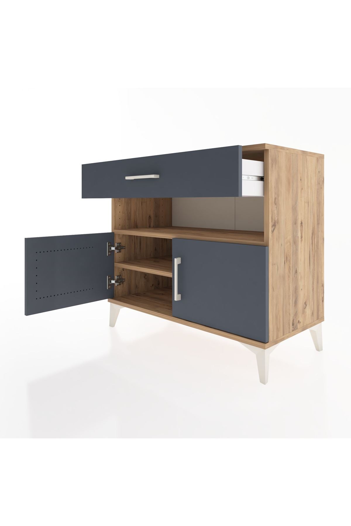 Hyperion Şifonyer 2 Raflı Tek Çekmeceli 2 Kapaklı 88x44x80 Çam-Antrasit