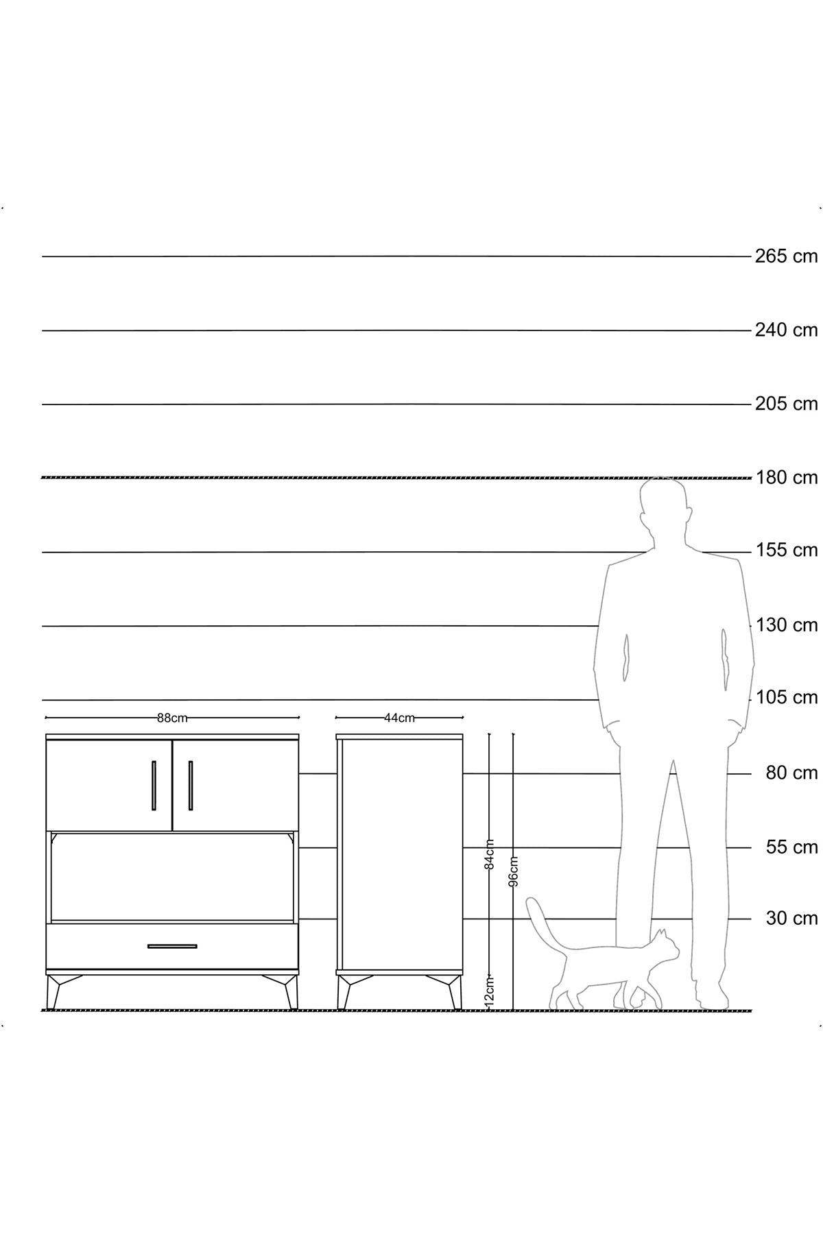 Hyperion Şifonyer 2 Raflı Tek Çekmeceli 2 Kapaklı 88x44x96 Antrasit-Antrasit