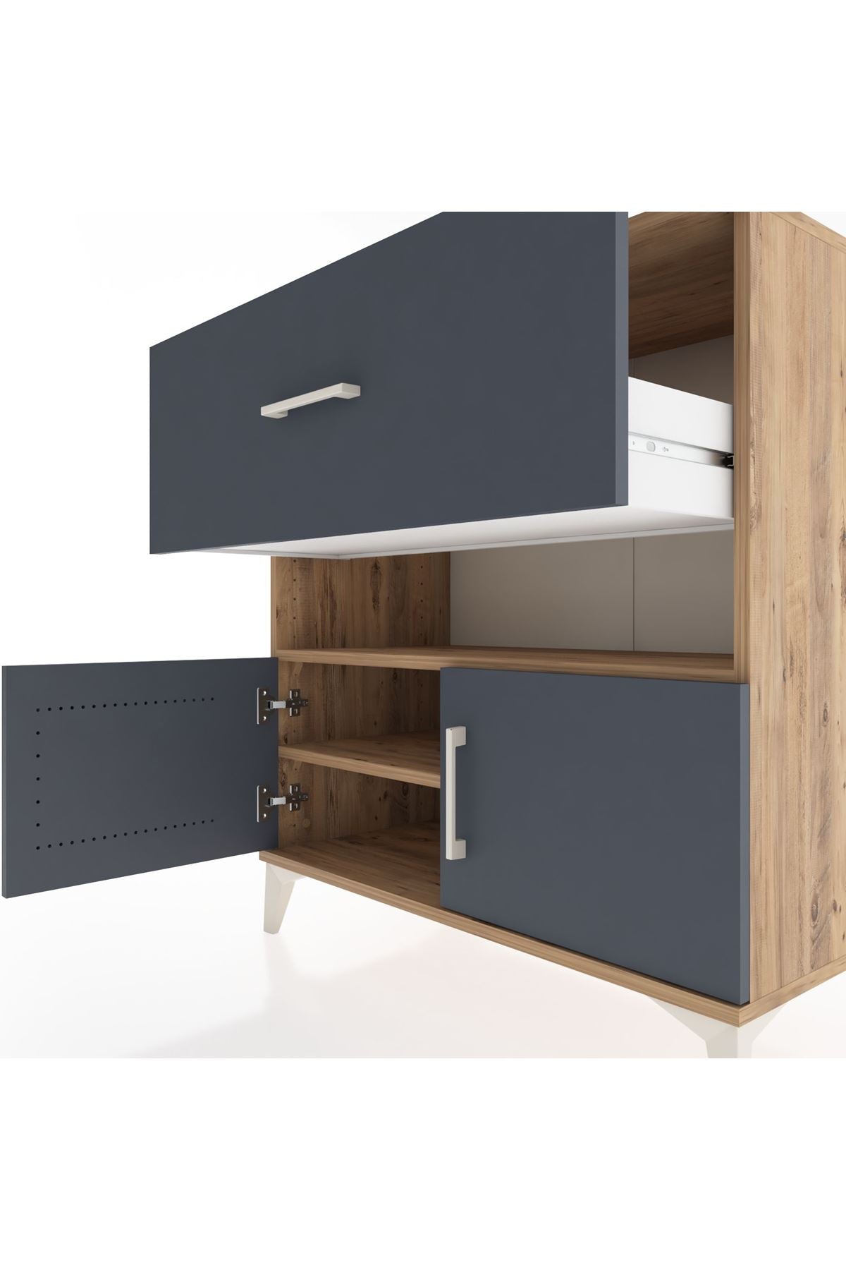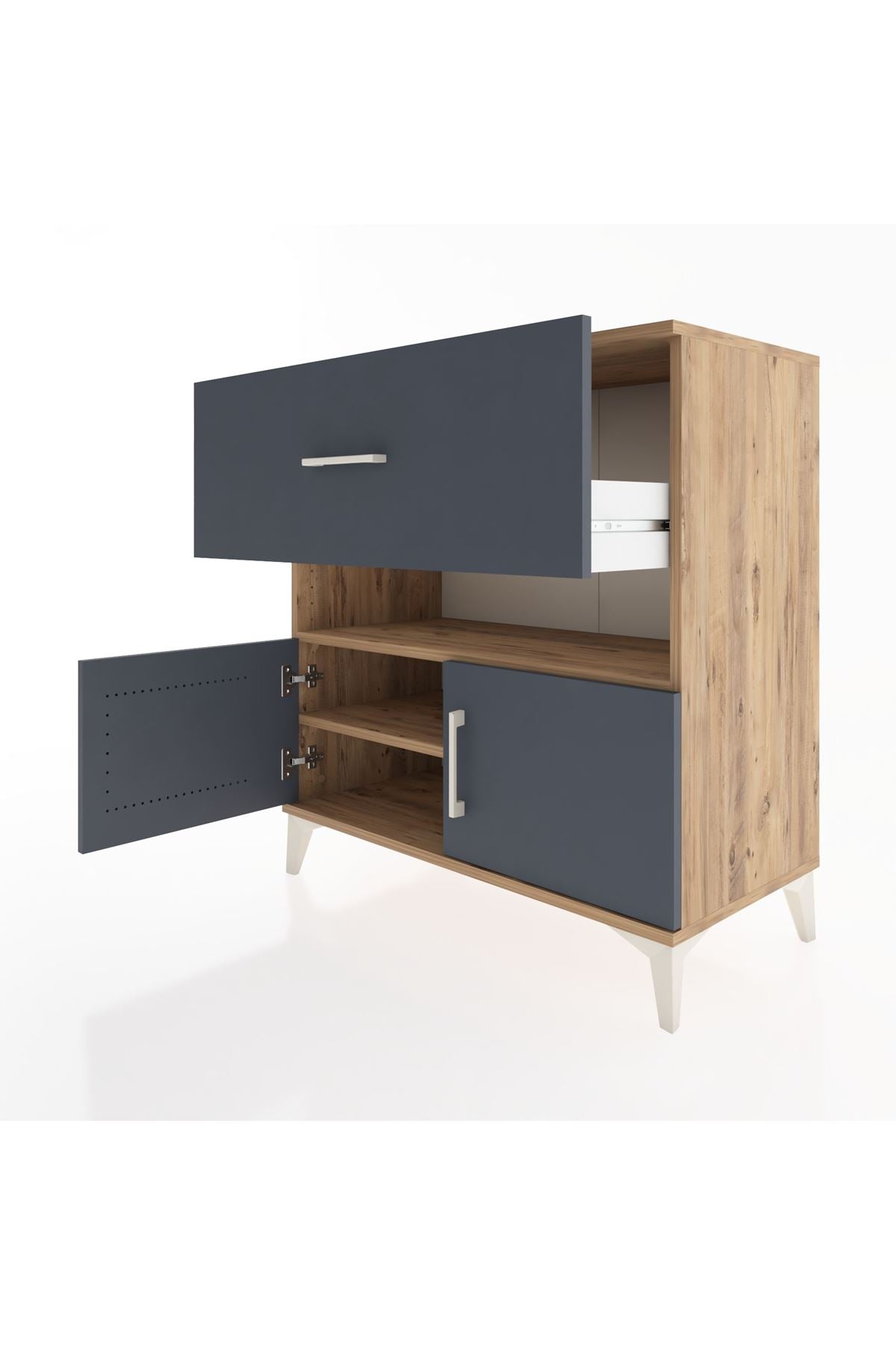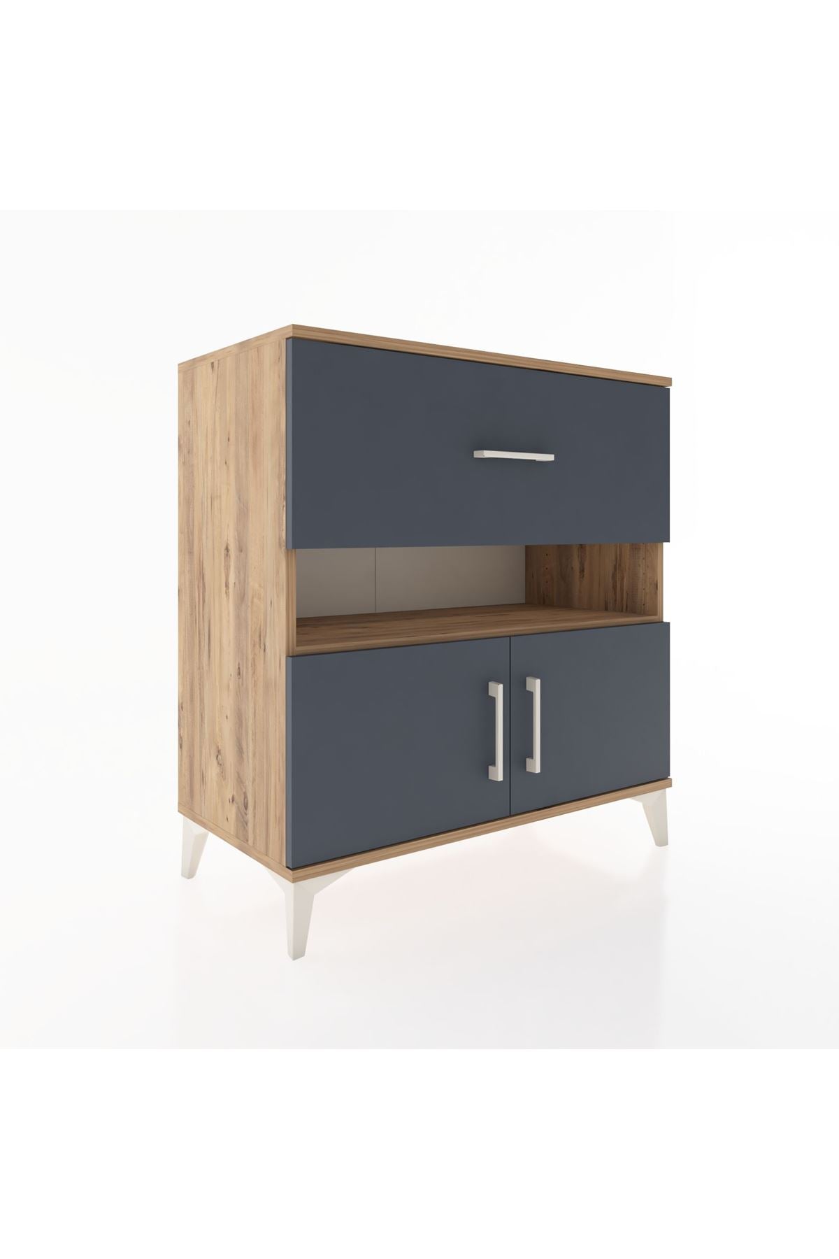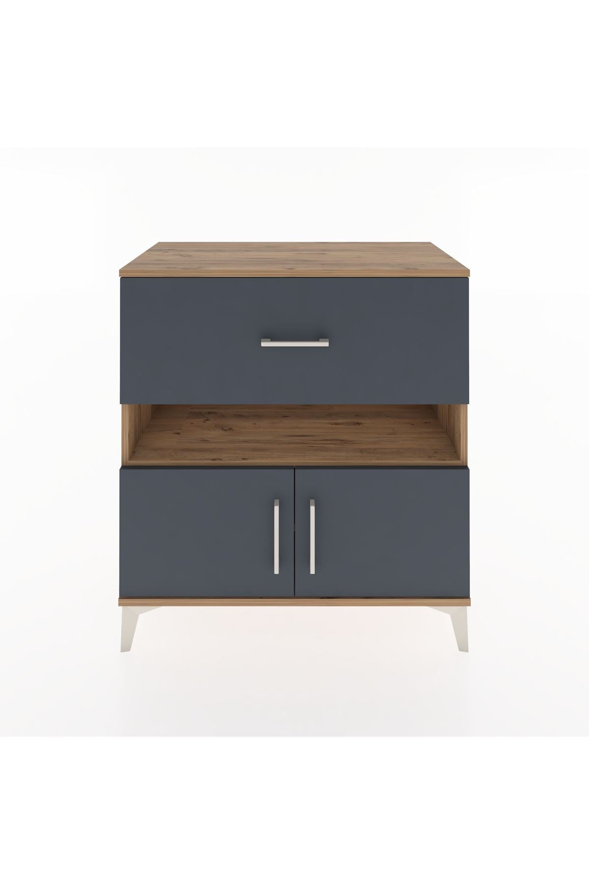 Hyperion Şifonyer 2 Raflı Tek Çekmeceli 2 Kapaklı 88x44x96 Çam-Antrasit