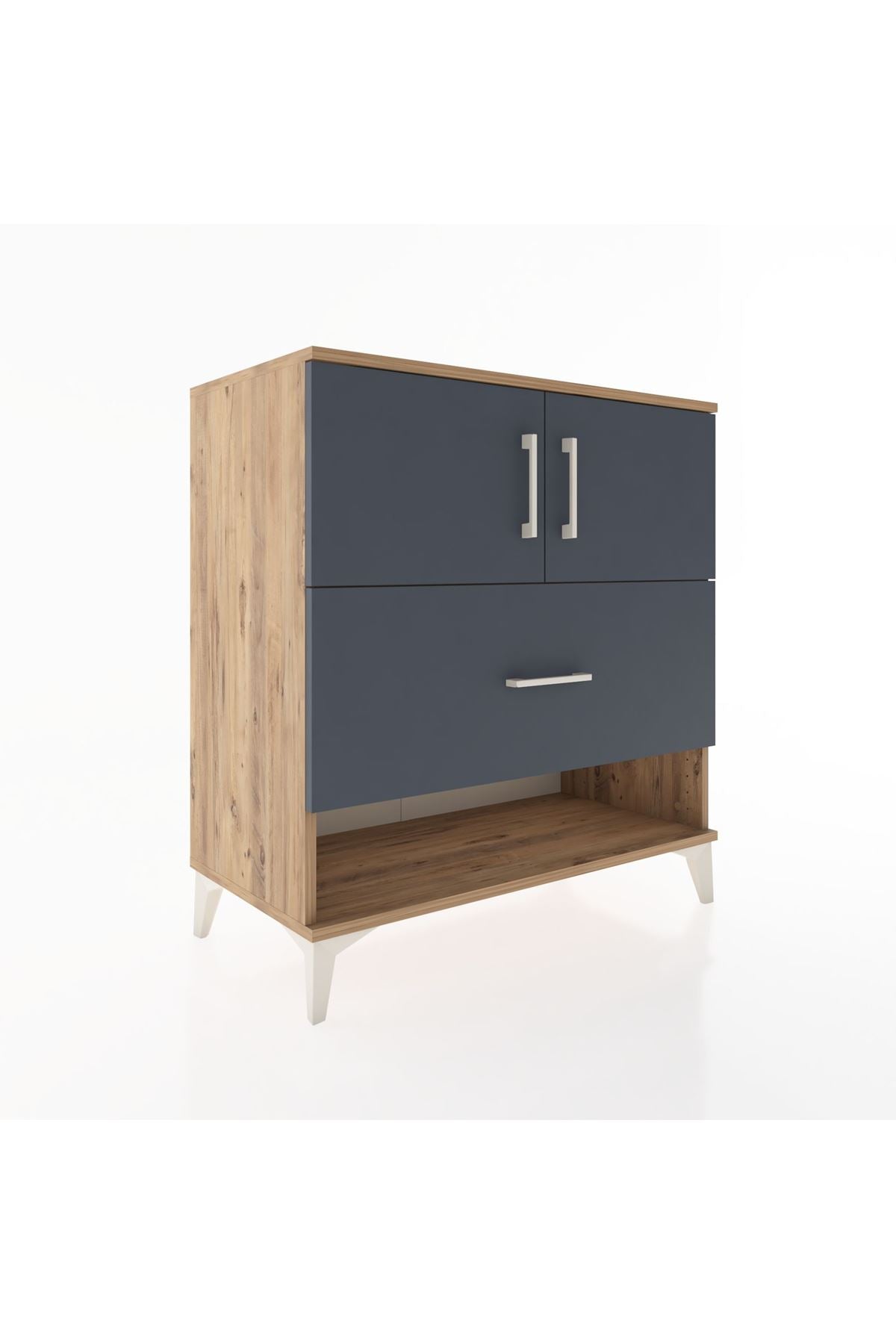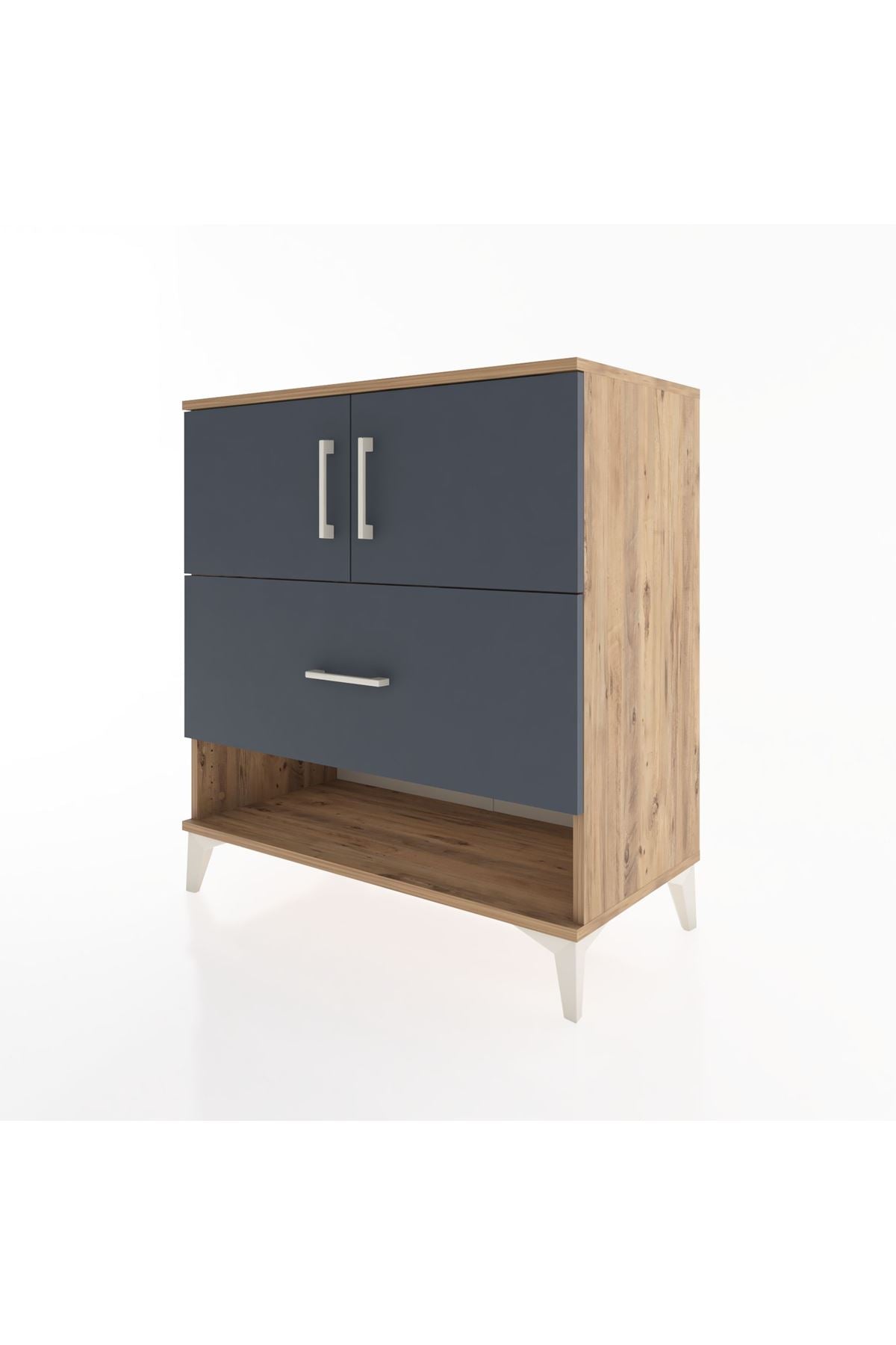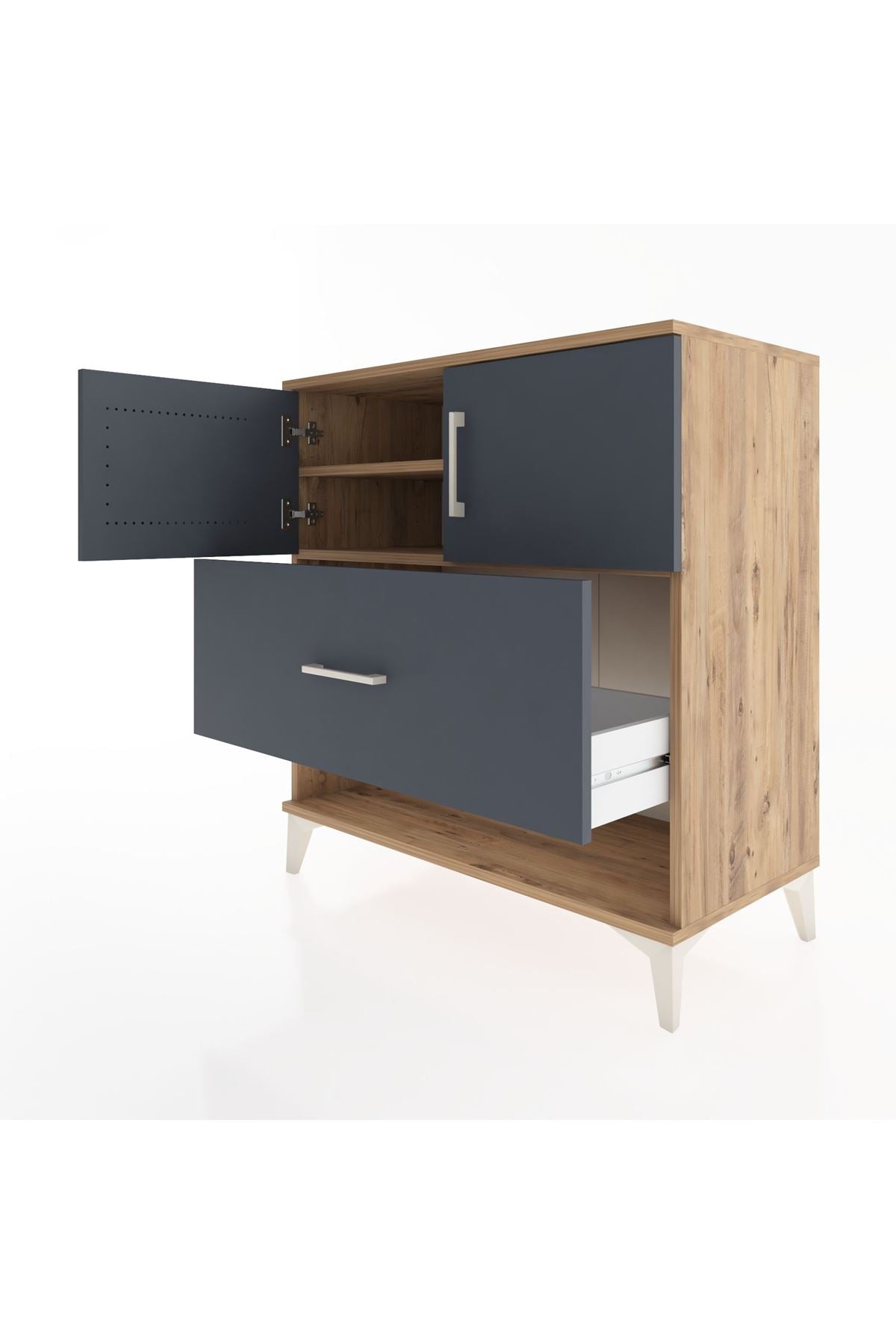 Hyperion Şifonyer 2 Raflı Tek Çekmeceli 2 Kapaklı 88x44x96 Çam-Antrasit