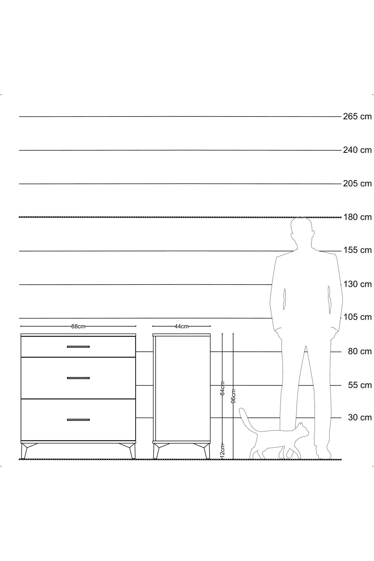 Hyperion Şifonyer 3 Çekmeceli 88x44x96 Çam-Çam