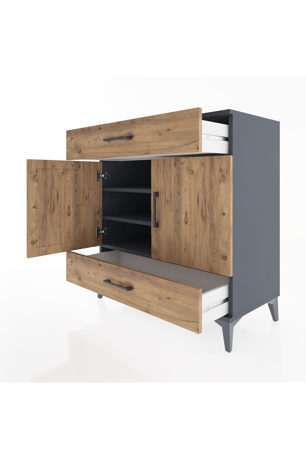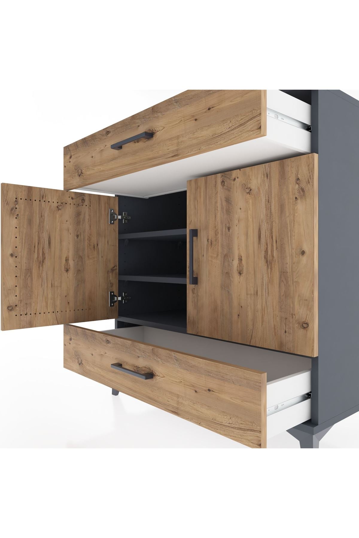 Hyperion Şifonyer 3 Raflı 2 Çekmeceli 2 Kapaklı 88x44x96 Antrasit-Çam