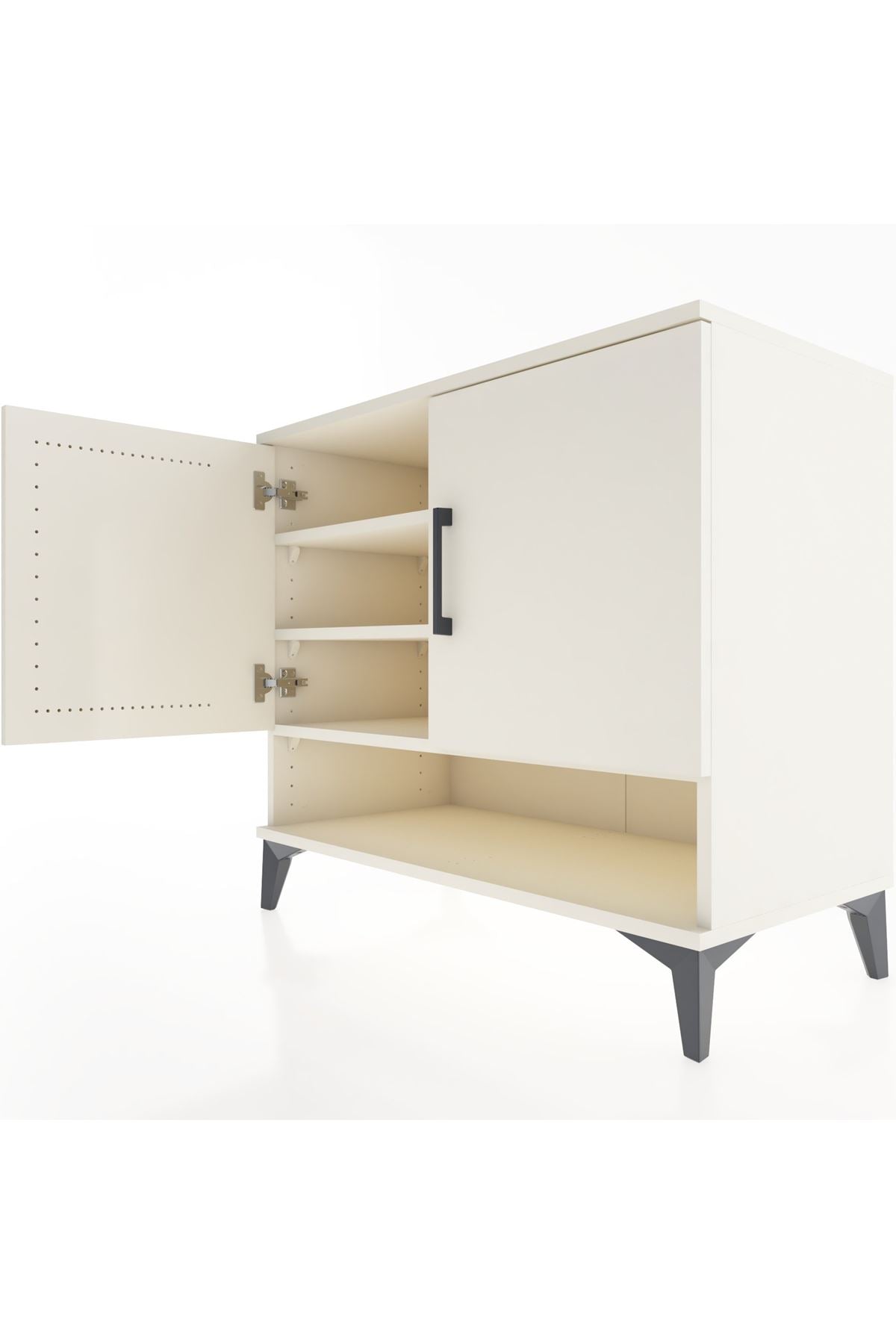 Geniş üst yüzey günlük kullanım için ideal alan sunar; kitap, aksesuar veya dekoratif objeler için düzen sağlar. İç bölmede ayarlanabilir raf sistemi sayesinde farklı yüksekliklerde eşyalar saklanabilir; kabinli yapısı toz ve görüntü kirliliğini azaltır. Metal ayaklar yerden hafif yükselterek temizlik ve havalandırma kolaylığı sağlar. Modüler yapısı sayesinde yatak odası, antre veya oturma odasında fonksiyonel kullanım imkânı verir; çekmece konfigürasyonu ihtiyaca göre değiştirilebilir, böylece farklı saklama gereksinimlerine hızlıca uyum sağlar.