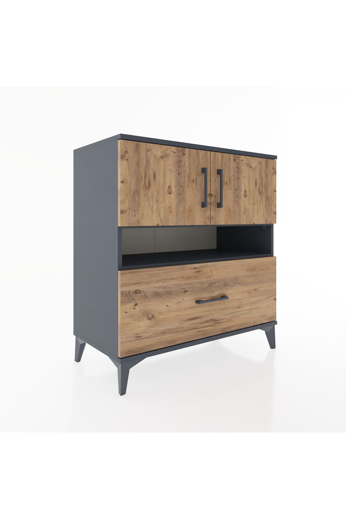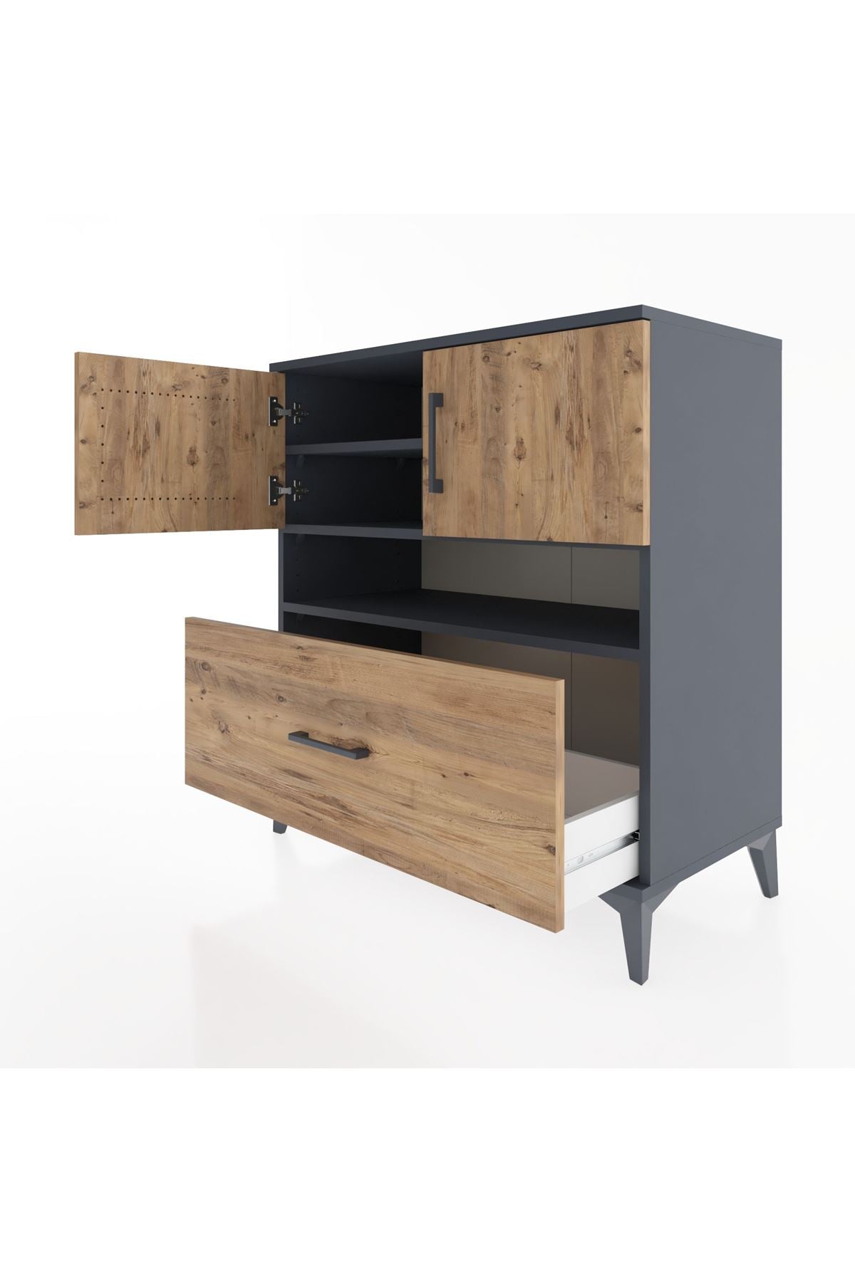 Hyperion Şifonyer 3 Raflı Tek Çekmeceli 2 Kapaklı 88x44x96 Antrasit-Çam