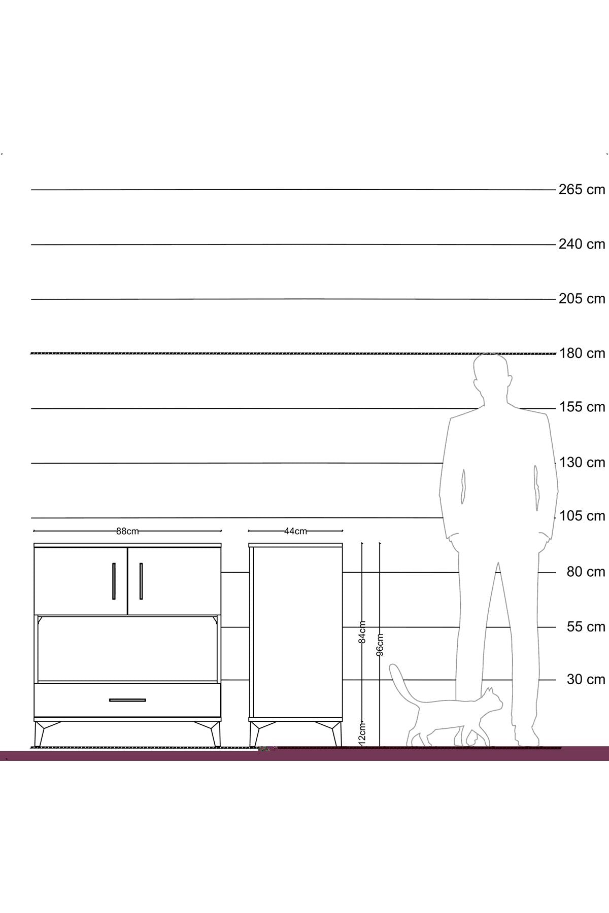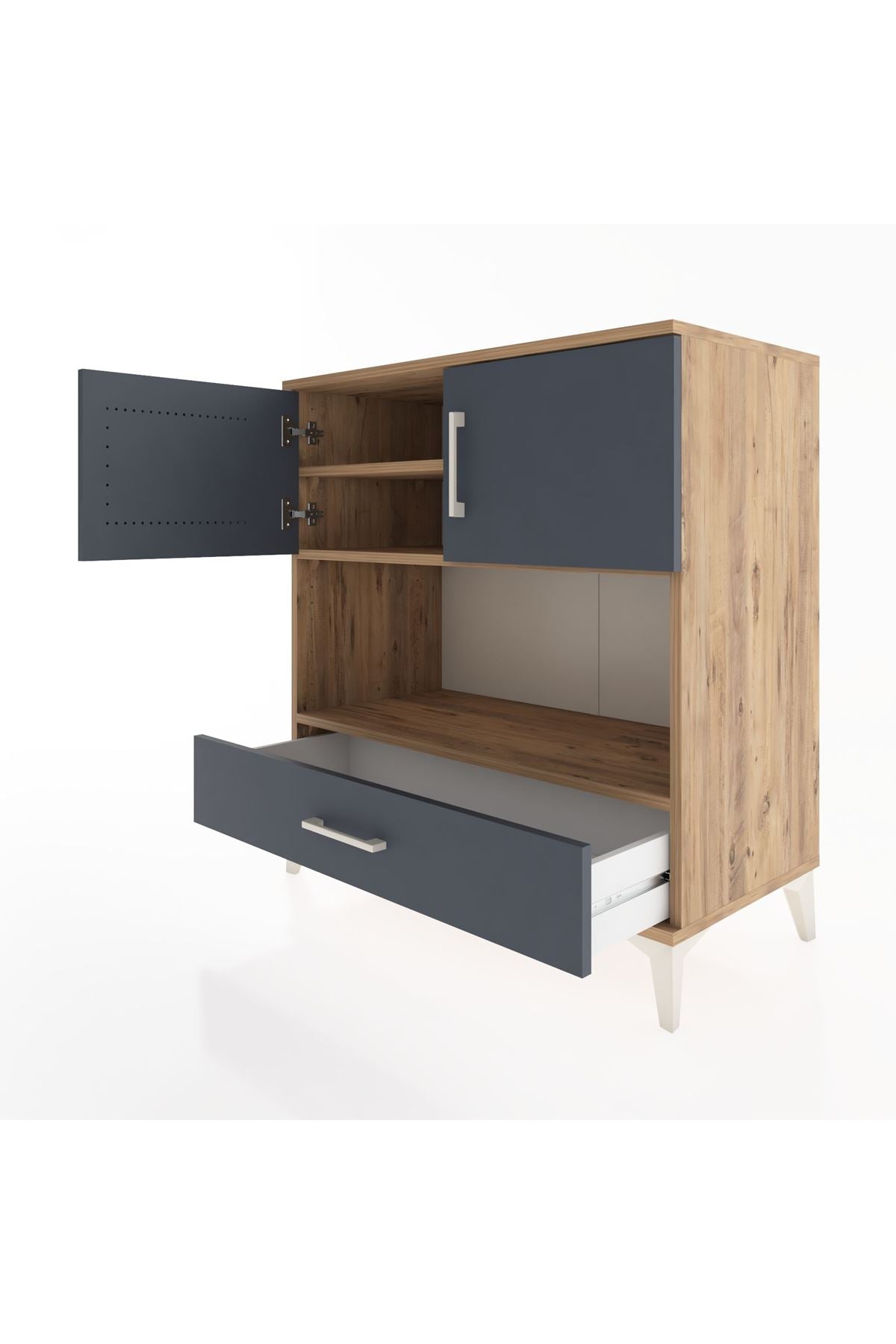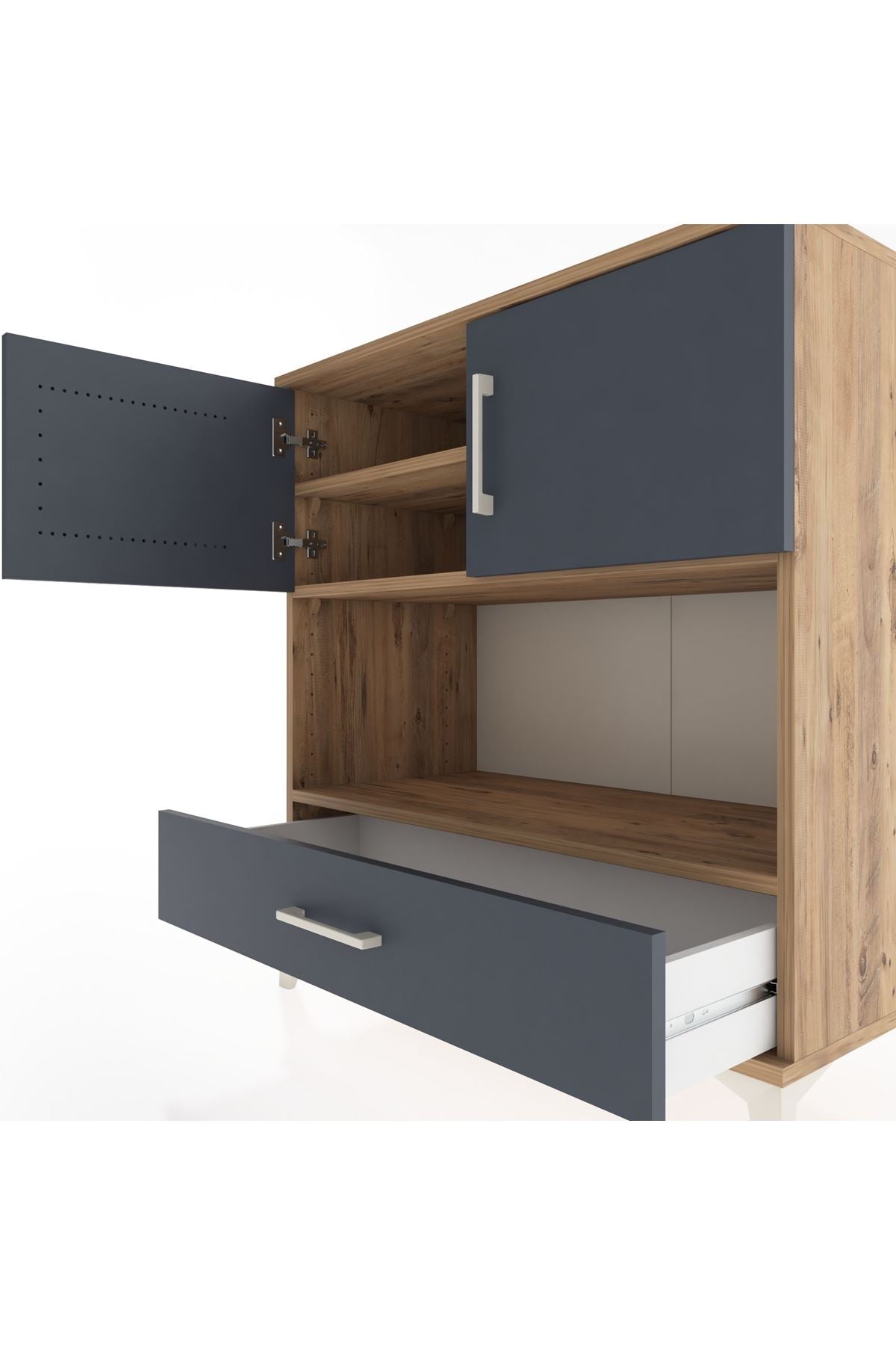 Hyperion Şifonyer 3 Raflı Tek Çekmeceli 2 Kapaklı 88x44x96 Çam-Antrasit