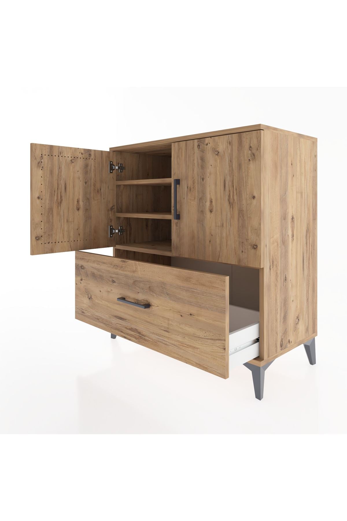 Hyperion Şifonyer 3 Raflı Tek Çekmeceli 2 Kapaklı 88x44x96 Çam-Çam