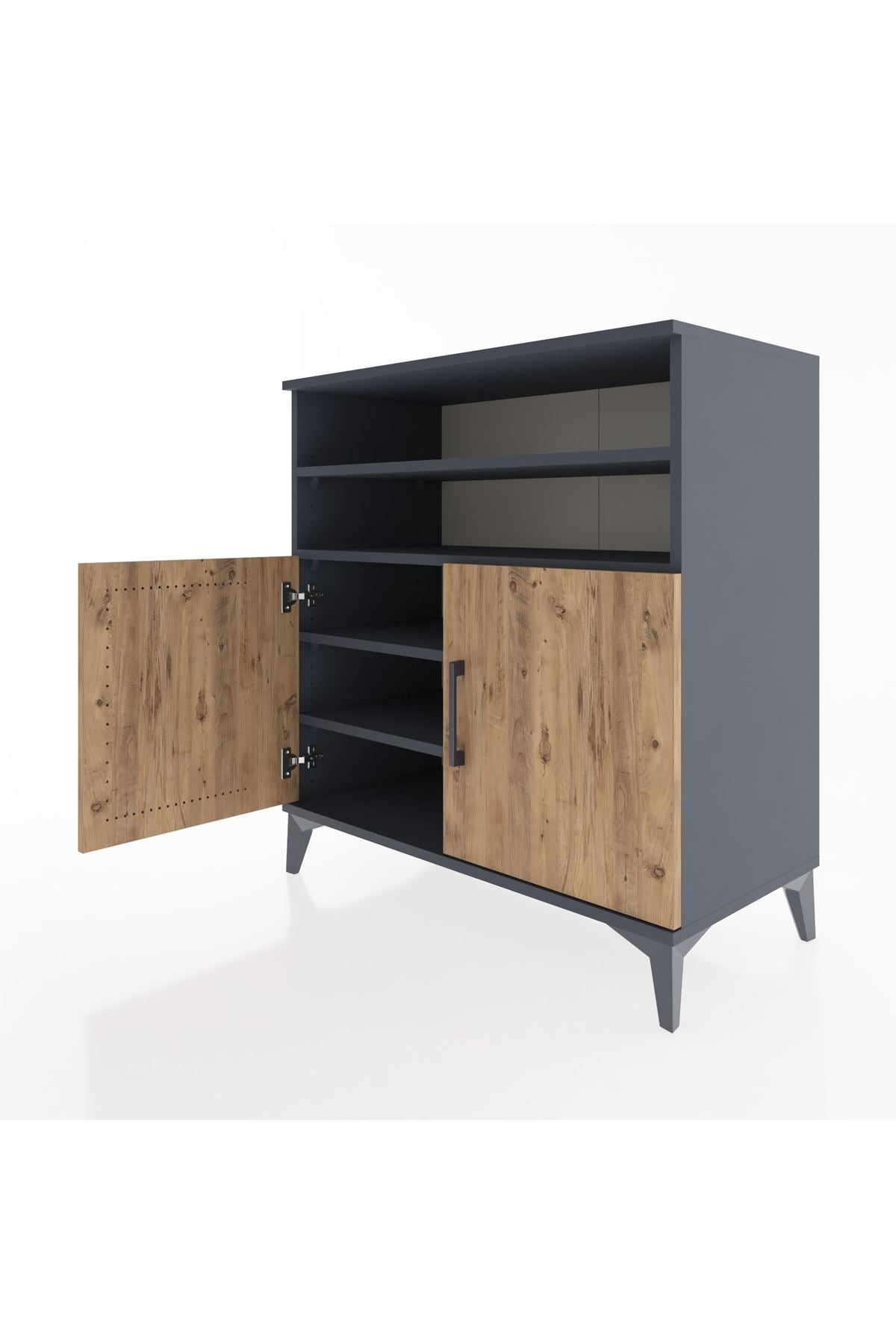 Hyperion Şifonyer 4 Raflı 2 Kapaklı 88x44x96 Antrasit-Çam