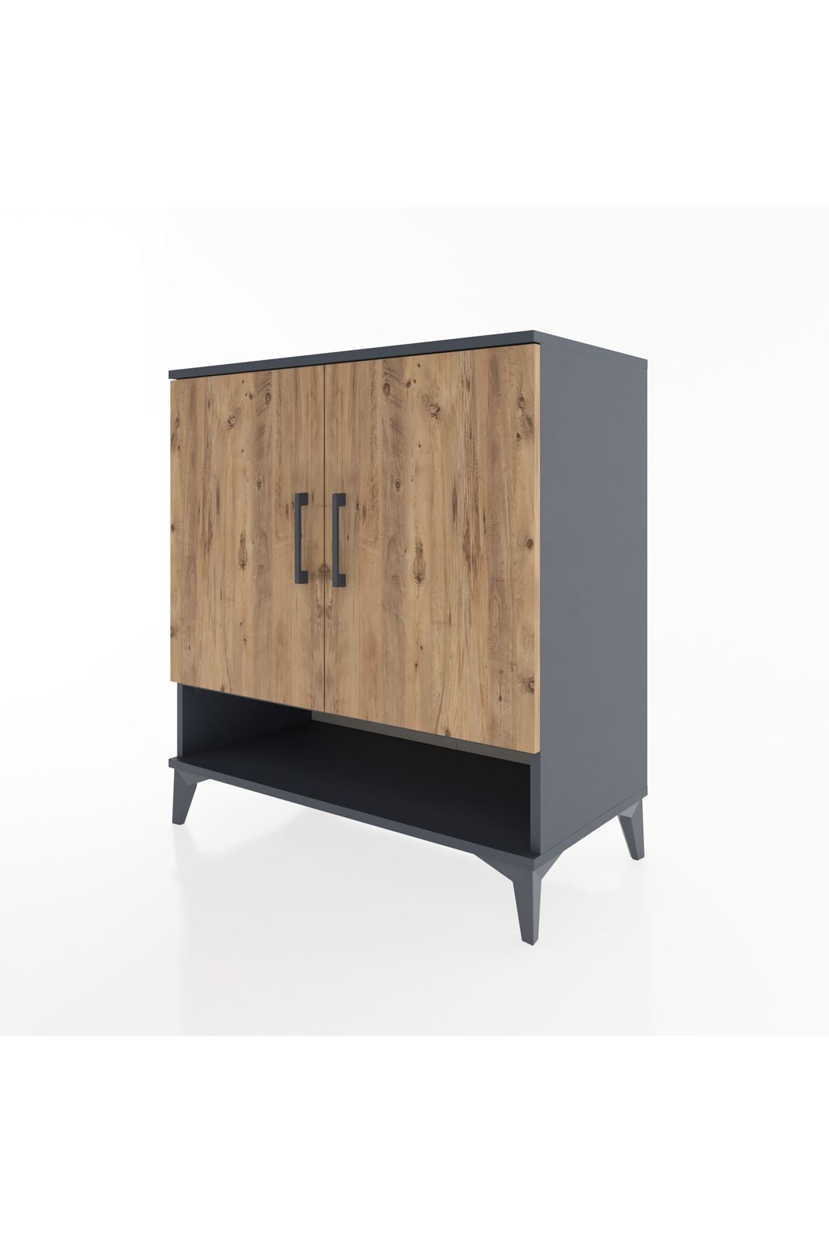 Hyperion Şifonyer 4 Raflı 2 Kapaklı 88x44x96 Antrasit-Çam