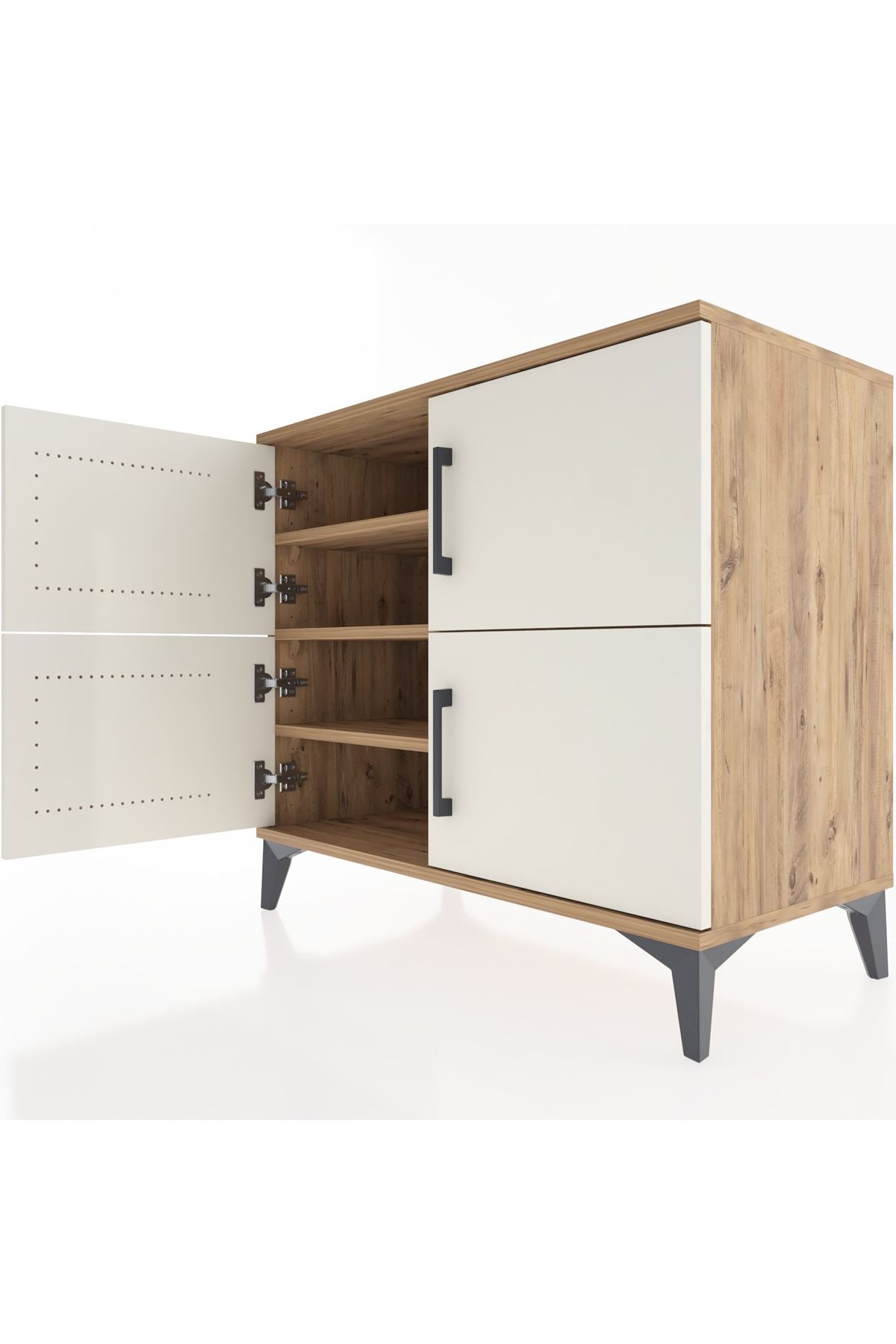 Kompak boyutlarıyla dar koridorlarda, antrelerde ve yatak odalarında yer kazanımı sağlar. Ayarlanabilir raflar sayesinde kitap, muhafaza kutuları, dikiş setleri veya tabak benzeri eşyalar için uygun boşluk oluşturabilirsiniz. Üst yüzey dekoratif obje, ayna altı veya televizyon altı olarak kullanılmaya uygundur. Suntalam yüzey kolay temizlenir, leke ve çiziklere karşı dayanıklıdır. Metal ayak yapısı zeminde stabilite sağlar ve temizlik için altından süpürme imkânı bırakır. Çekmece konfigürasyonu ile kıyafet, çamaşır veya kişisel eşyaları ayrı bölümlerde düzenleyebilirsiniz.