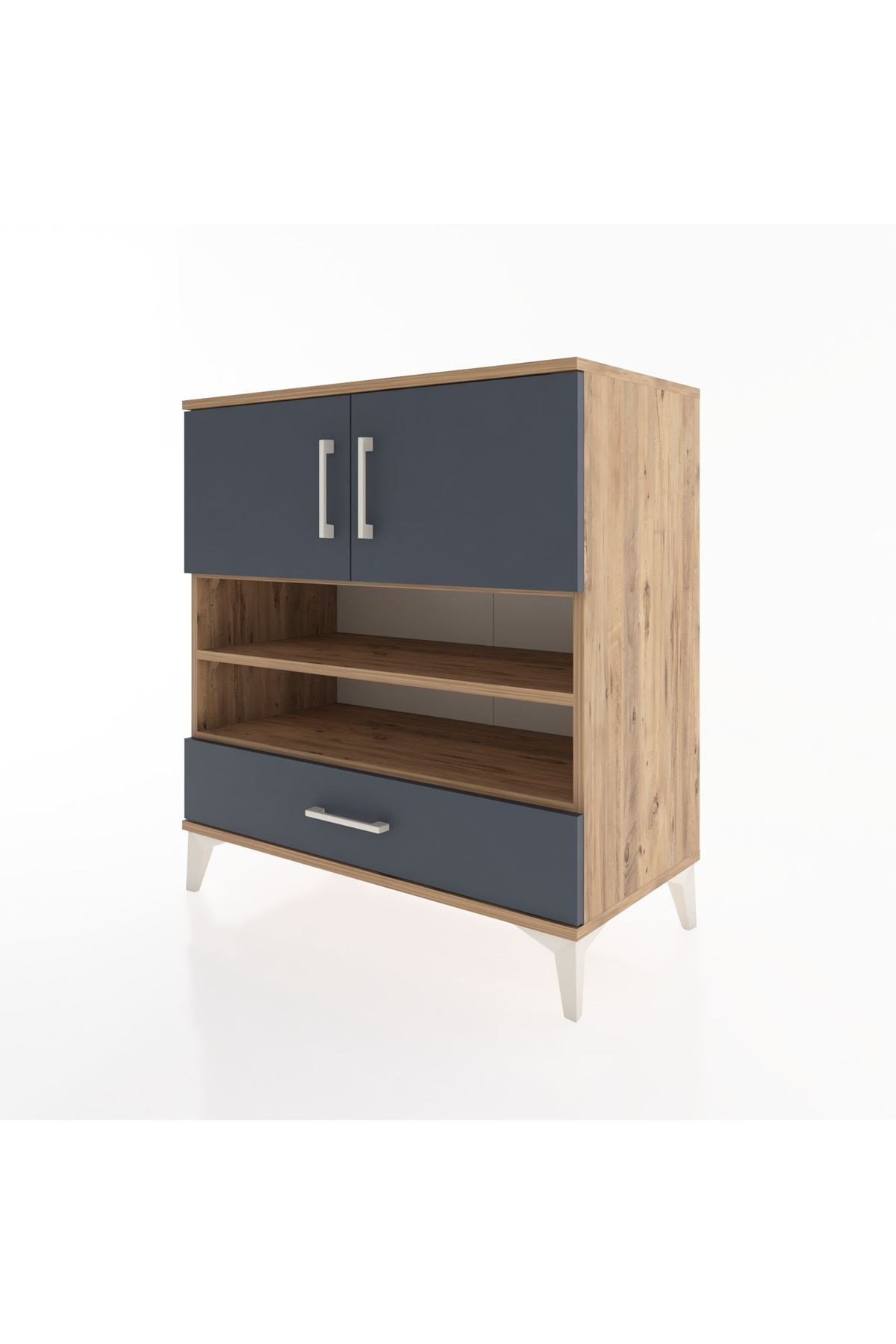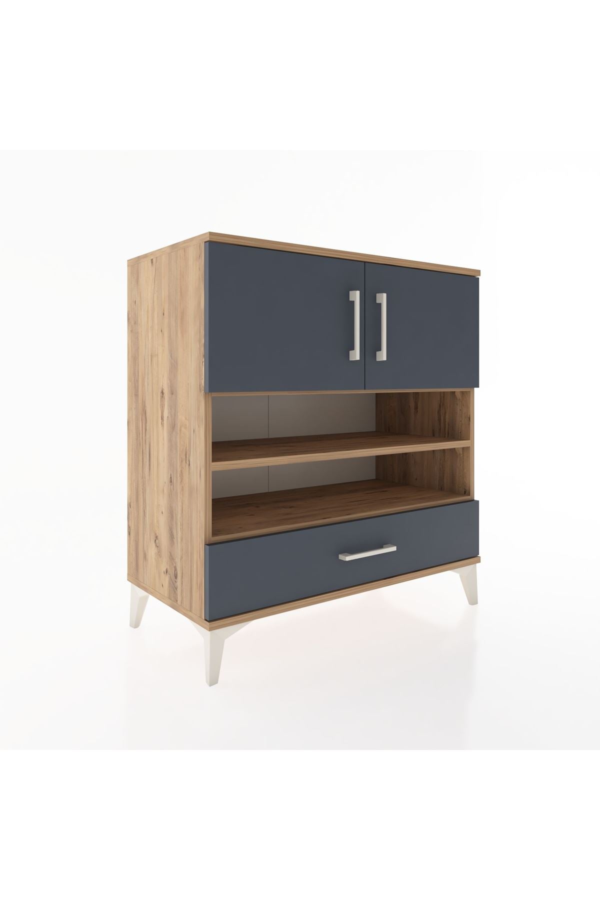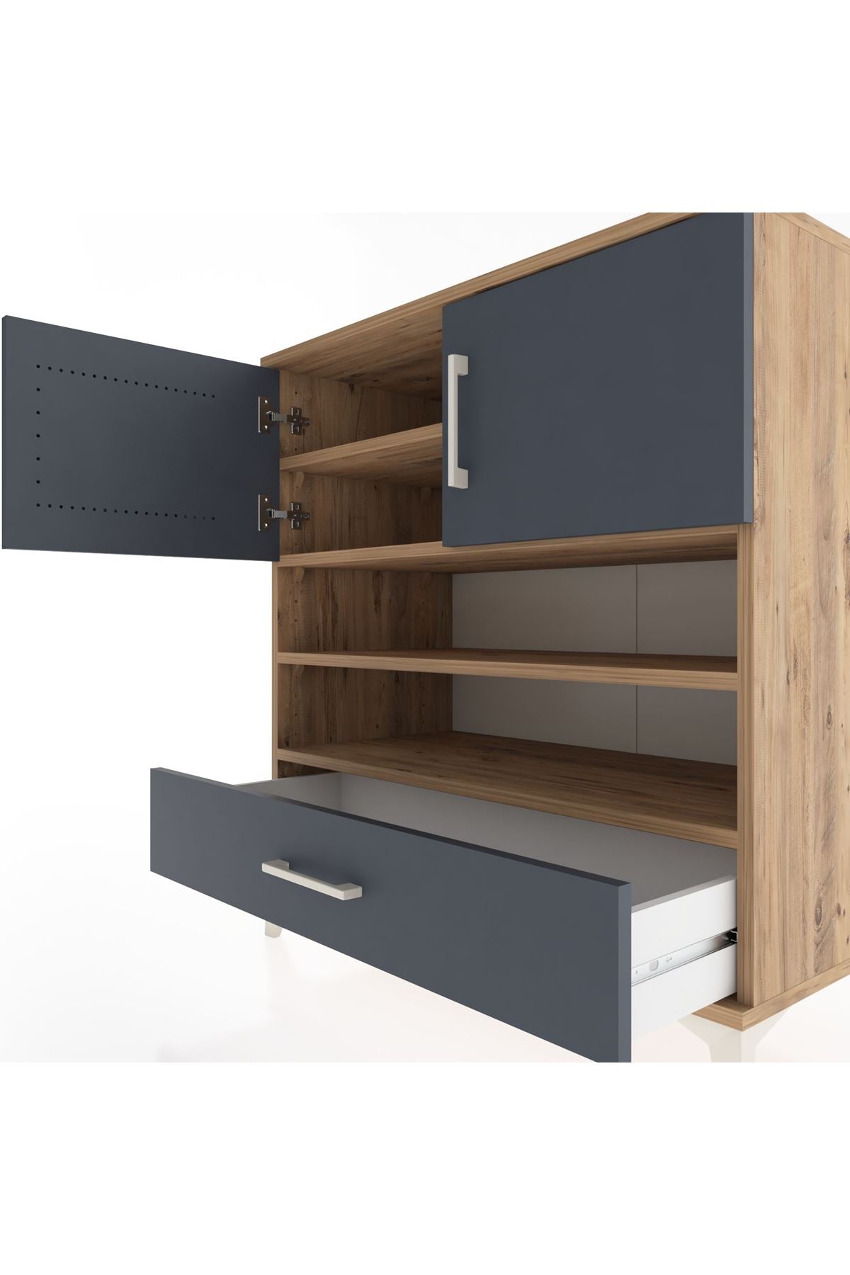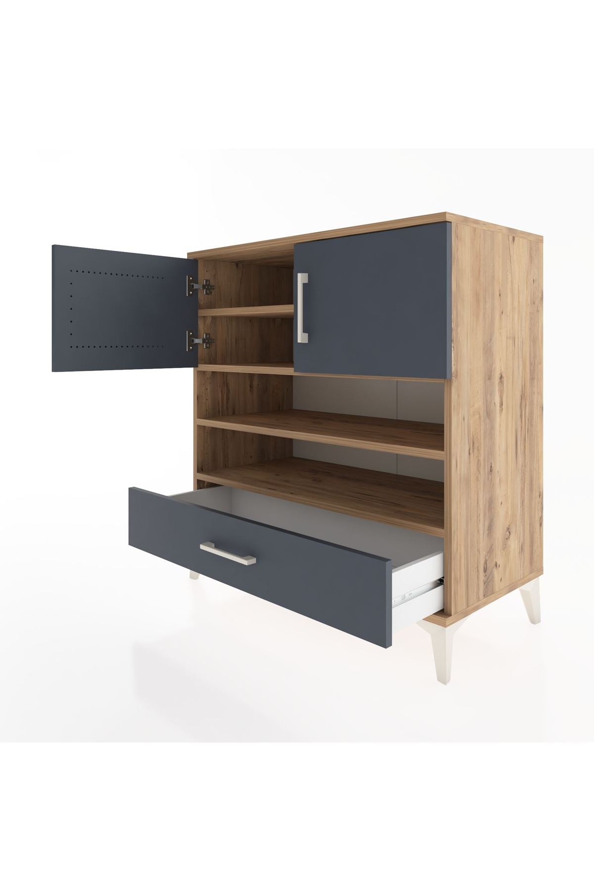 Hyperion Şifonyer 4 Raflı Tek Çekmeceli 2 Kapaklı 88x44x96 Çam-Antrasit