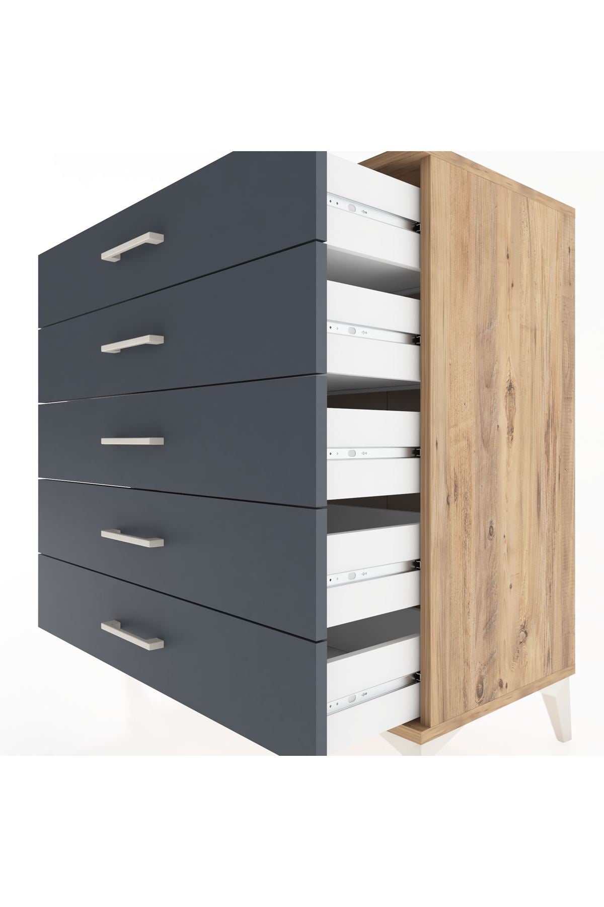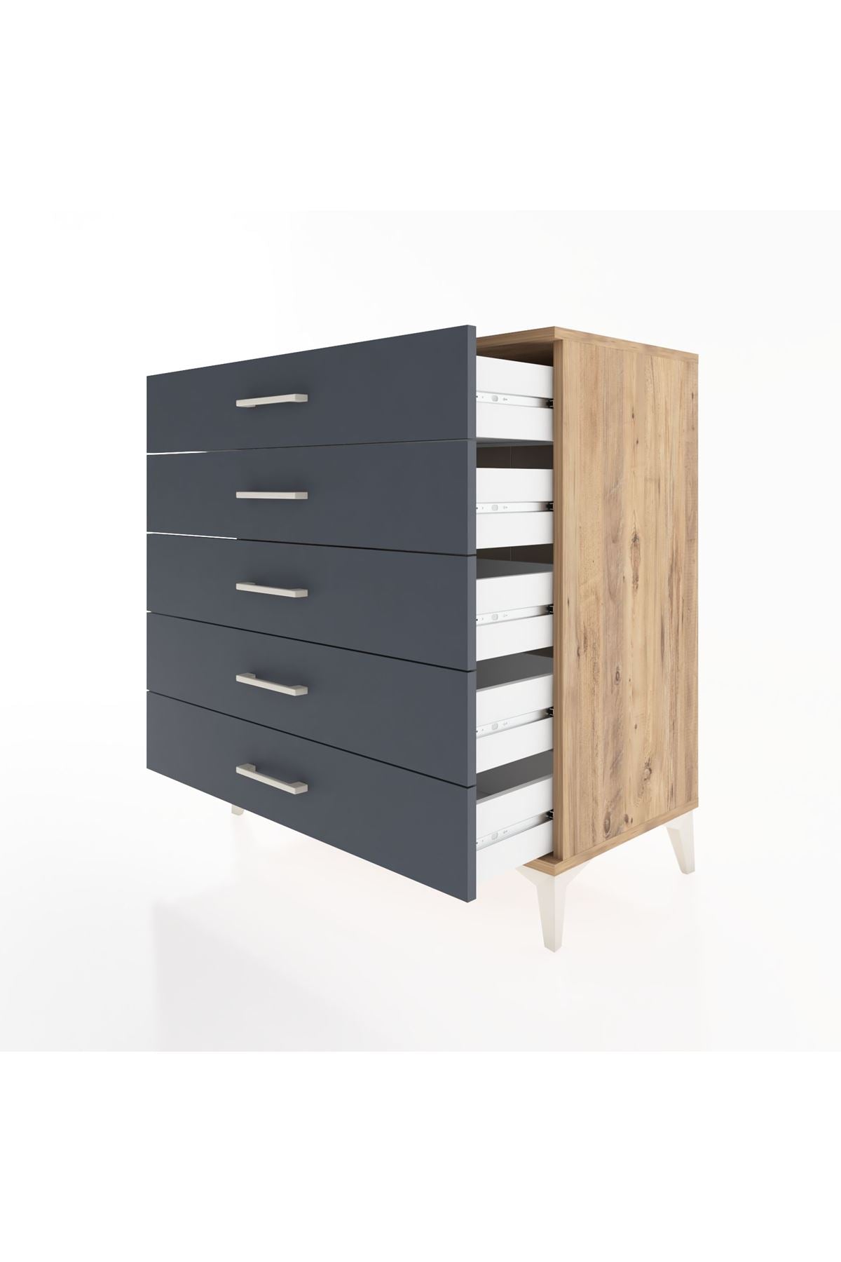 Hyperion Şifonyer 5 Çekmeceli 88x44x96 Çam-Antrasit