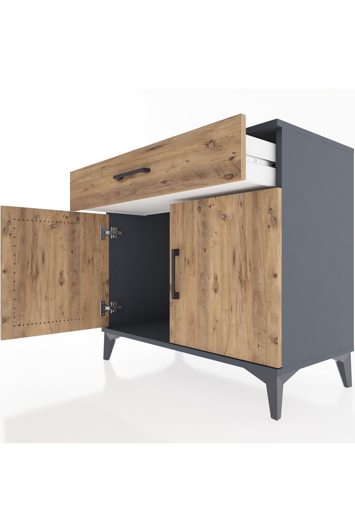 Hyperion Şifonyer Tek Çekmeceli 2 Kapaklı 88x44x80 Antrasit-Çam – Şıklığı ve Fonksiyonelliği Bir Arada