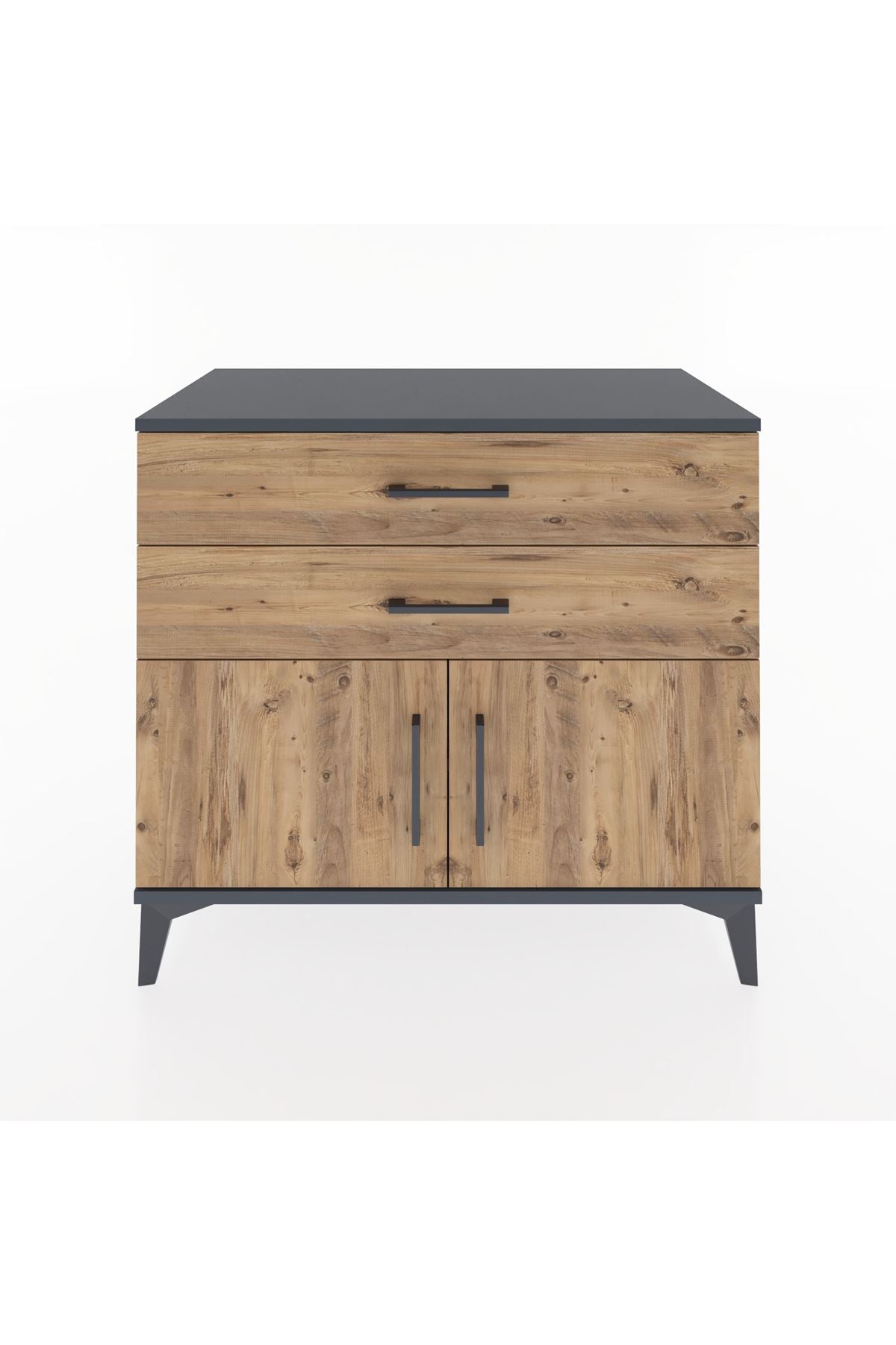 Hyperion Şifonyer Tek Raflı 2 Çekmeceli 2 Kapaklı 88x44x80 Antrasit-Çam – Fonksiyonel ve Şık Depolama Çözümü
